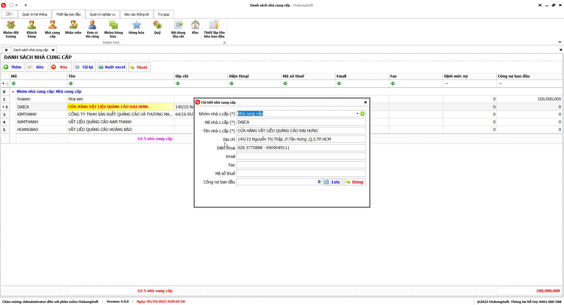 Chức năng thiết lập thông tin sử dụng của phần mềm quản lý bán hàng in ấn quảng cáo là một chức năng quan trọng, giúp người dùng thiết lập các thông tin cơ bản của cửa hàng, doanh nghiệp, từ đó đảm bảo việc sử dụng phần mềm được chính xác và hiệu quả.