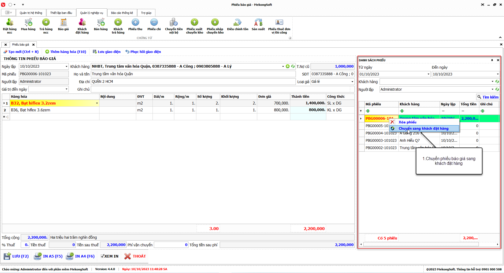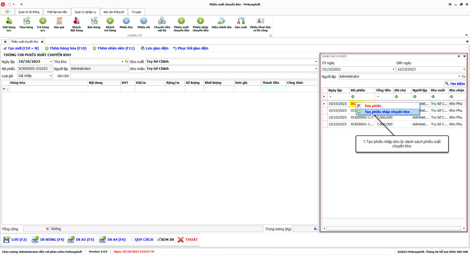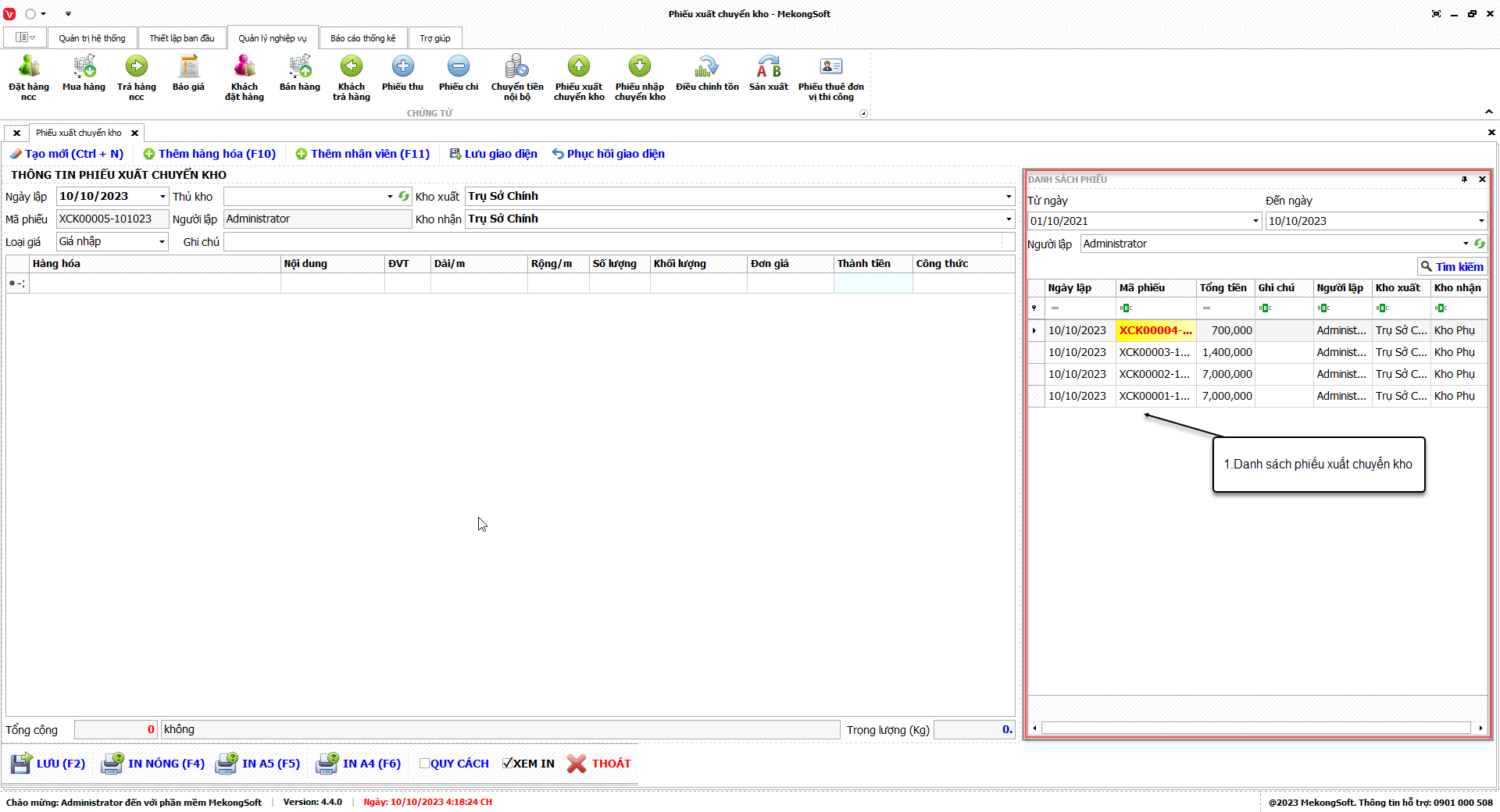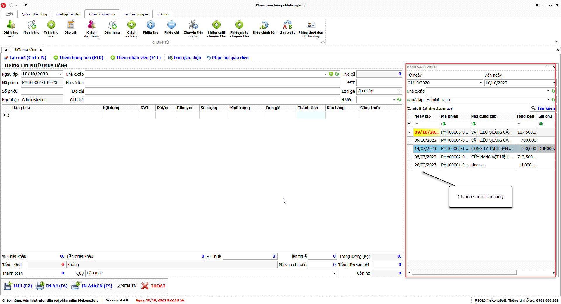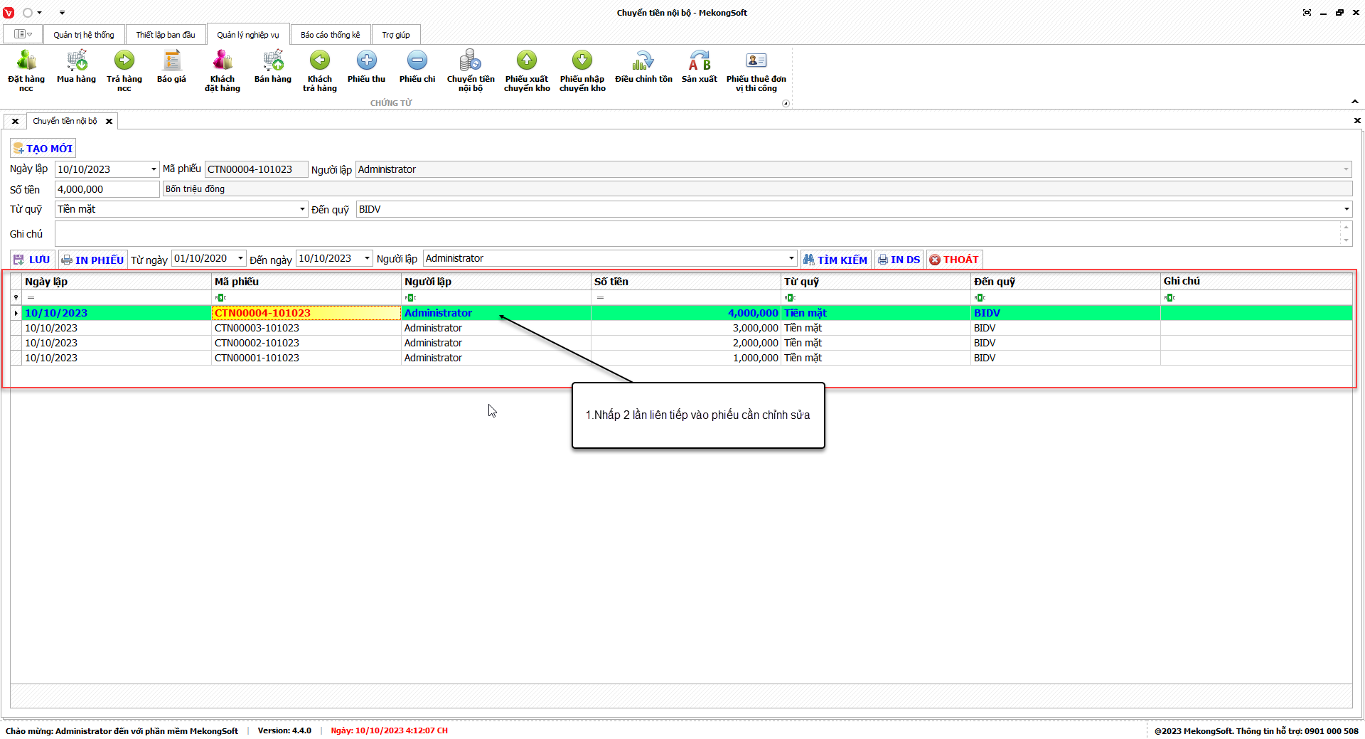1. Đăng nhập vào phần mềm.