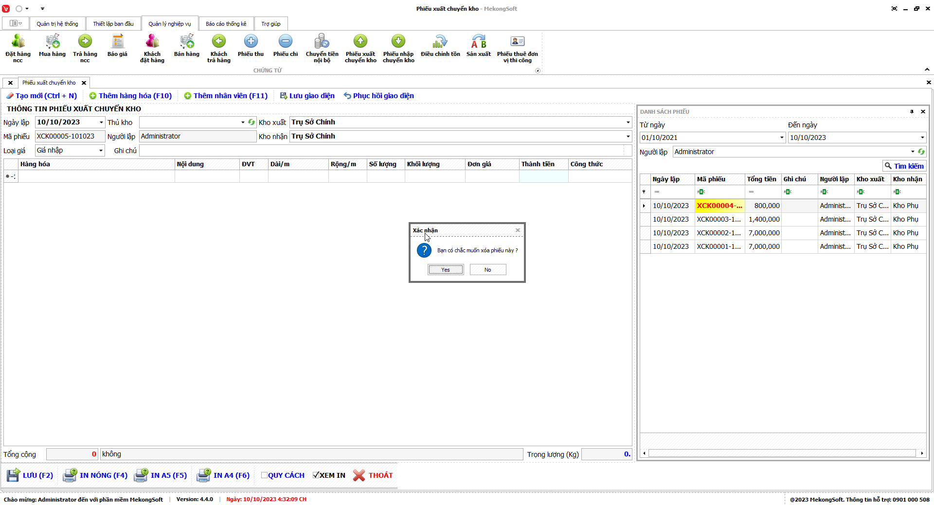 Phần mềm sẽ hiển thị thông báo xác nhận.