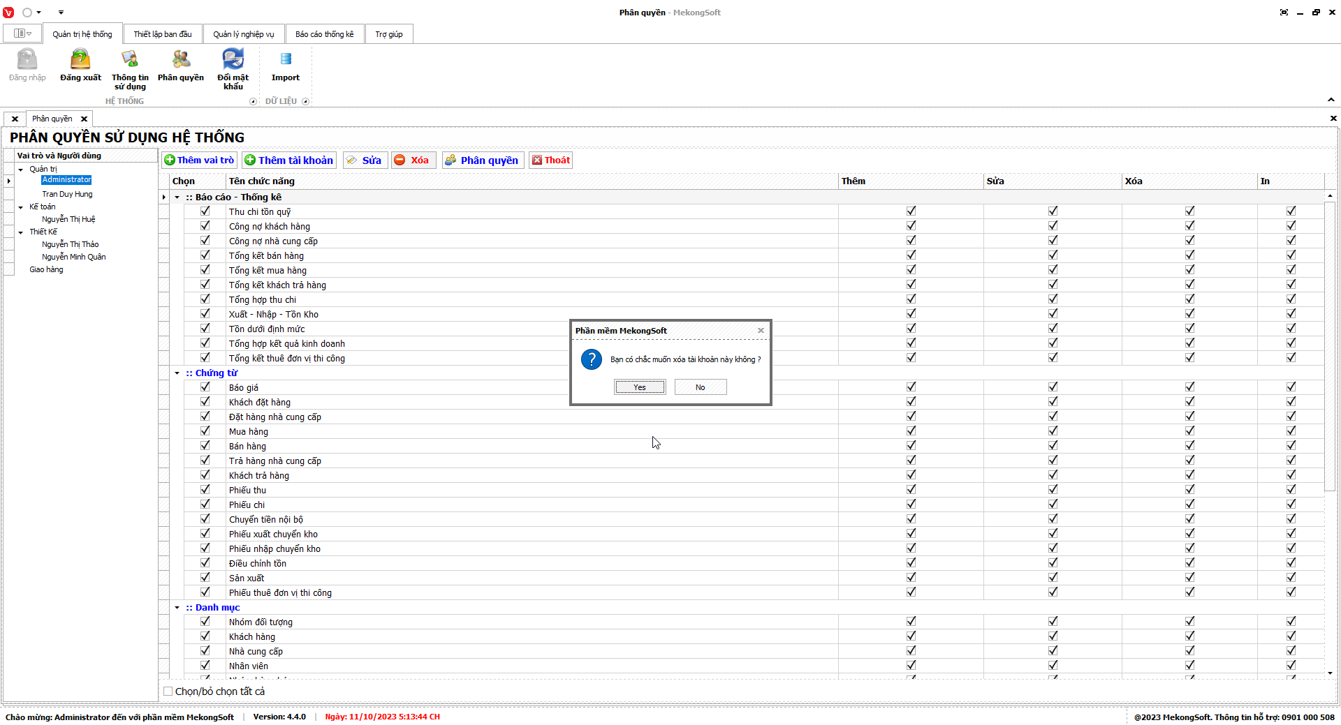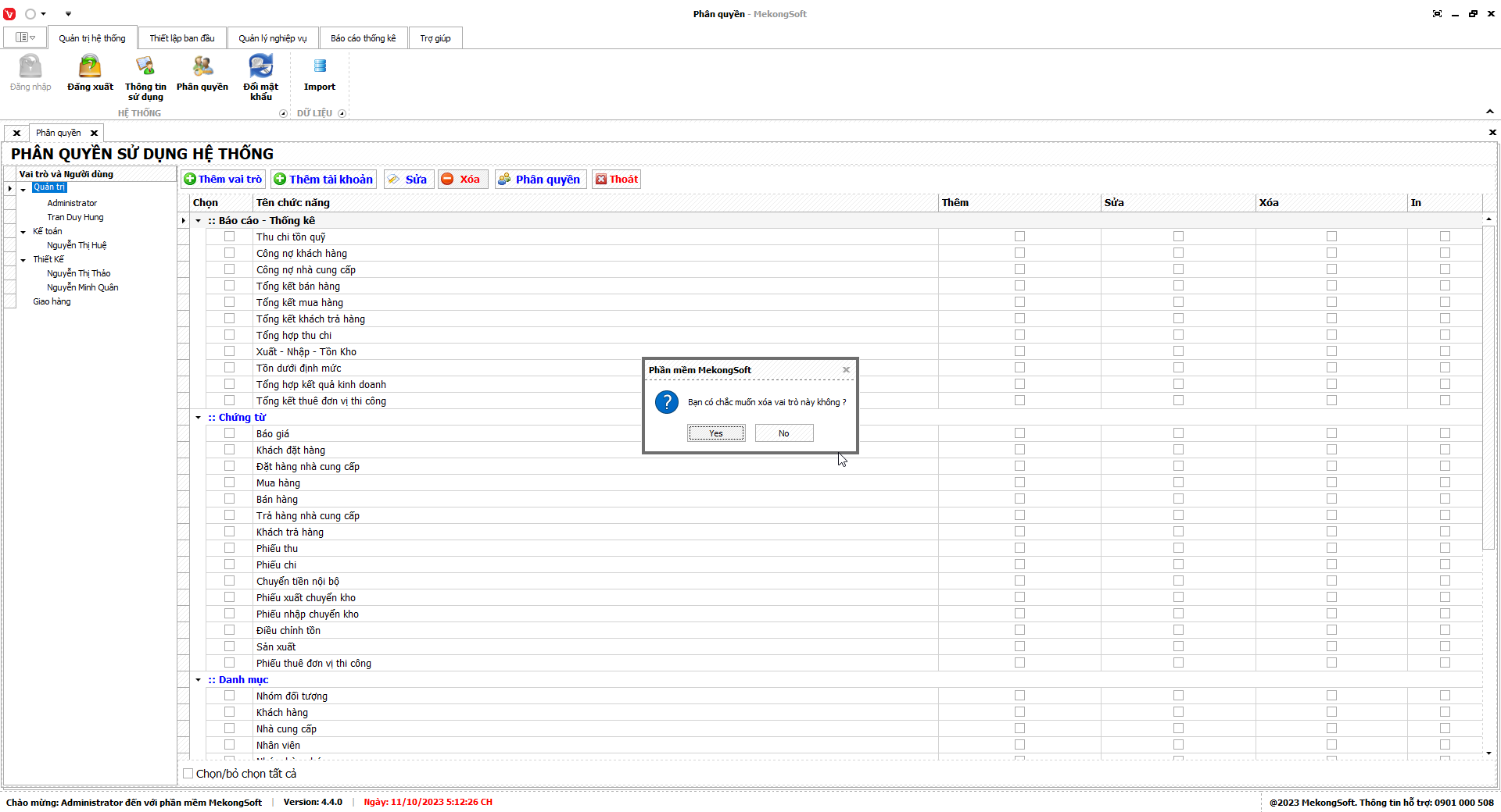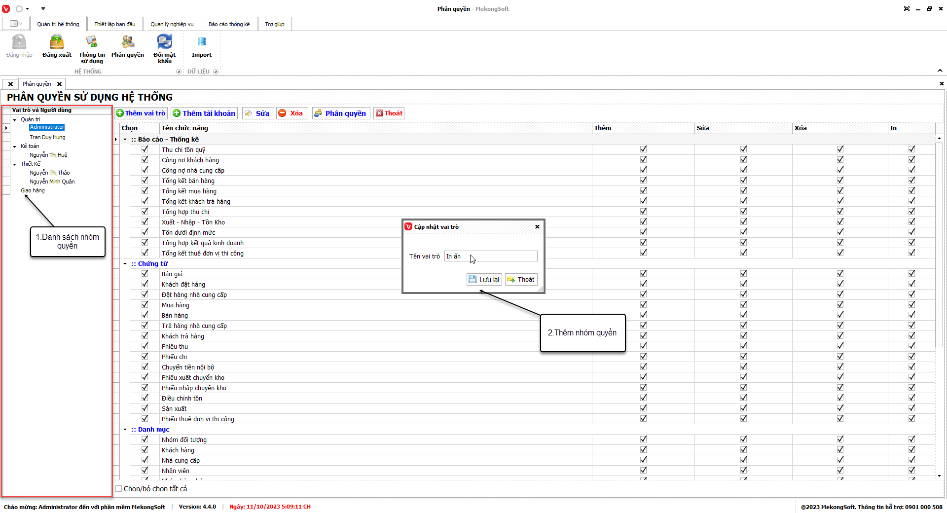 - Chỉ xóa các nhóm quyền không còn sử dụng.