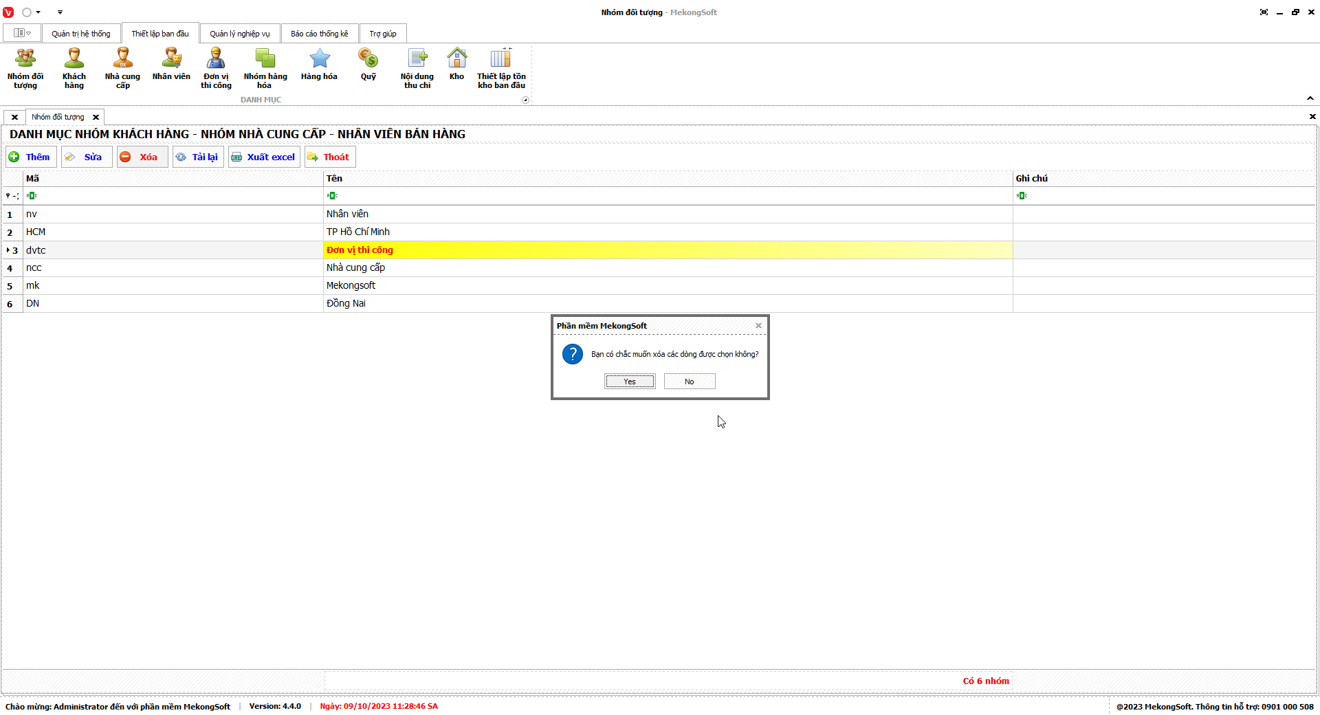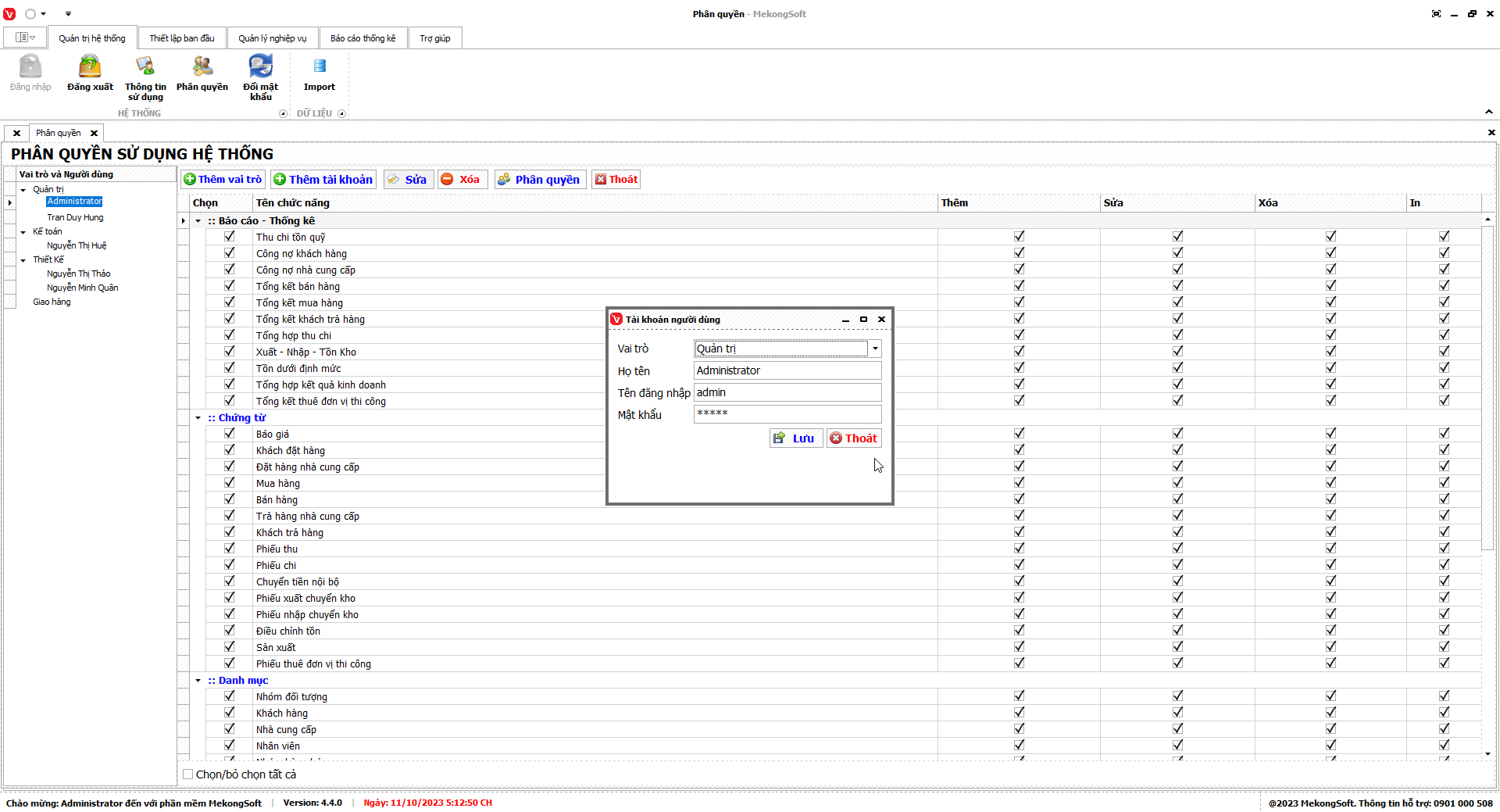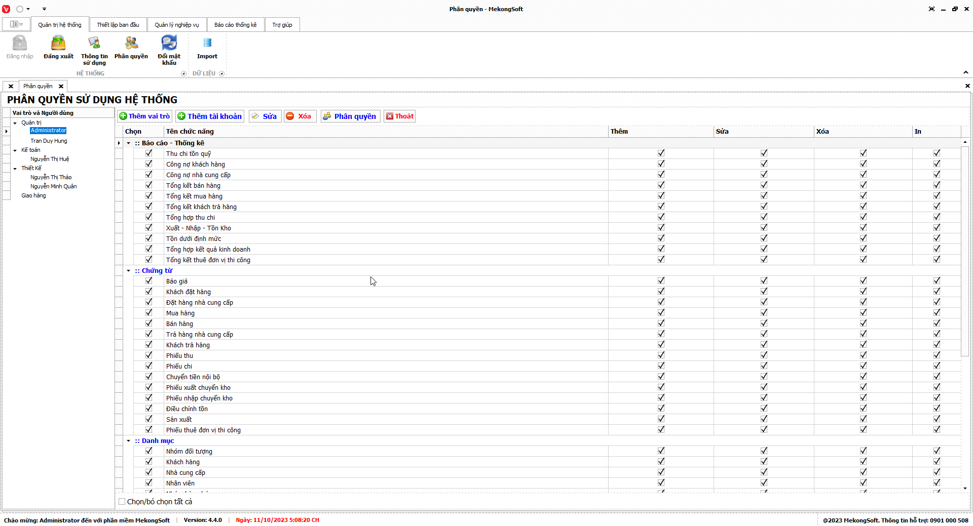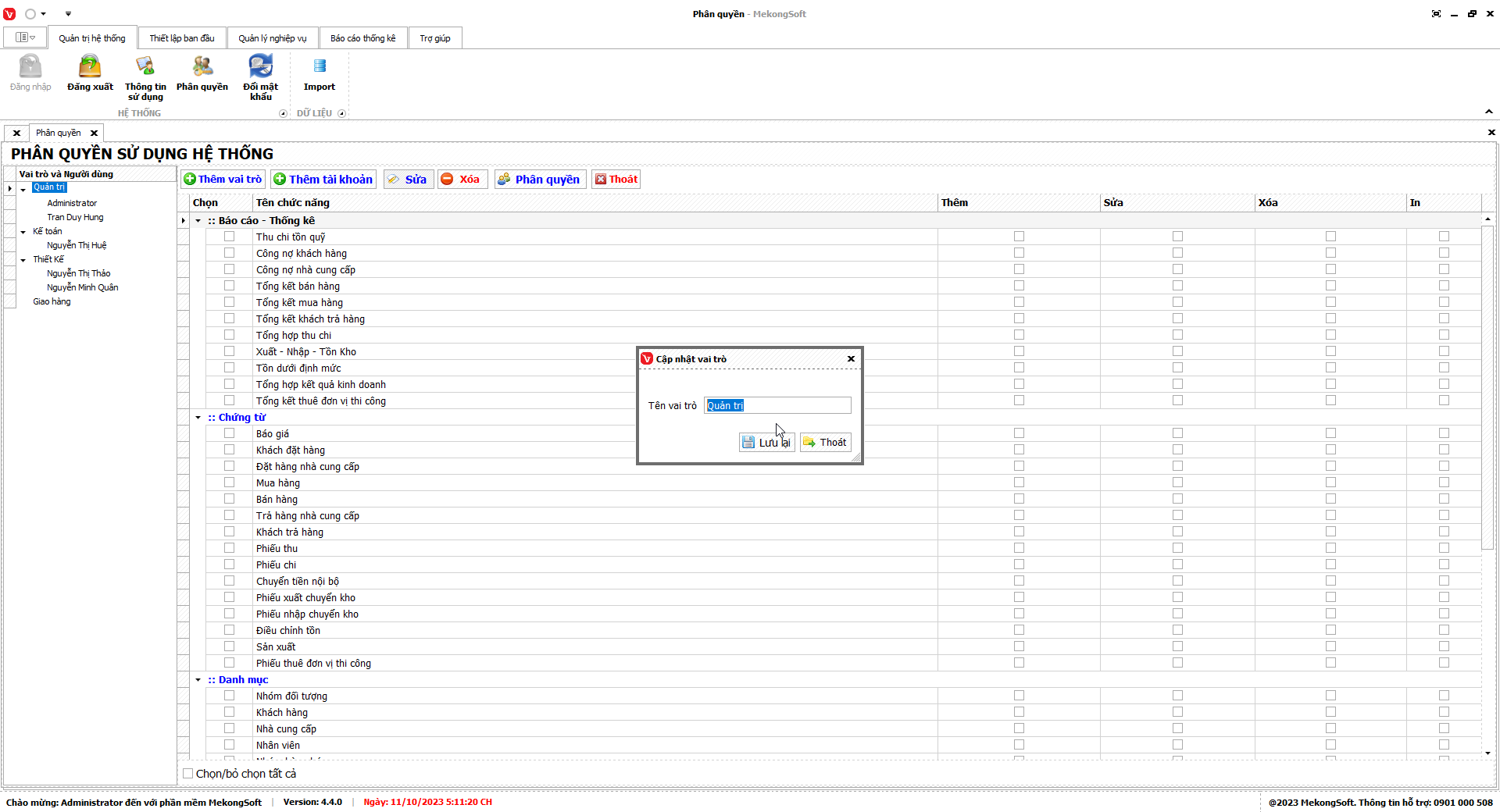 - Chỉ xóa các nhóm quyền không còn sử dụng.