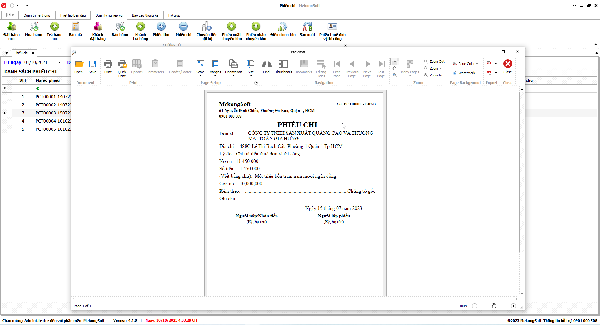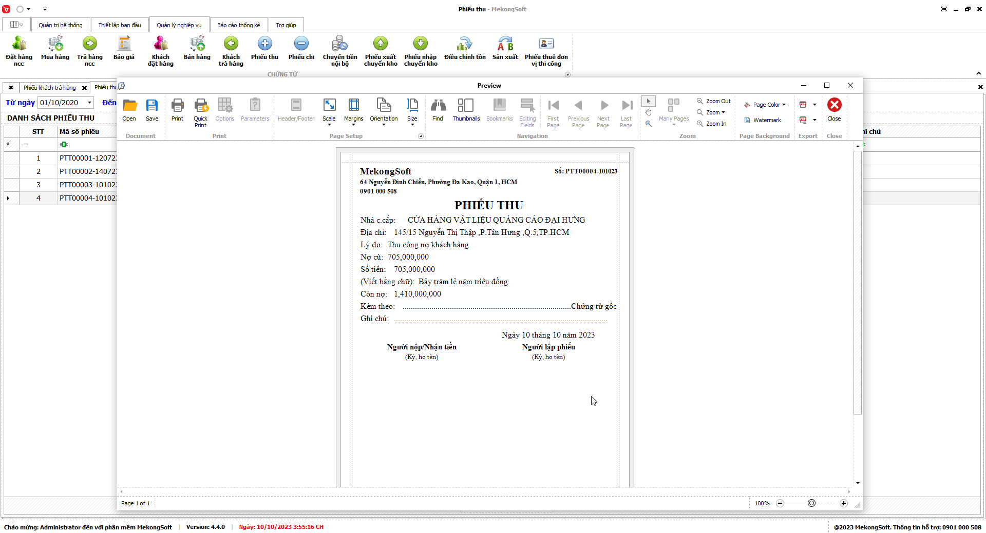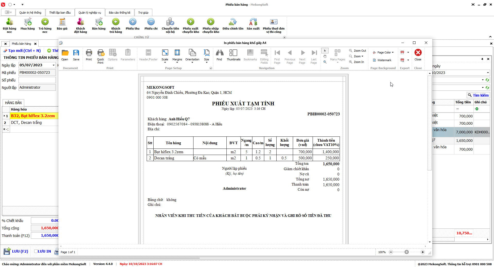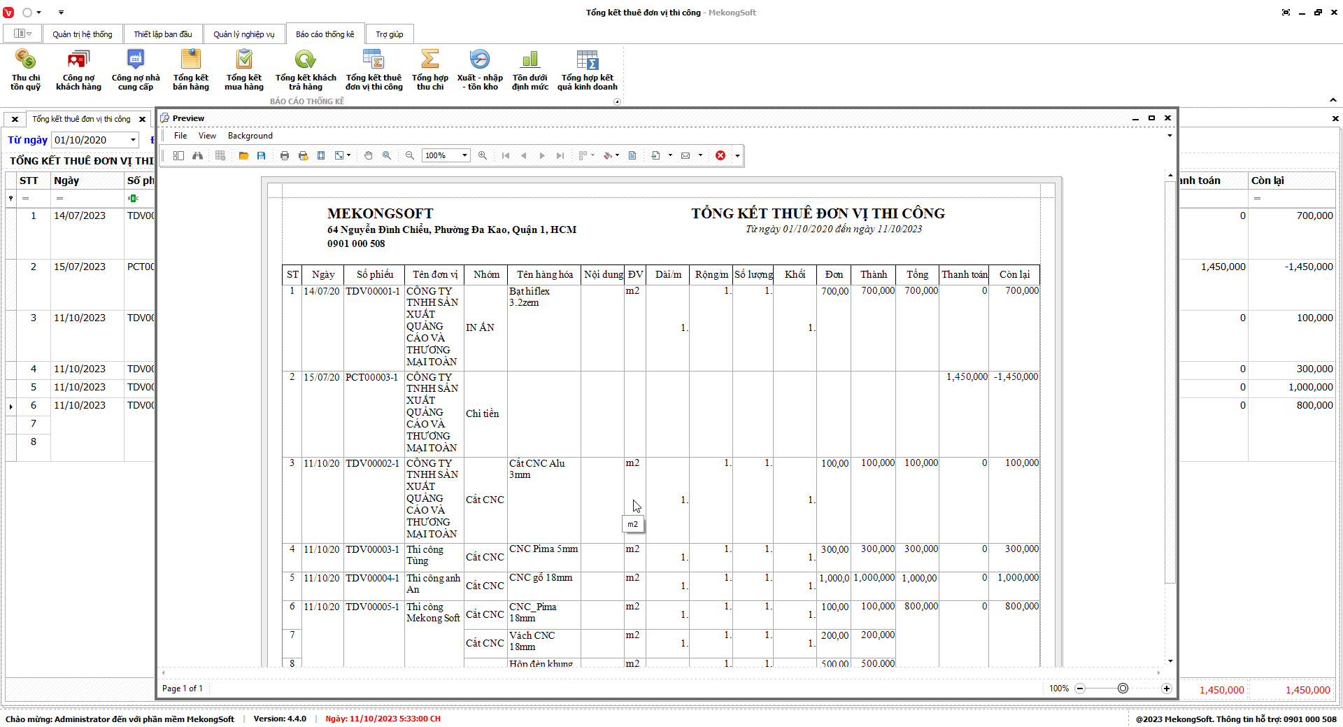 Để in báo cáo tổng kết thuê đơn vị thi công trên phần mềm quản lý bán hàng in ấn quảng cáo, bạn có thể thực hiện theo các bước sau: