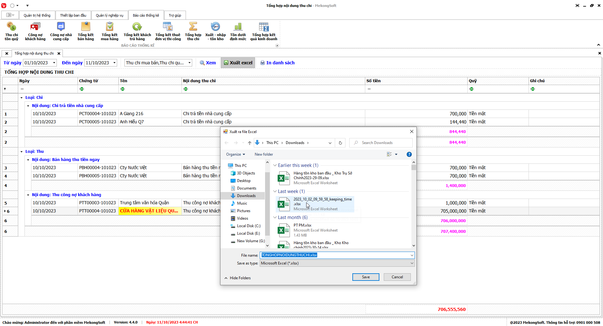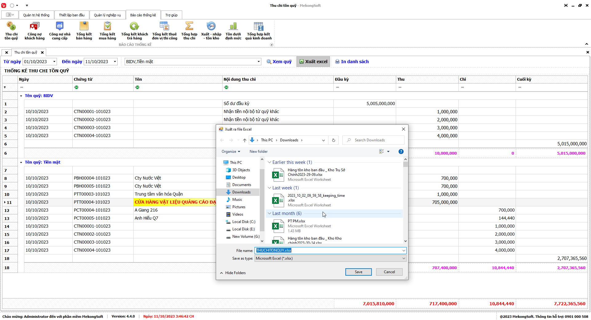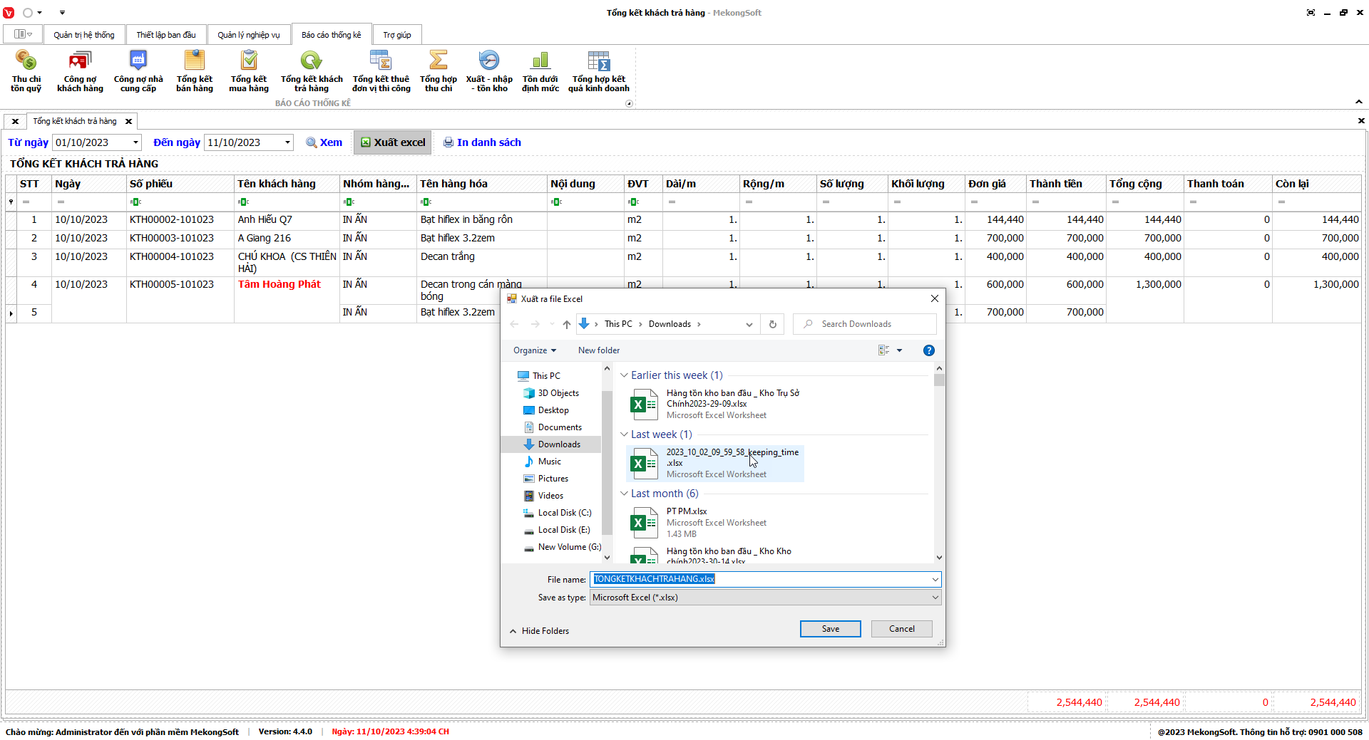 Phần mềm sẽ xuất báo cáo tổng hợp kết quả kinh doanh dưới dạng file excel.