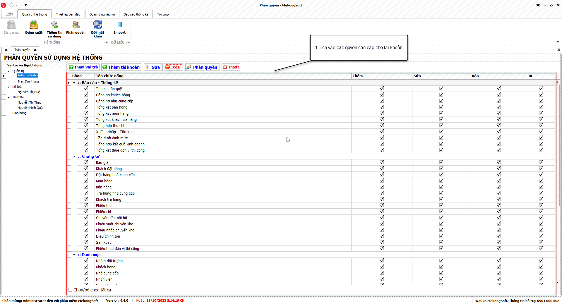 Tại màn hình phân quyền: