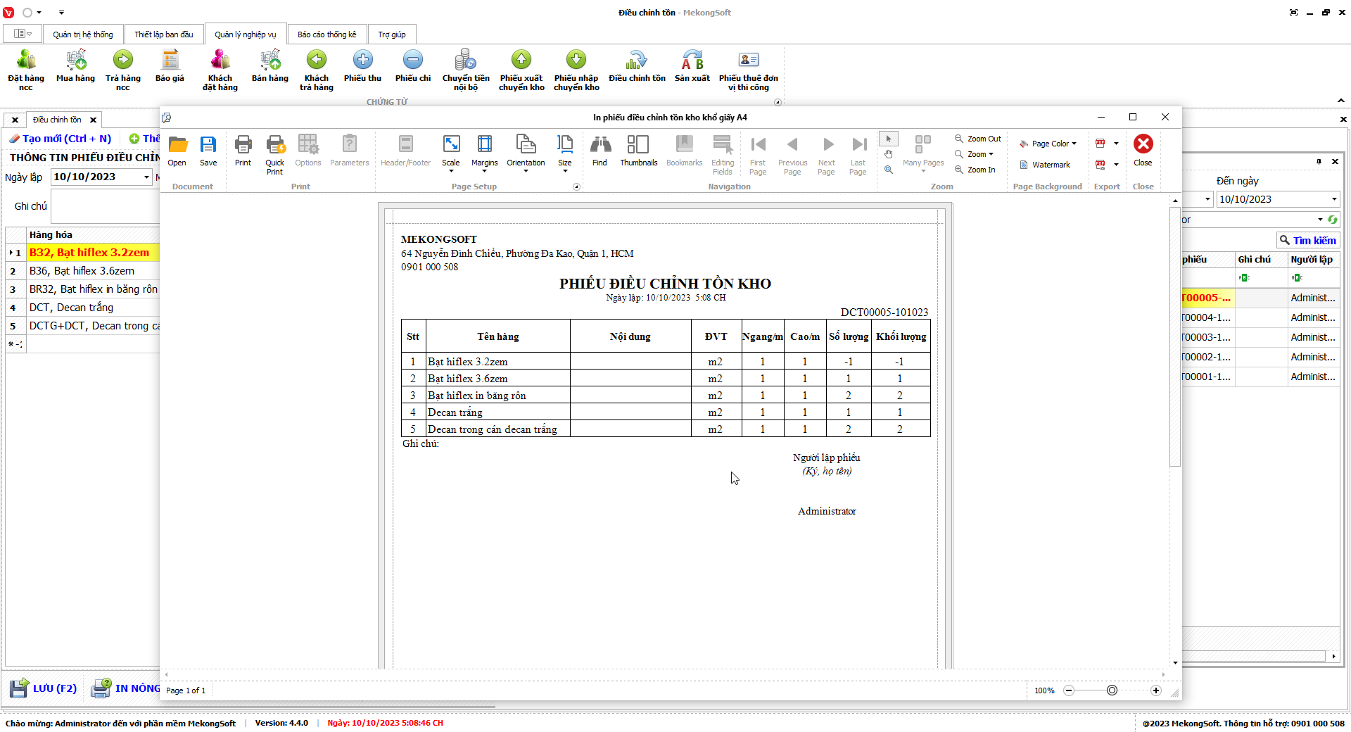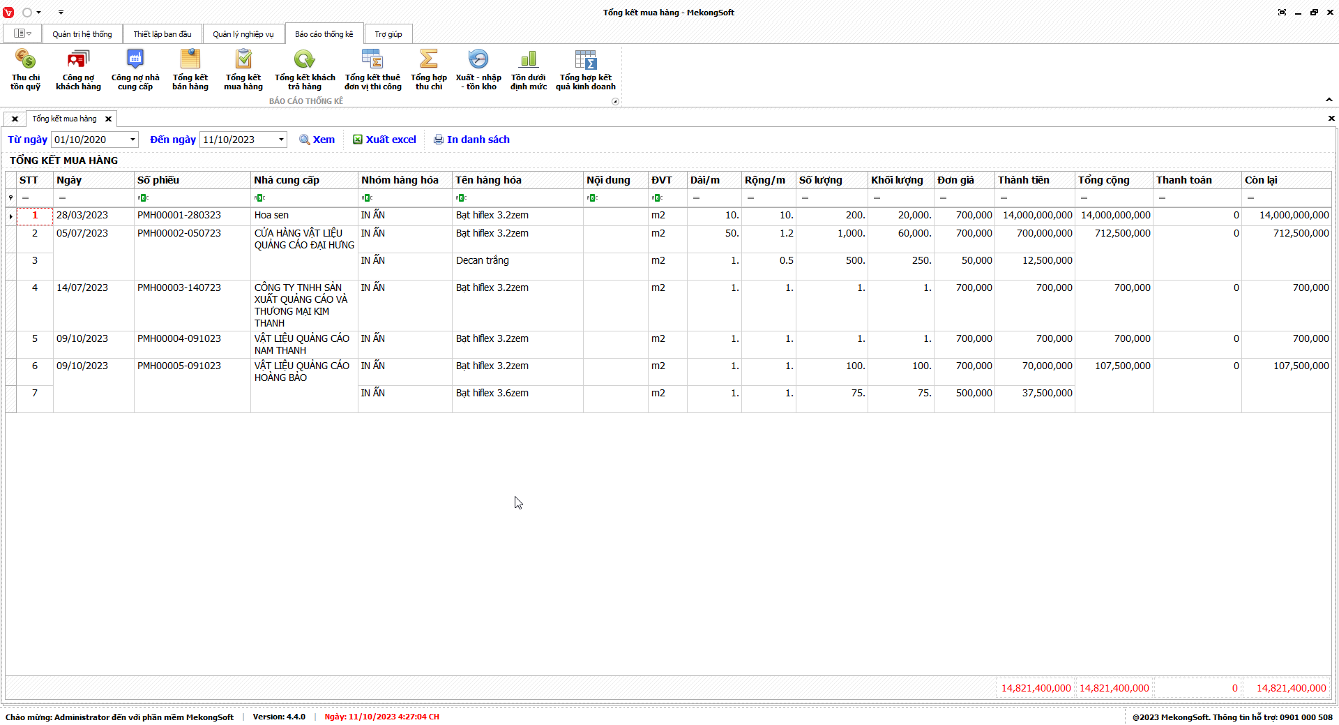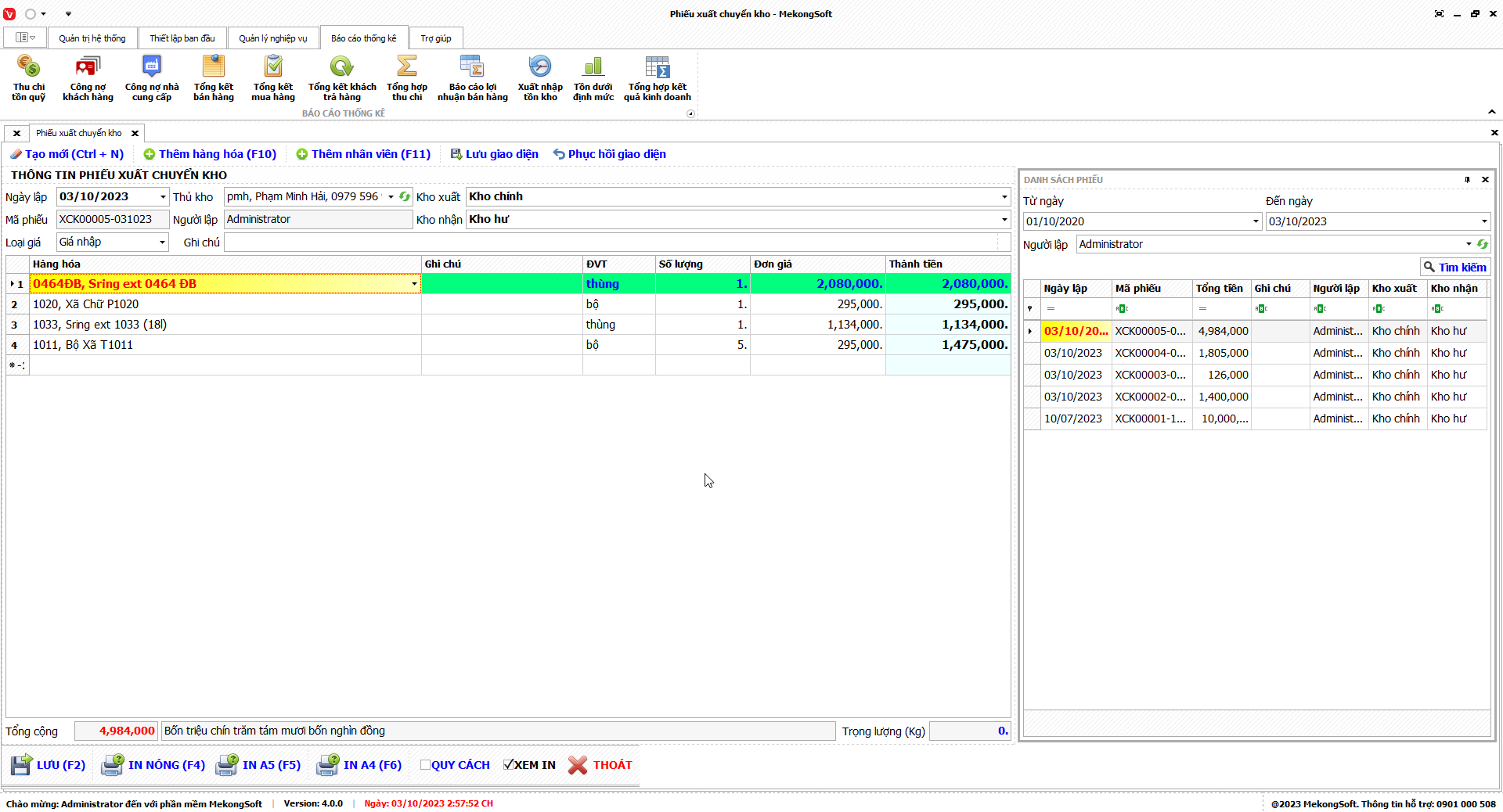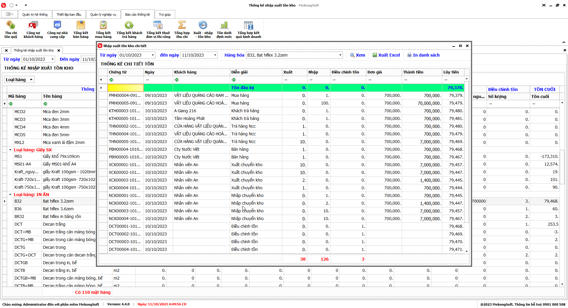 In thống kê xuất nhập tồn