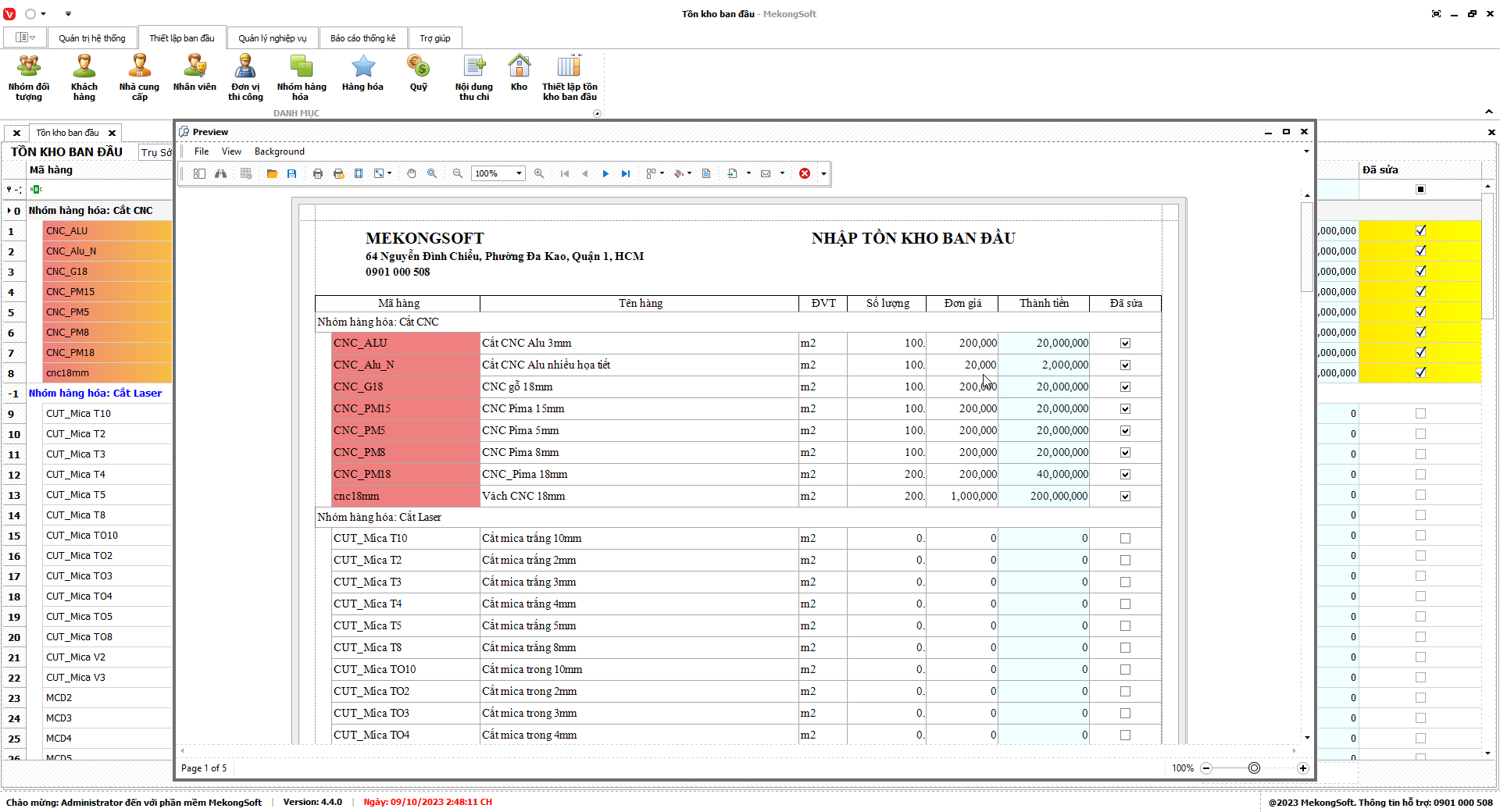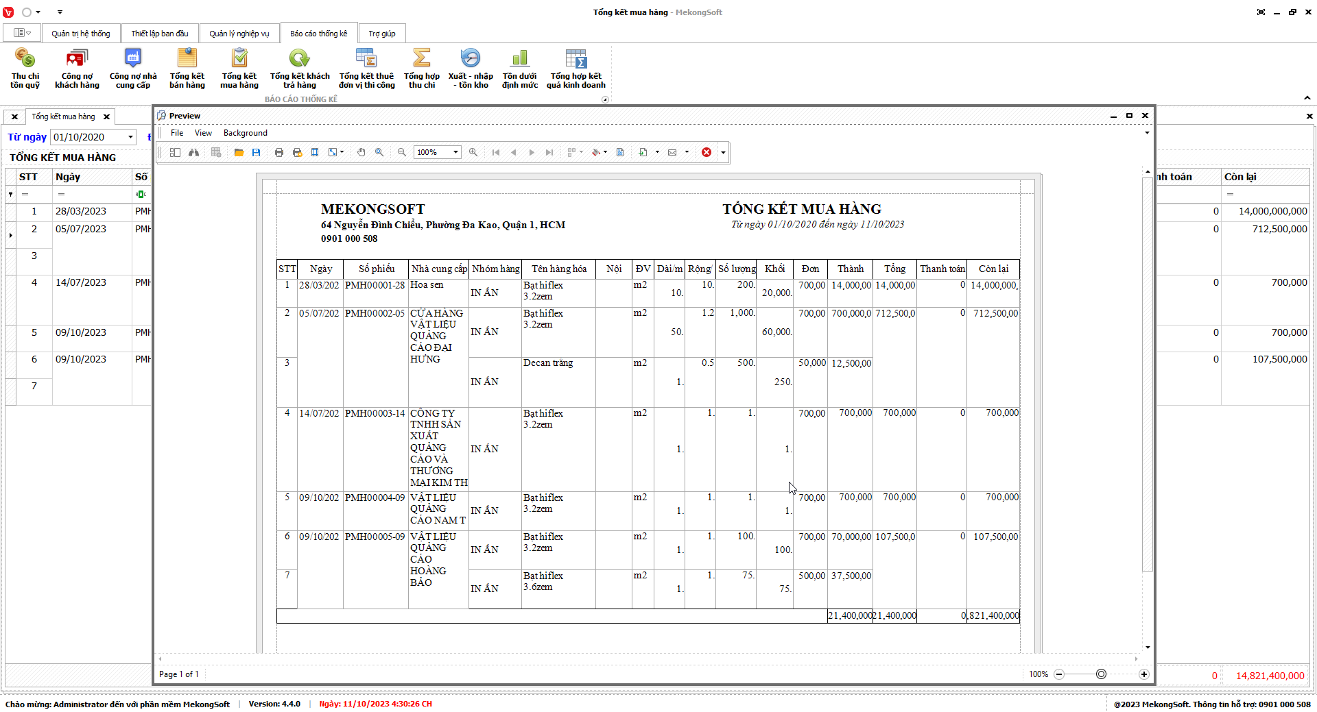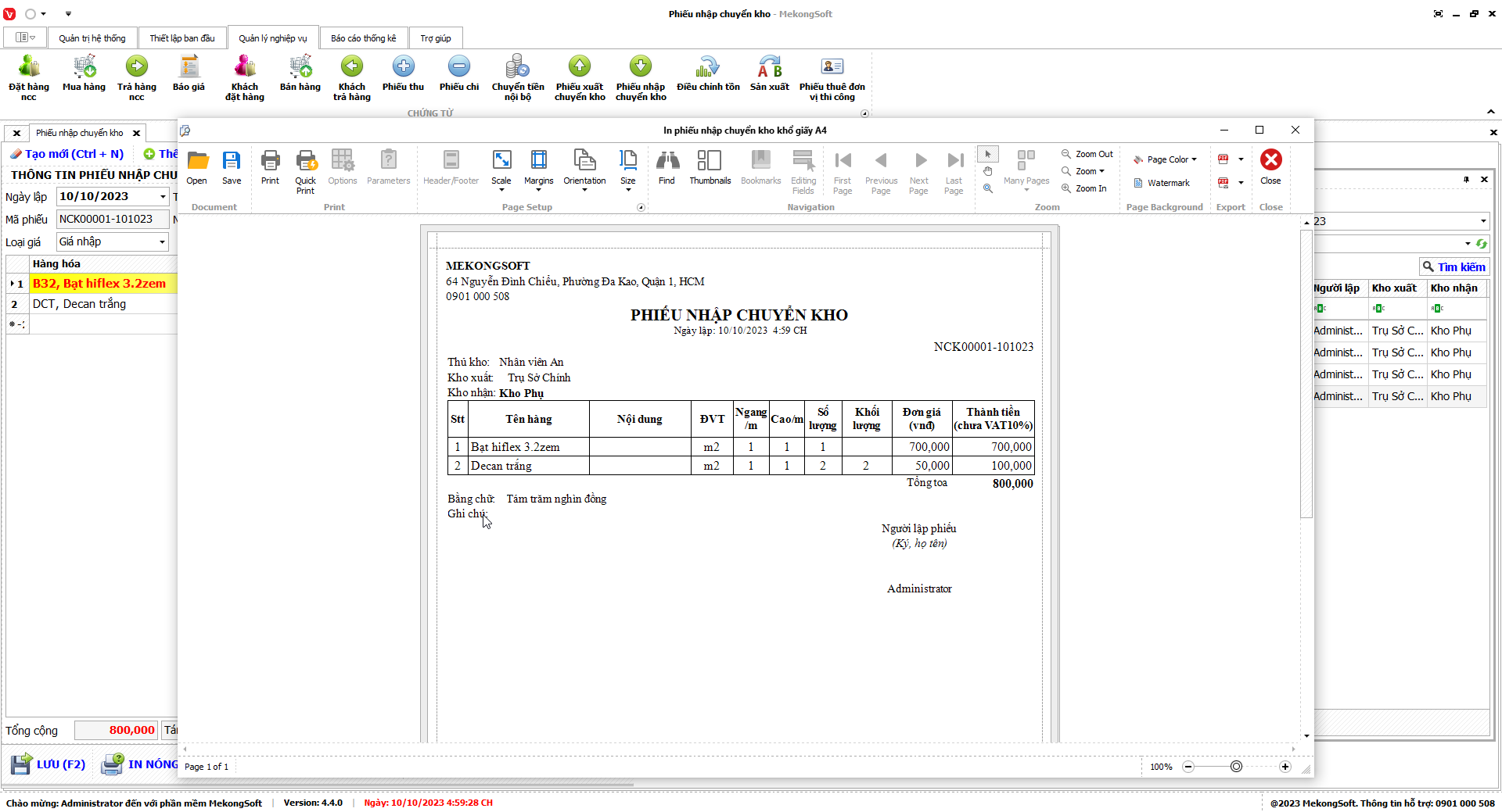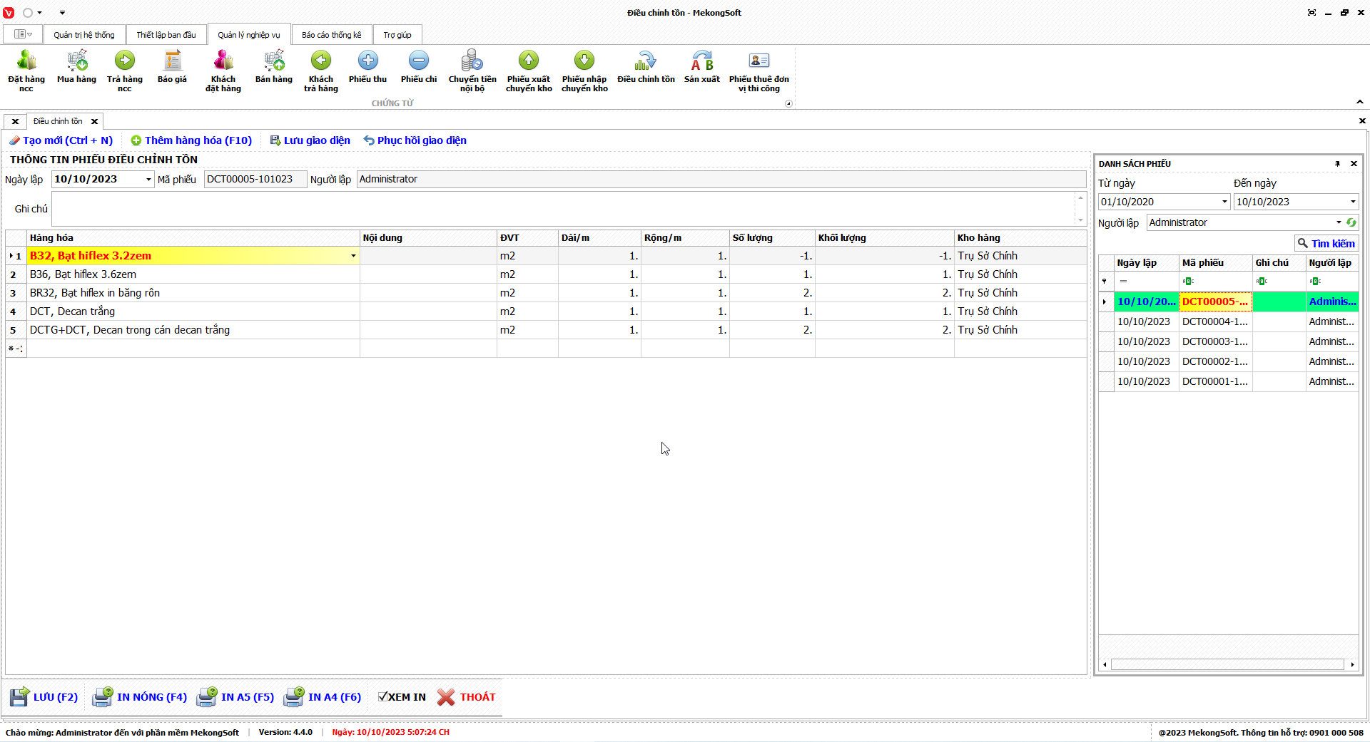 In thống kê xuất nhập tồn