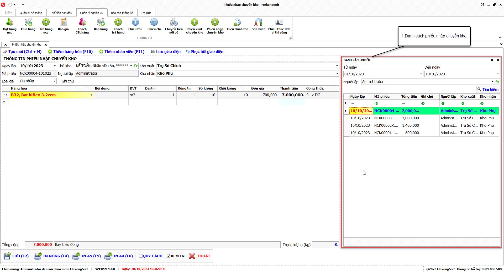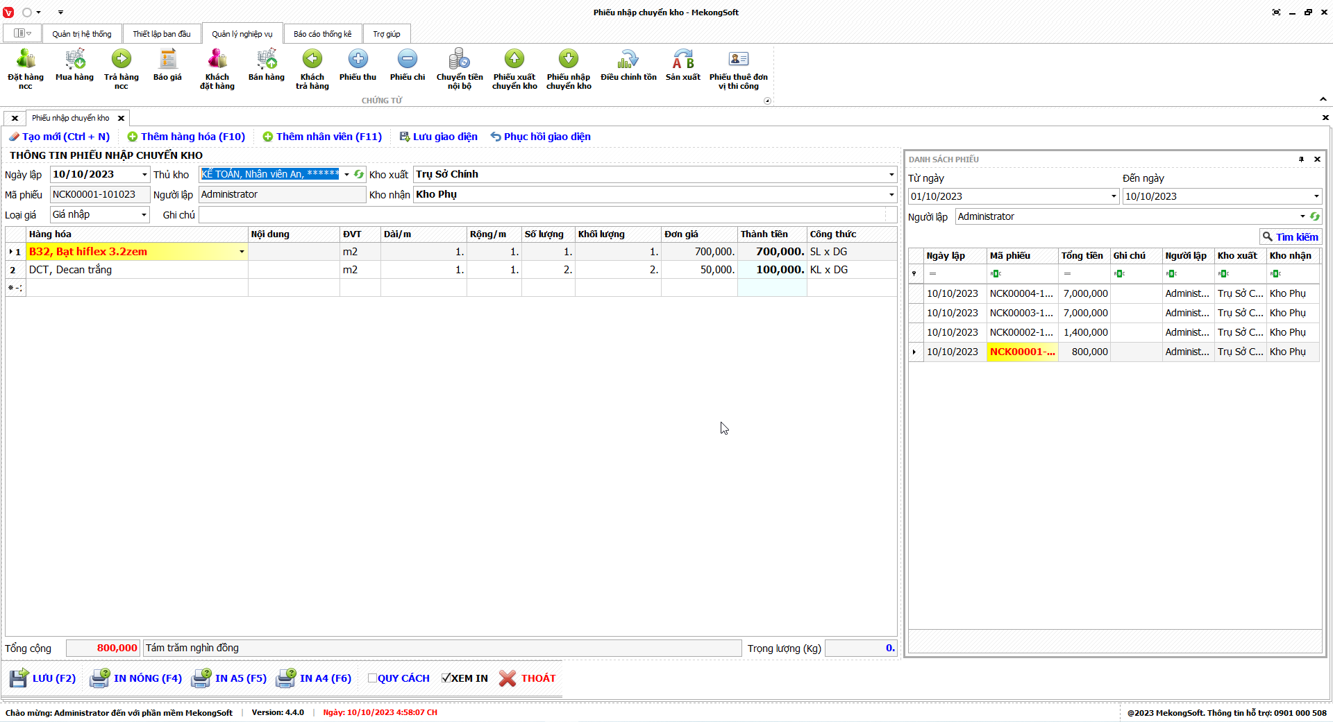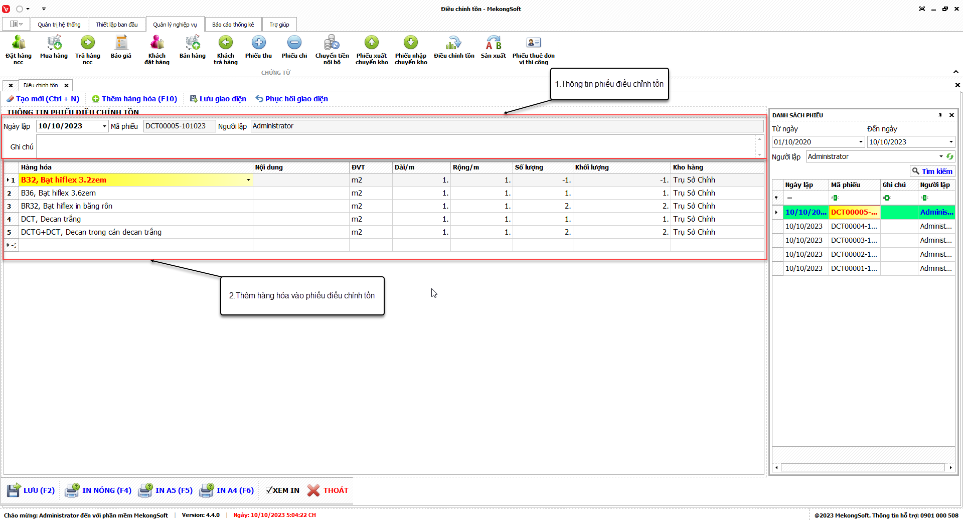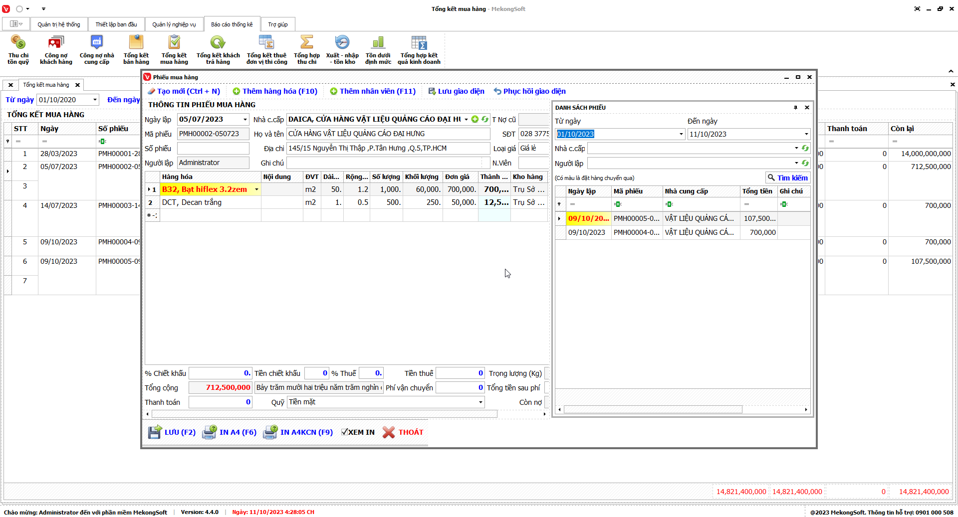 In thống kê xuất nhập tồn