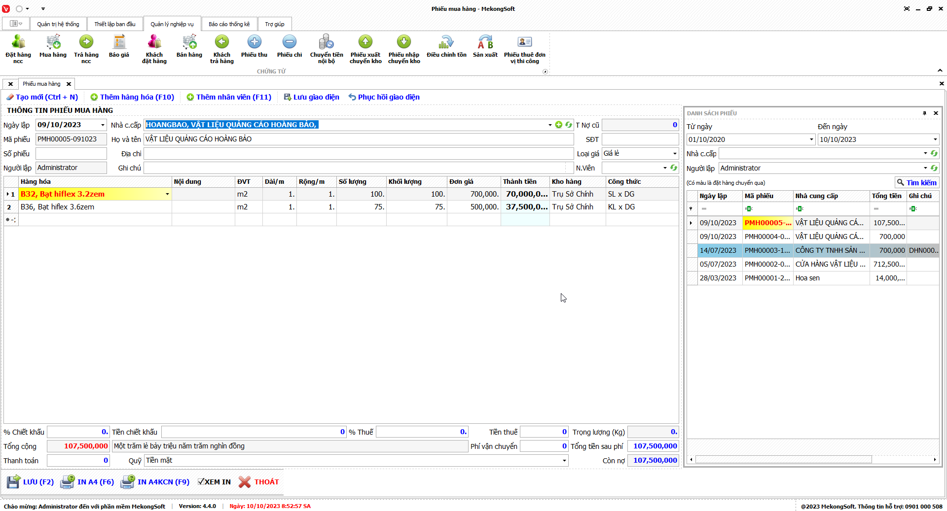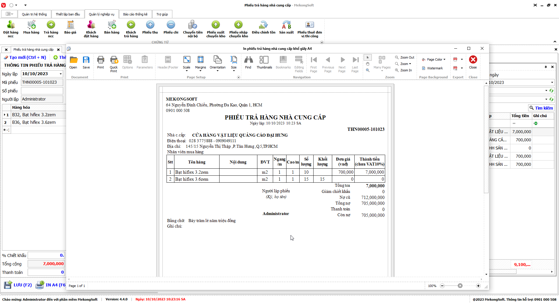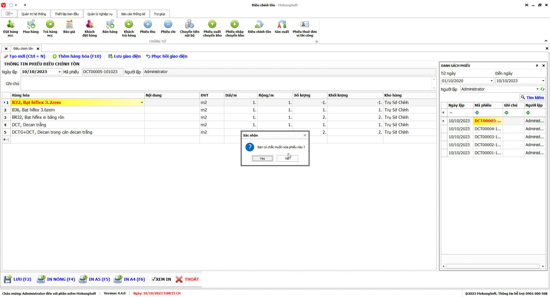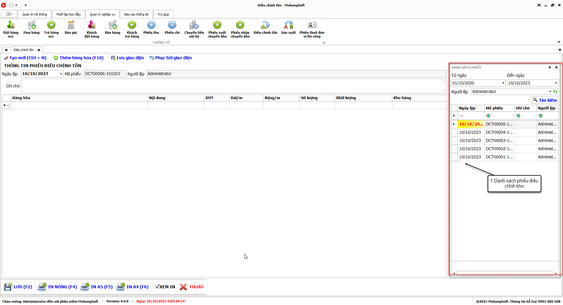 In thống kê xuất nhập tồn