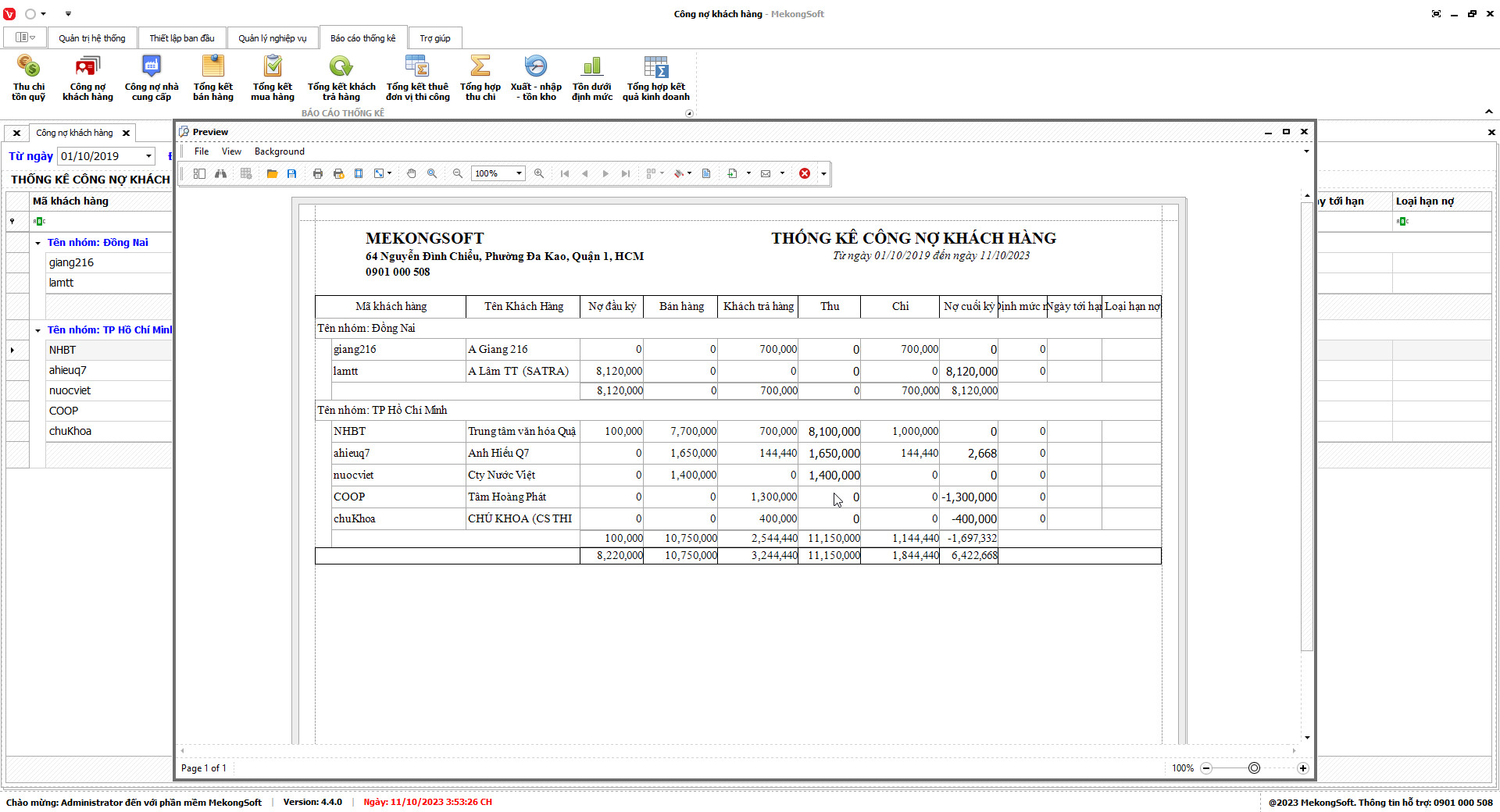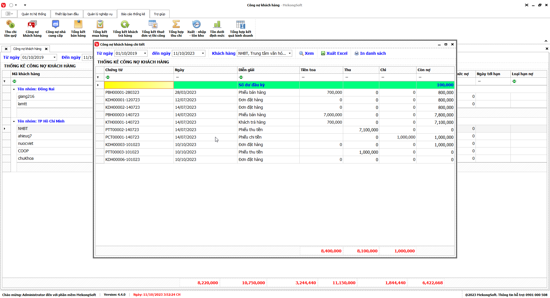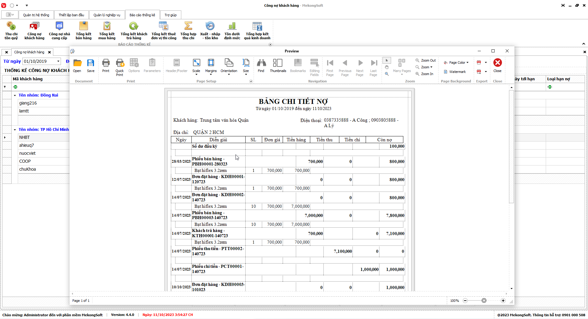 8.2. Báo cáo công nợ khách hàng