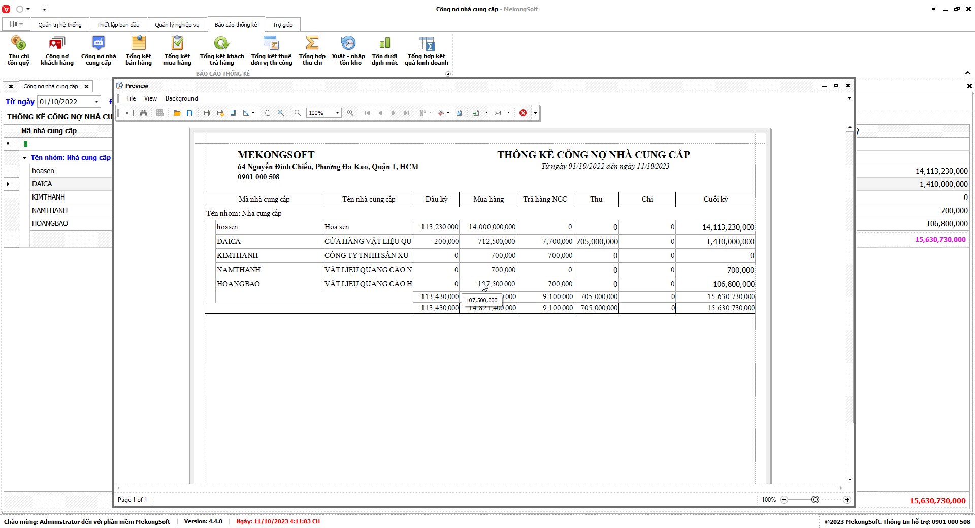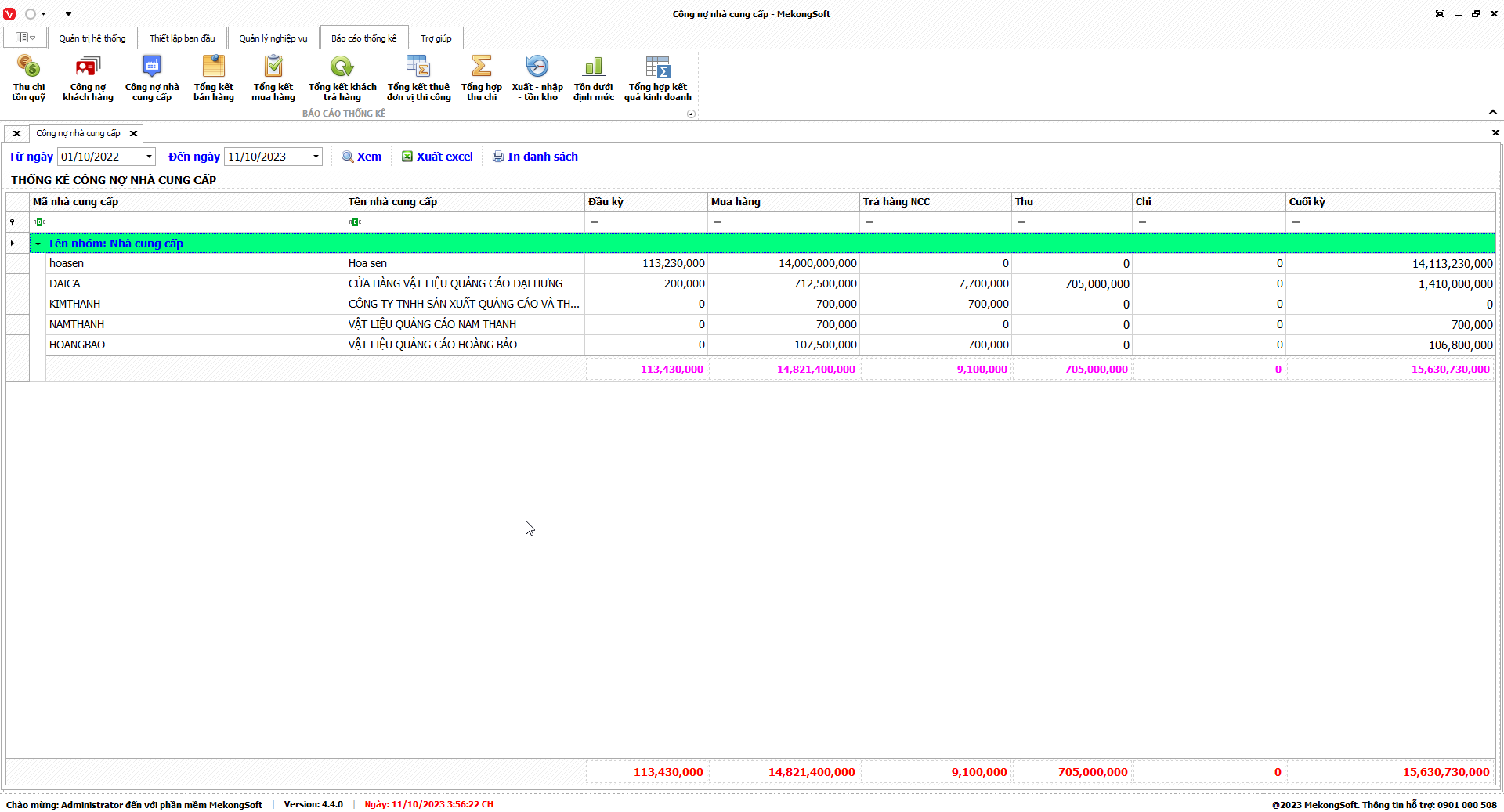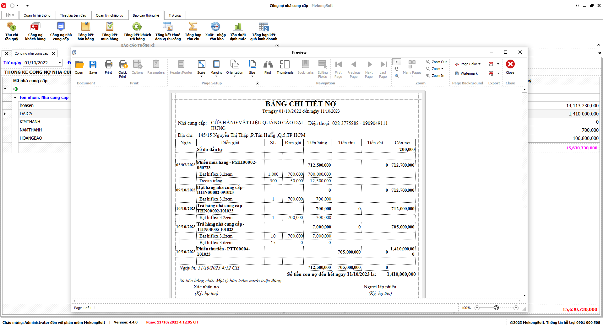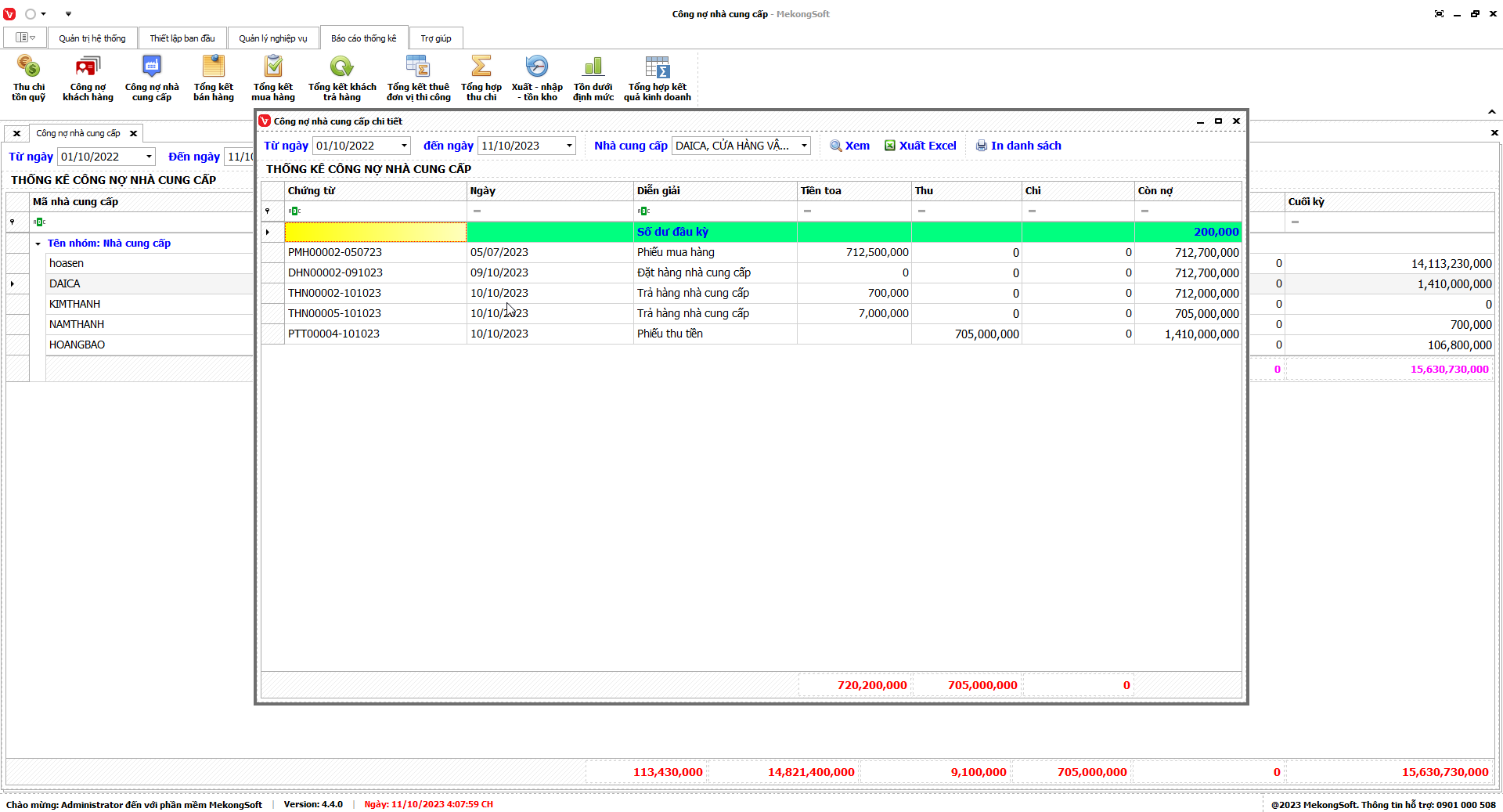 8.3. Báo cáo công nợ nhà cung cấp