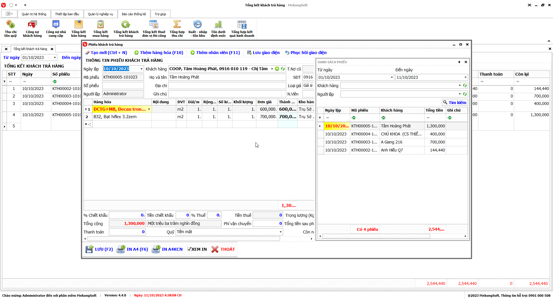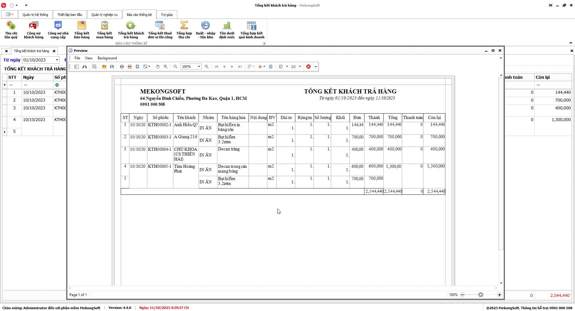 8.6. Tổng kết khách trả hàng
