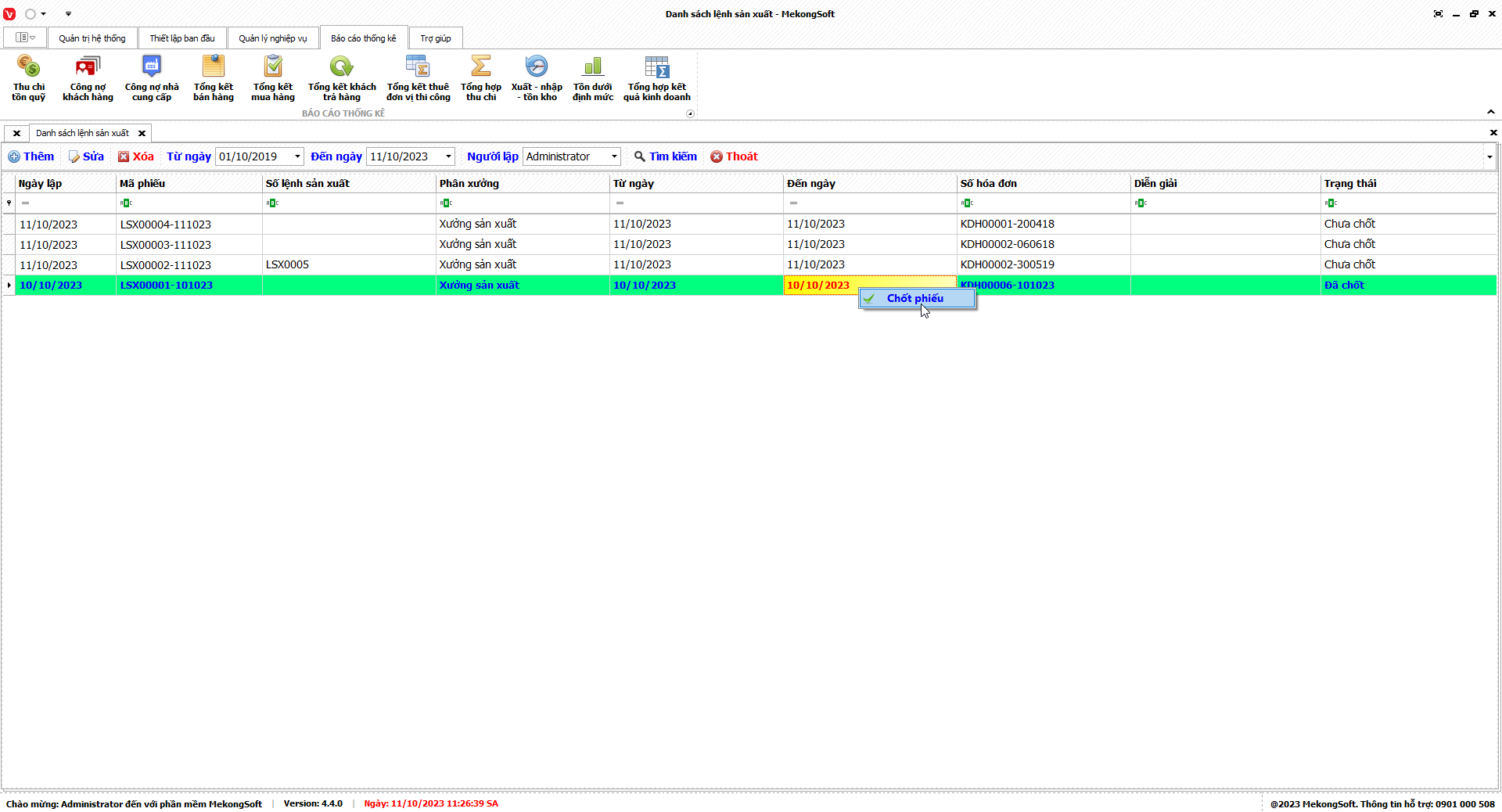 Tại màn hình Tổng hợp kết quả kinh doanh