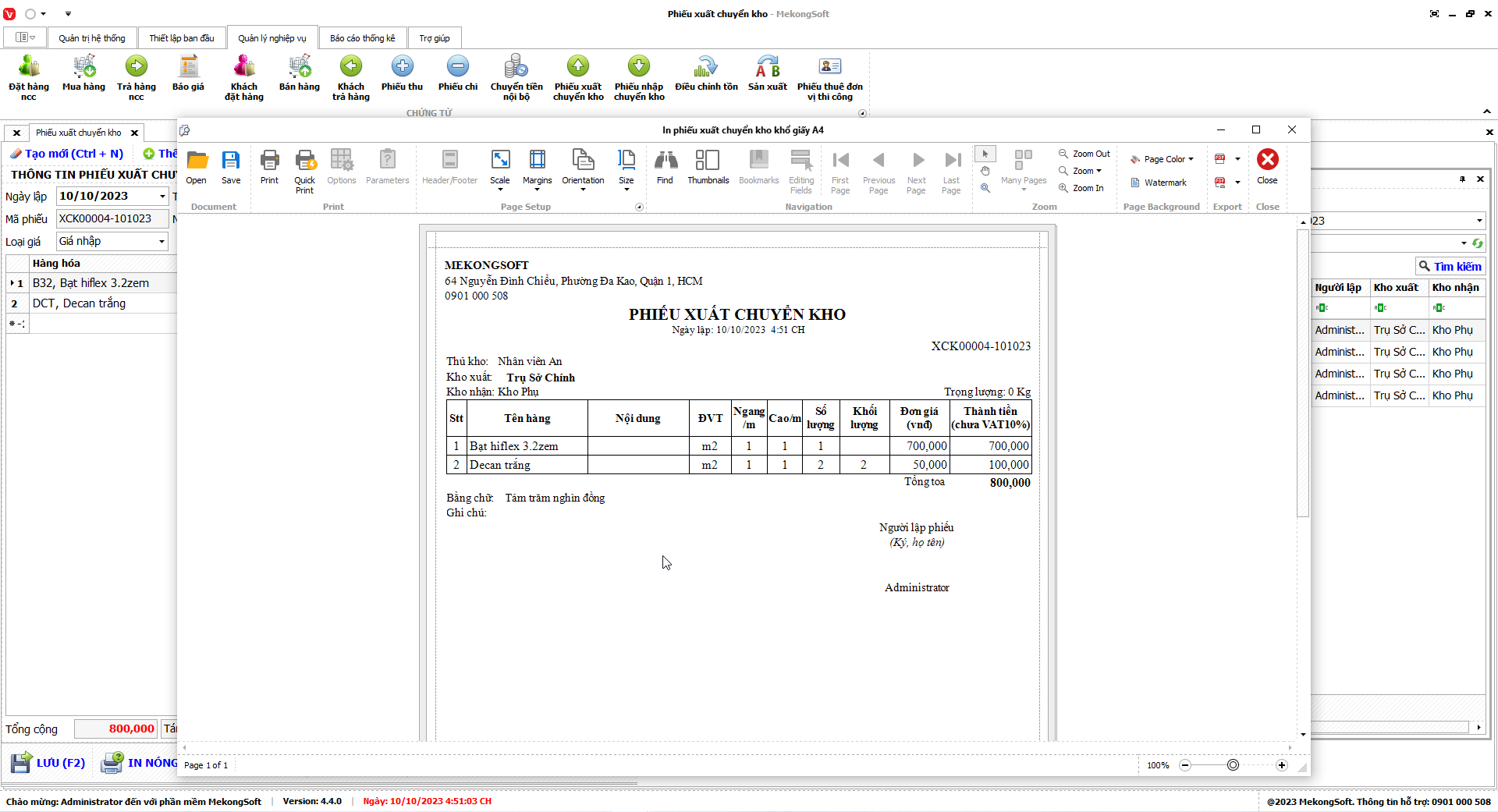 2. Nhấp vào Print để in thống kê xuất nhập tồn