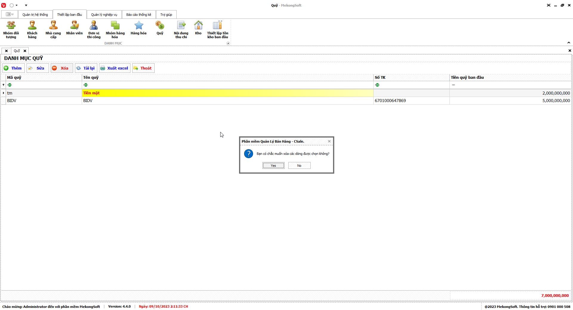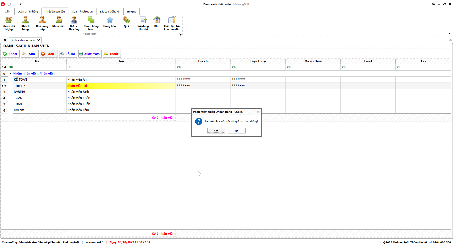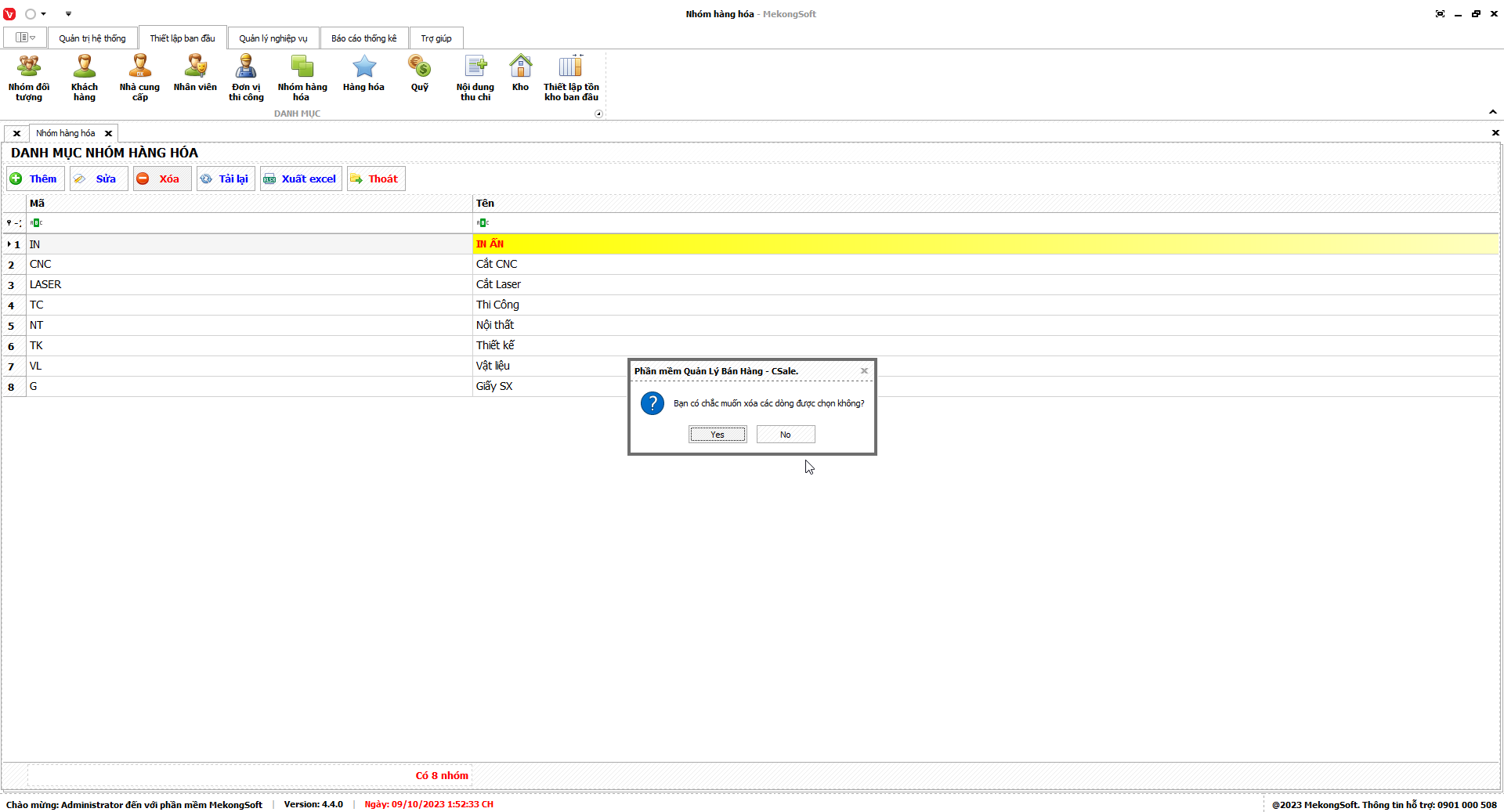 3. Nhấp vào Yes để xác nhận xóa nhóm quyền