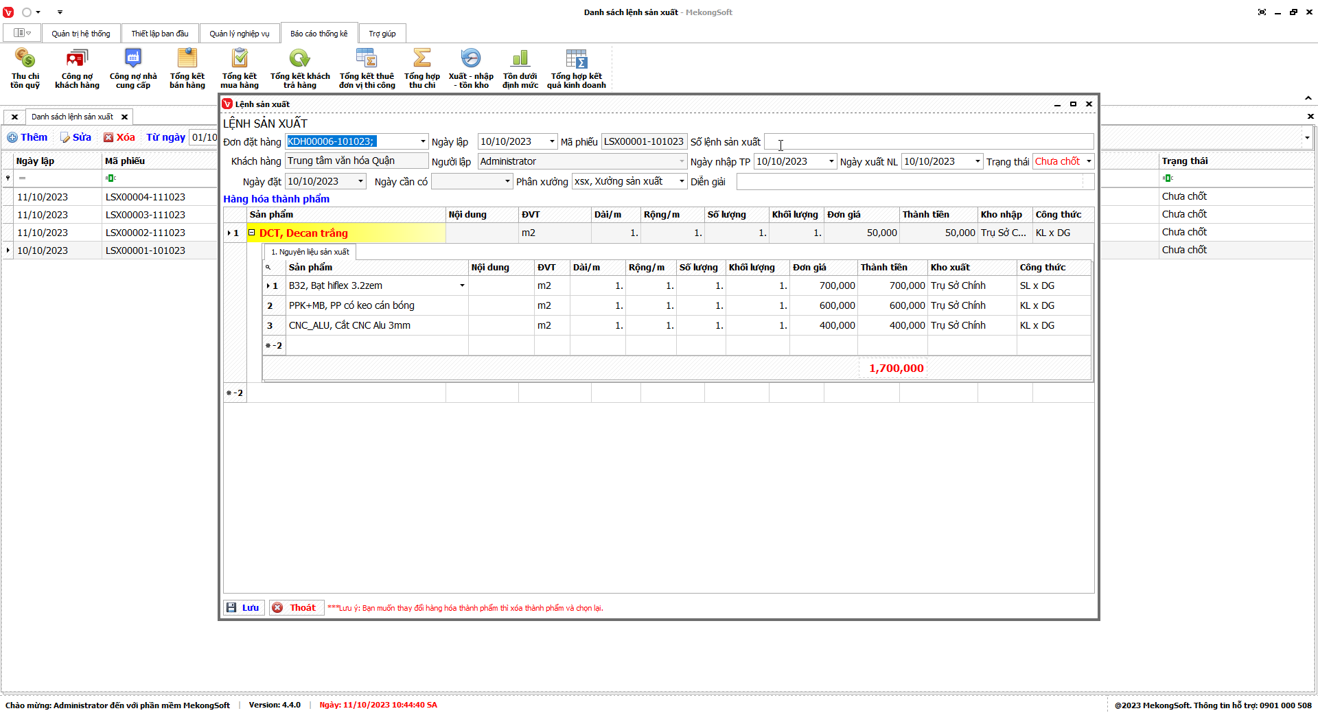 Thao tác này sẽ mở ra chi tiết thống kê xuất nhập tồn