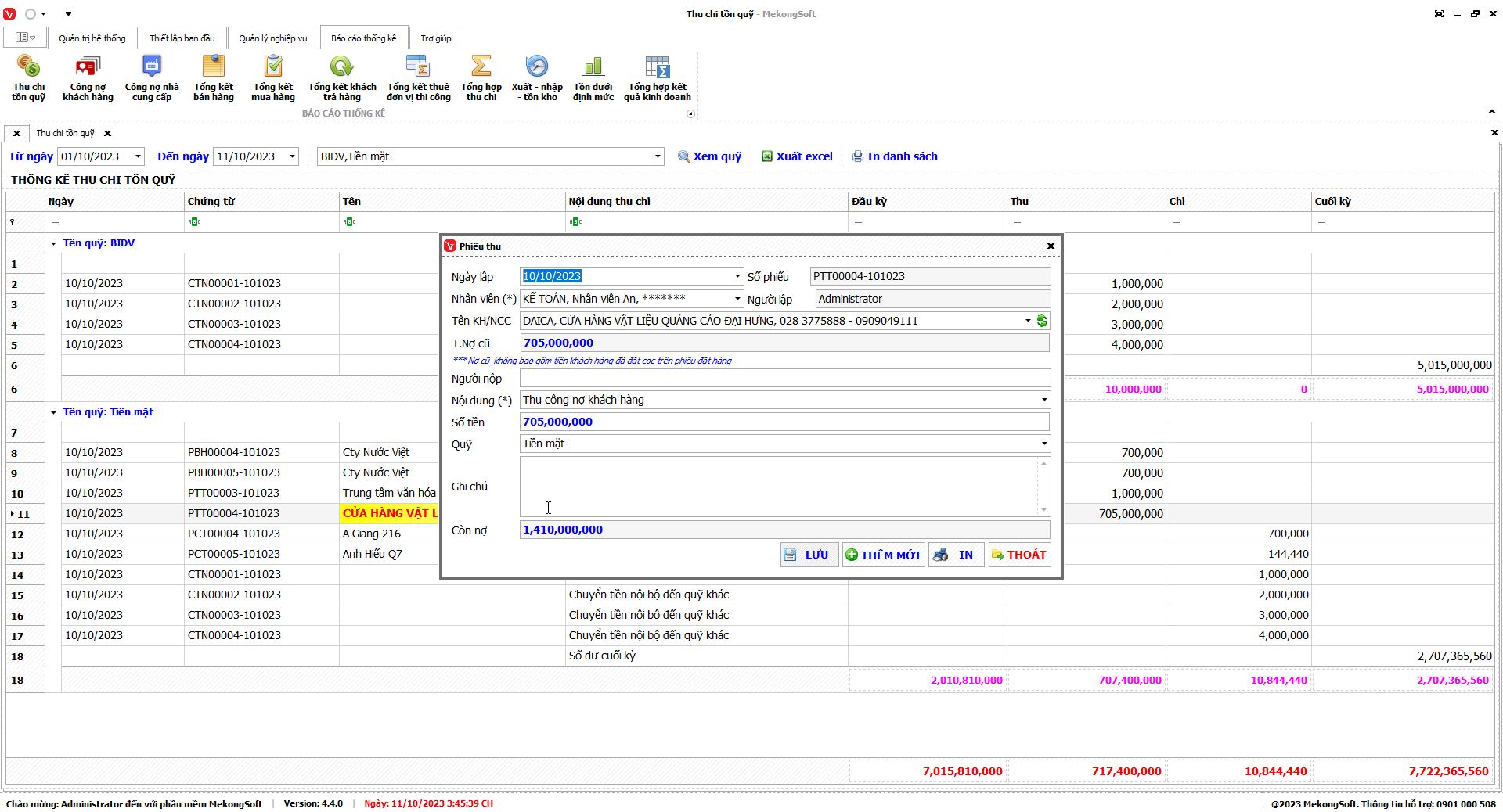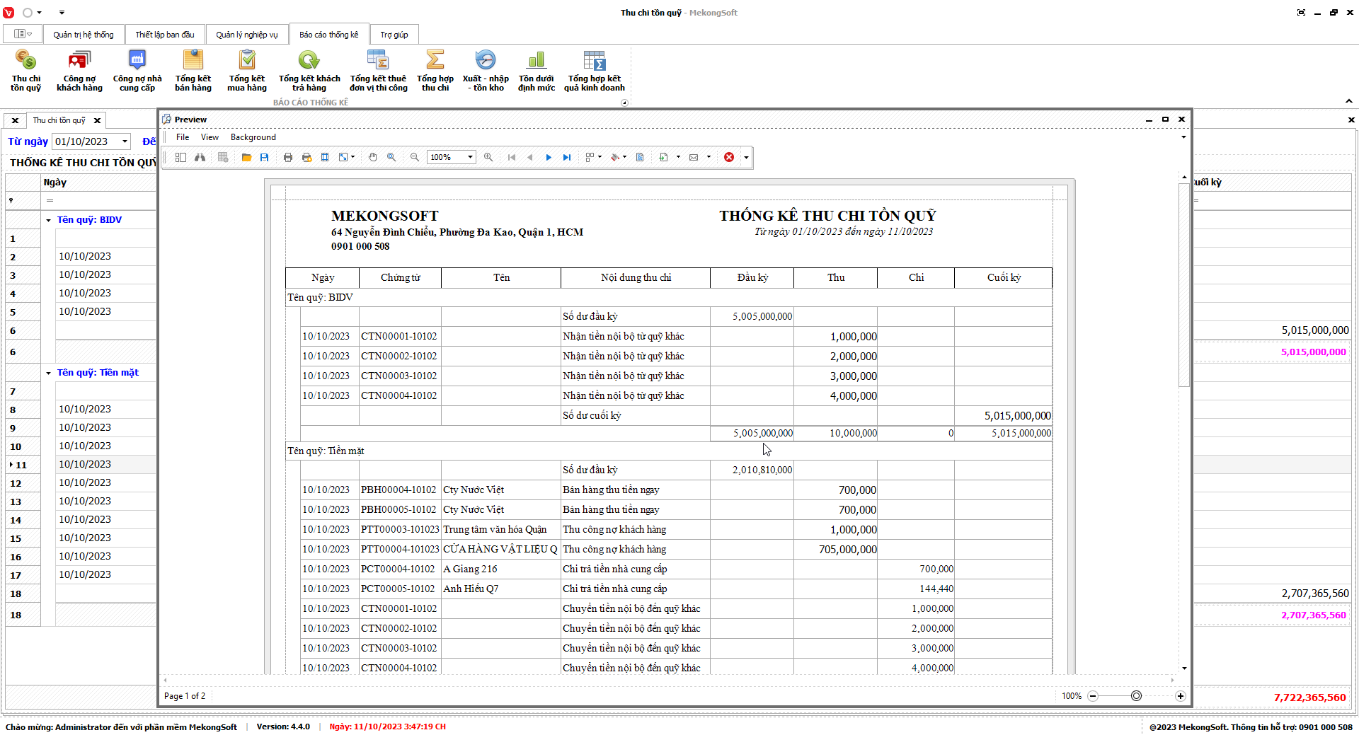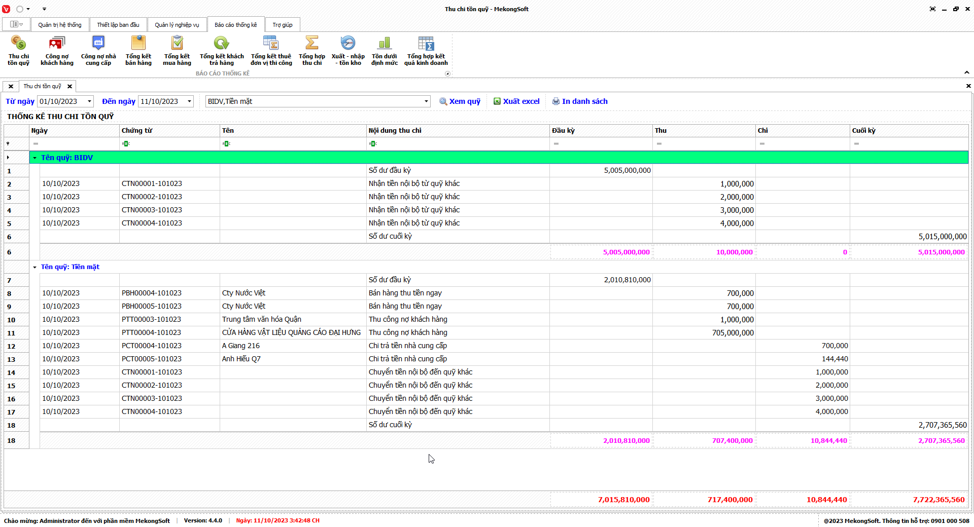8.1. Thu chi tồn quỹ