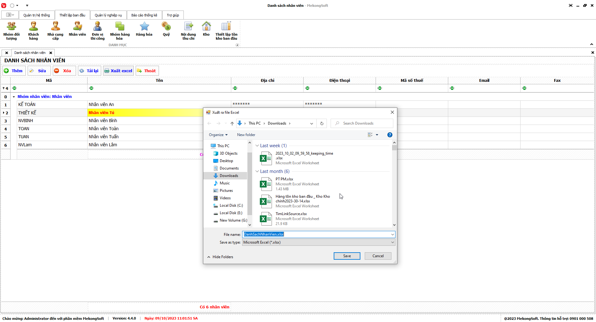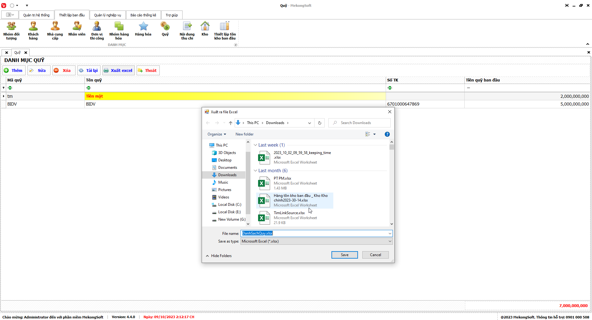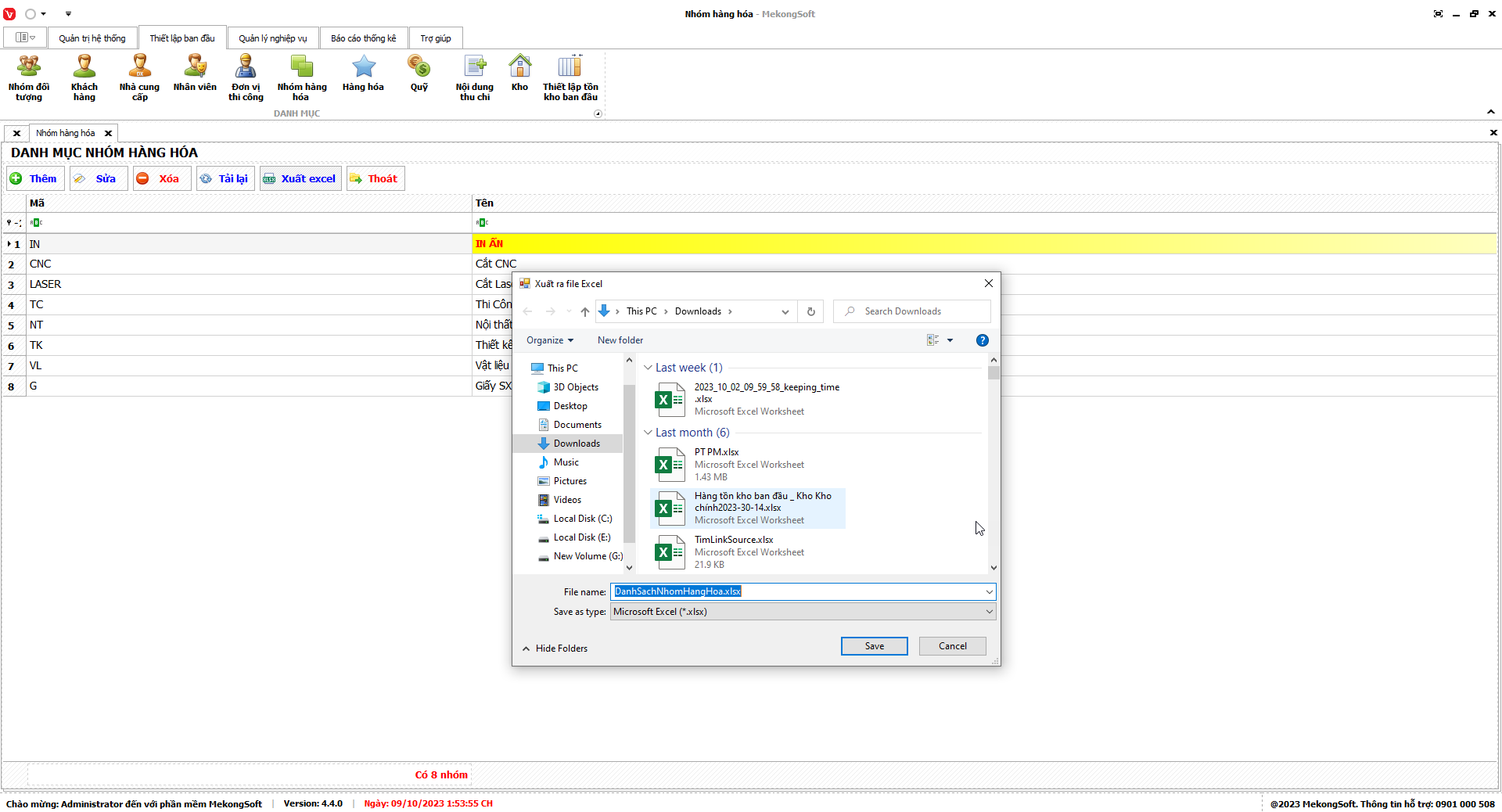 Phần mềm sẽ xuất thống kê hàng hóa tồn dưới định mức dưới dạng file excel.