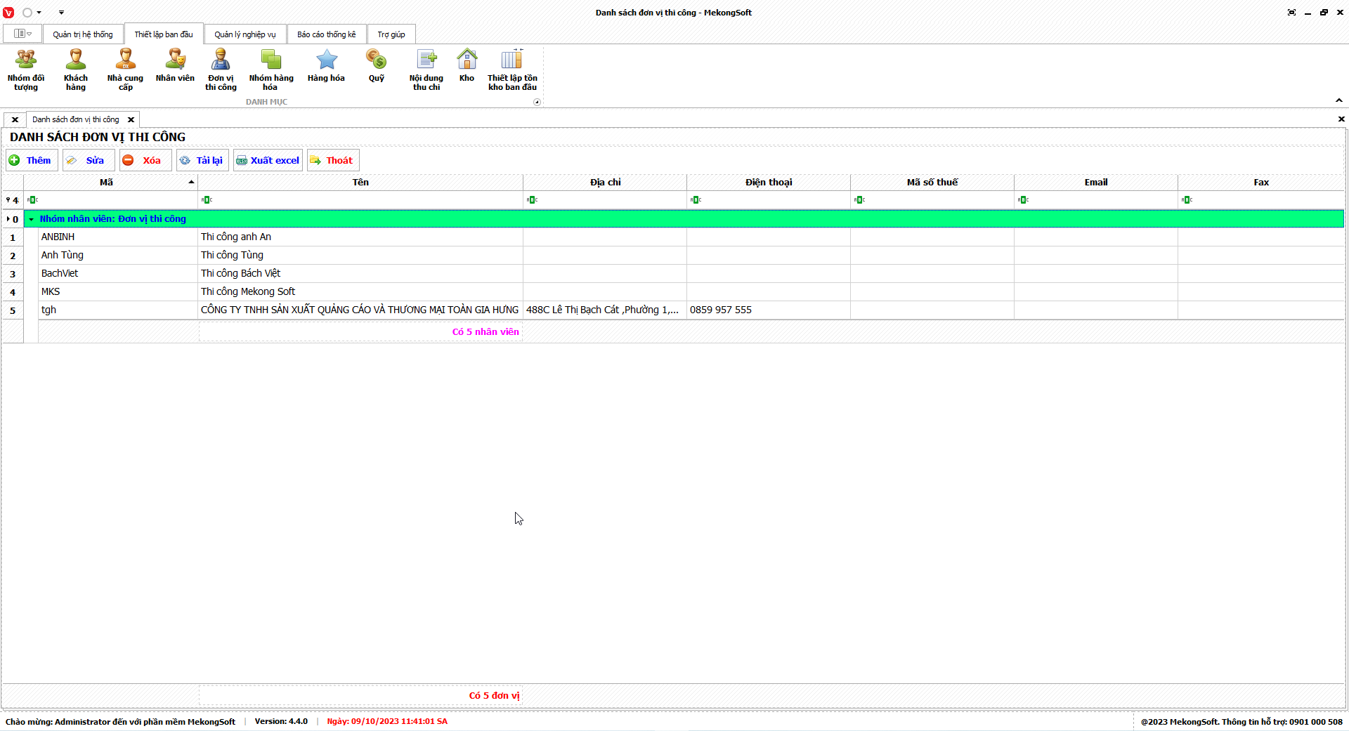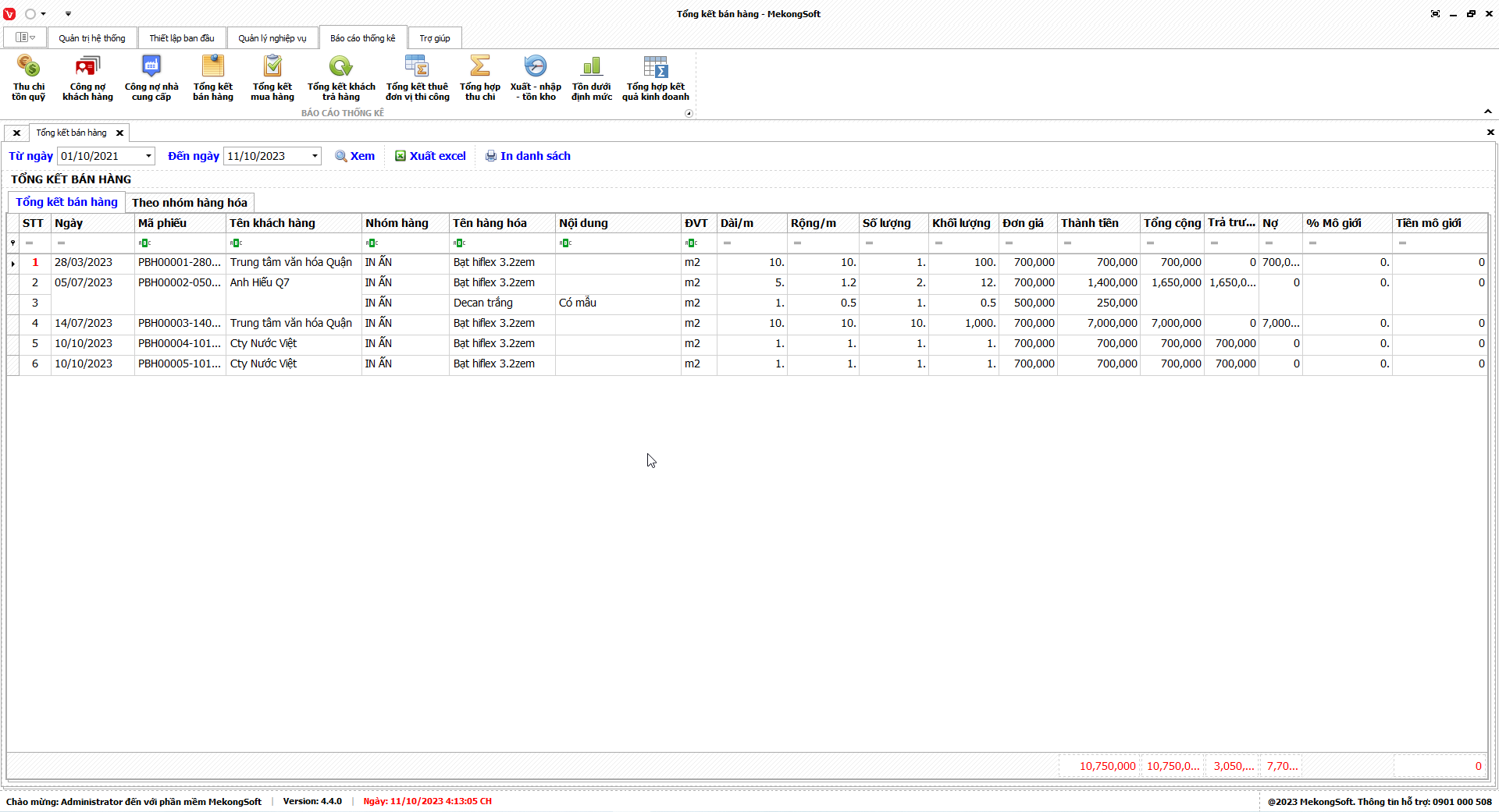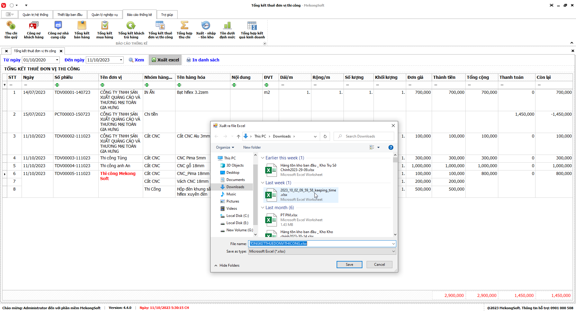 Phần mềm sẽ xuất báo cáo tổng kết thê đơn vị thi công dưới dạng file excel.