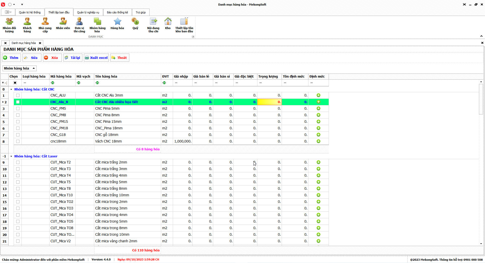 Xuất excel thống kê hàng hóa tồn dưới định mức