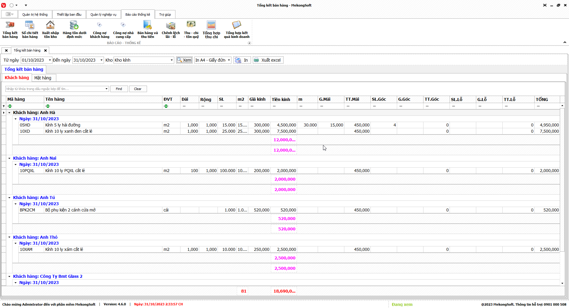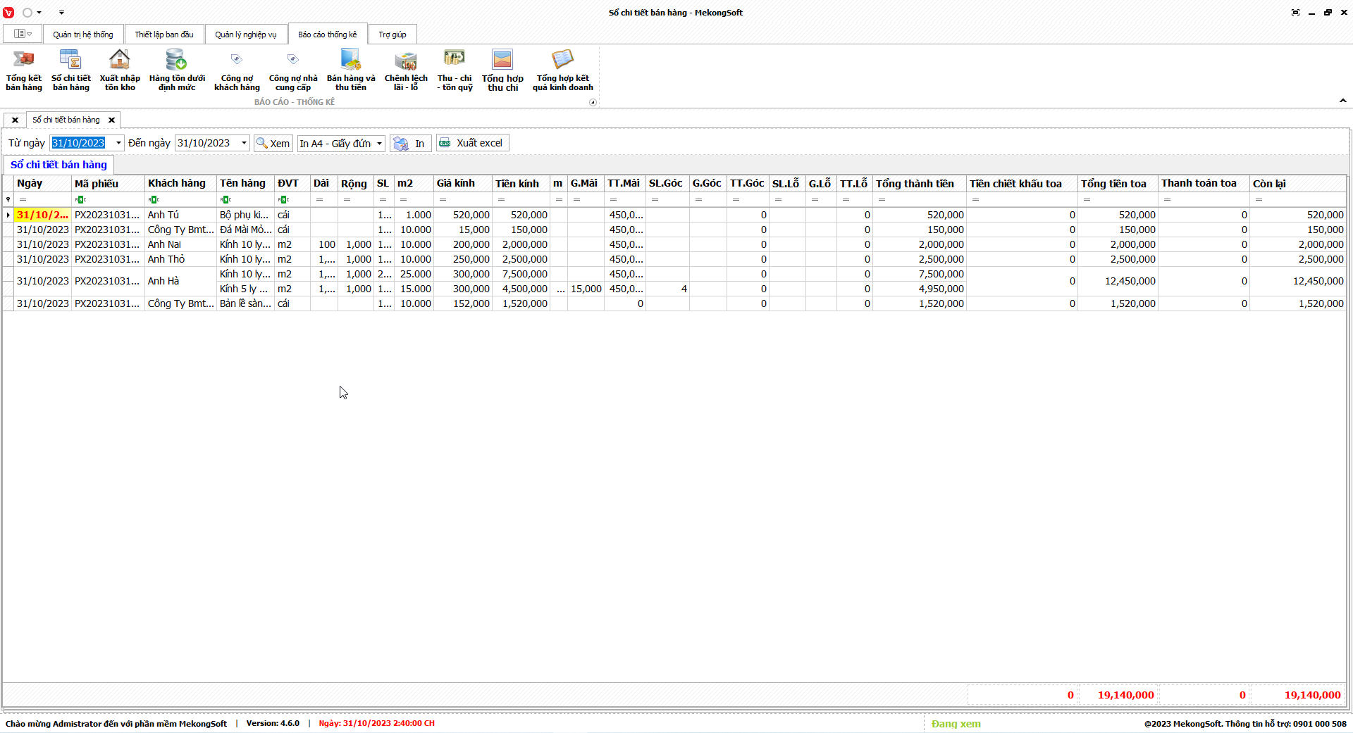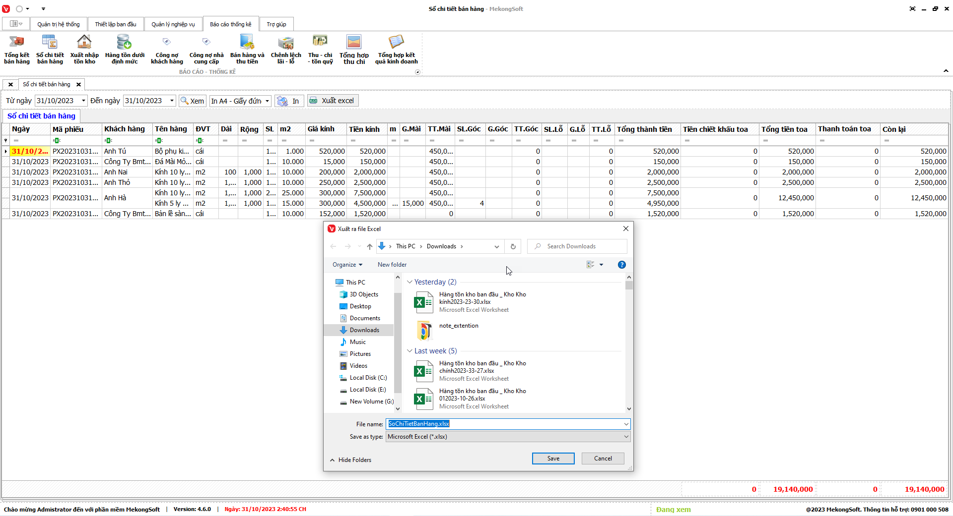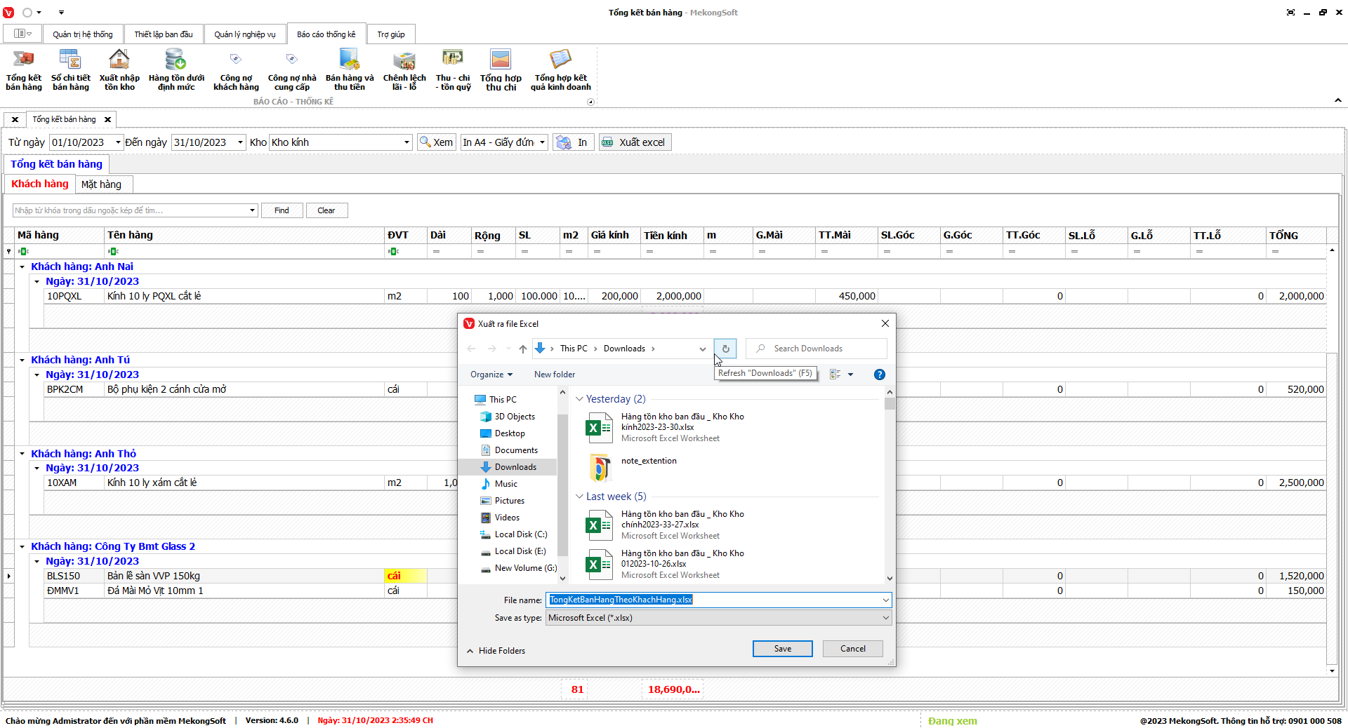 Để xuất excel tổng hợp kết quả kinh doanh trên phần mềm quản lý kinh doanh kính xây dựng, bạn có thể thực hiện theo các bước sau: