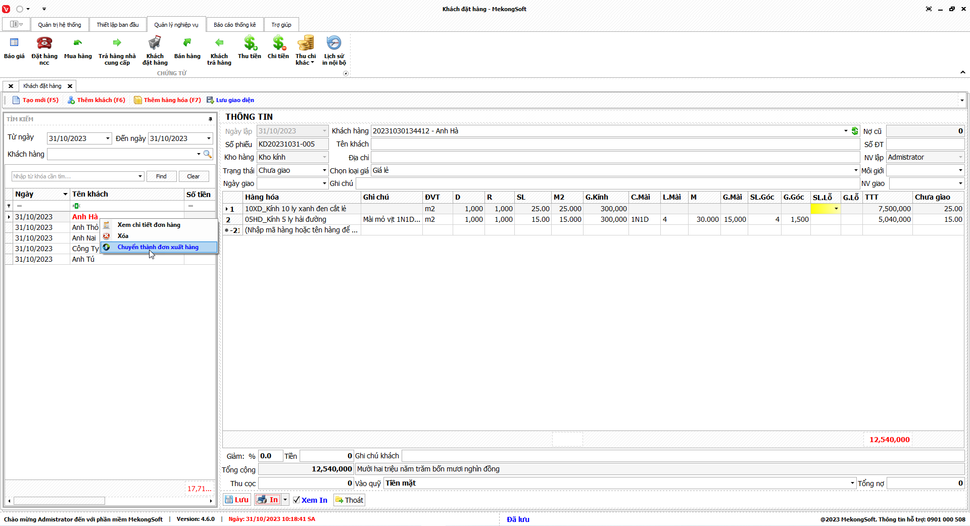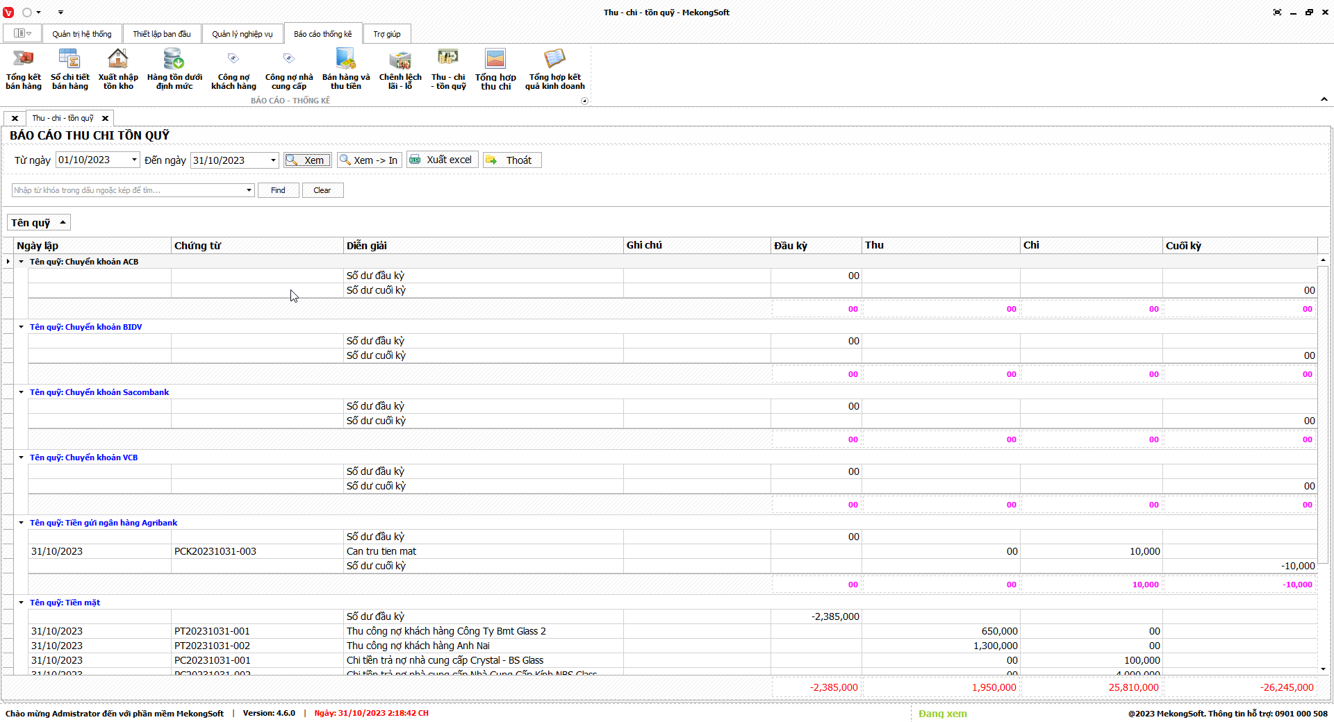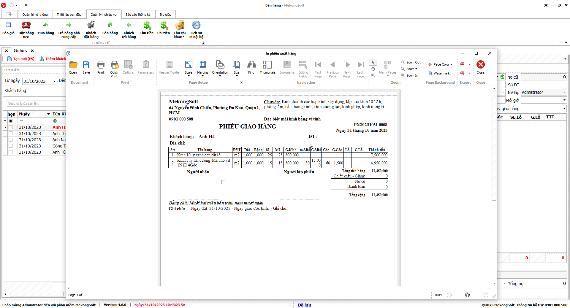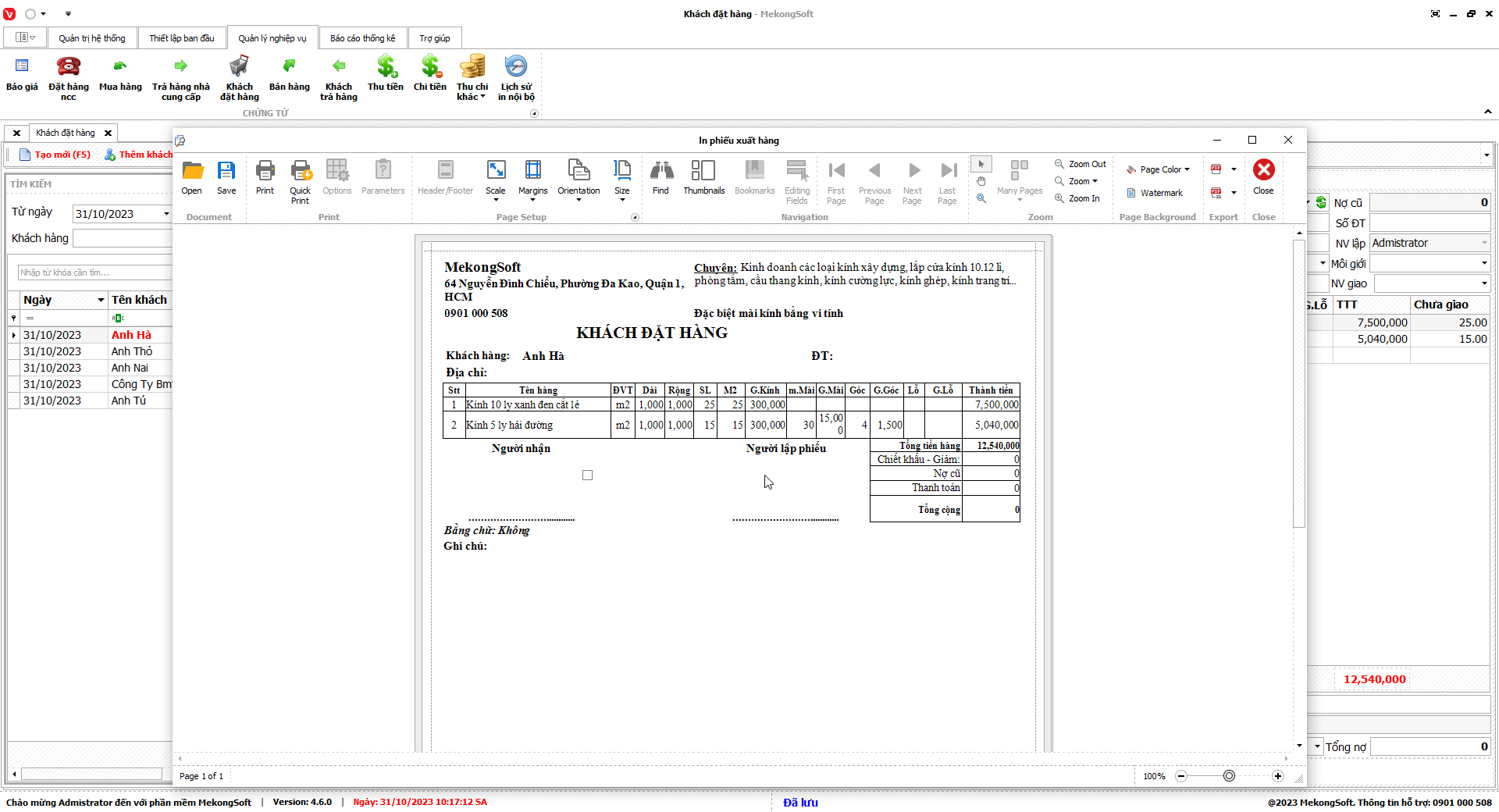 Để xuất excel tổng hợp kết quả kinh doanh trên phần mềm quản lý kinh doanh kính xây dựng, bạn có thể thực hiện theo các bước sau: