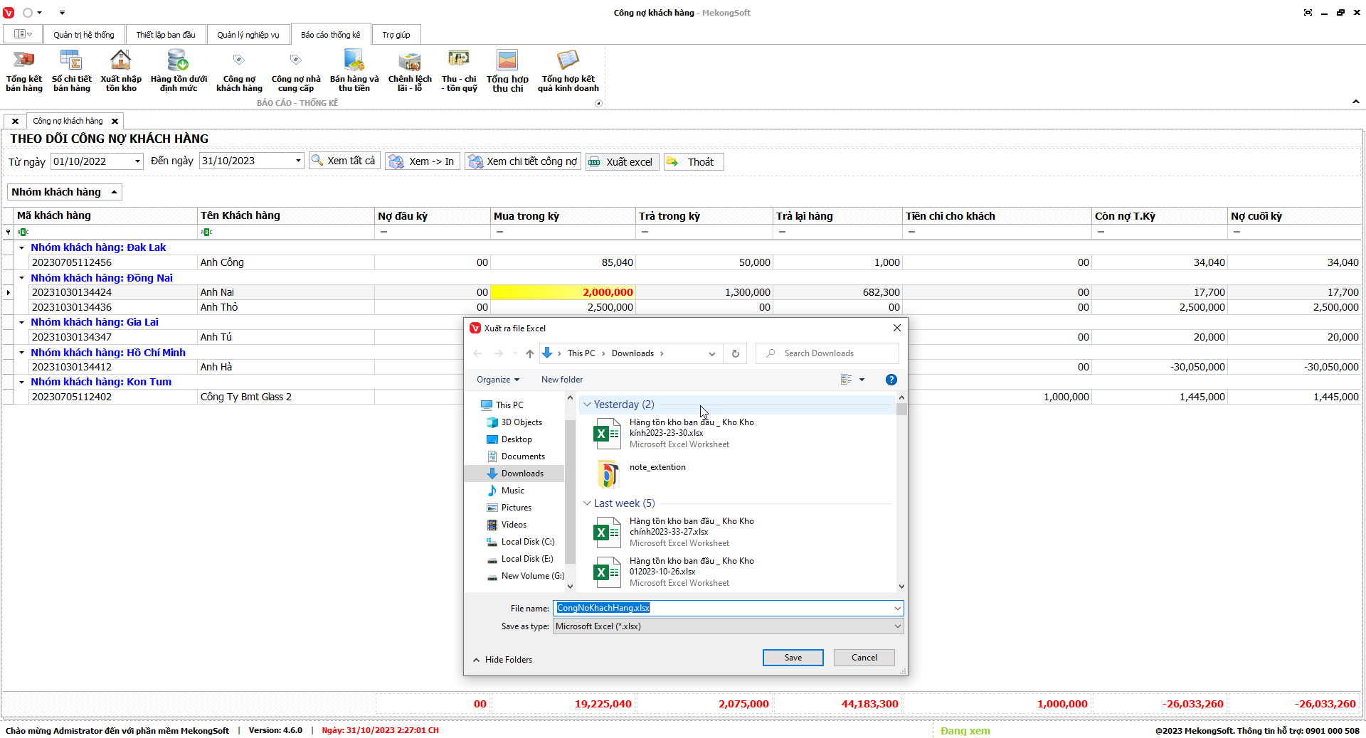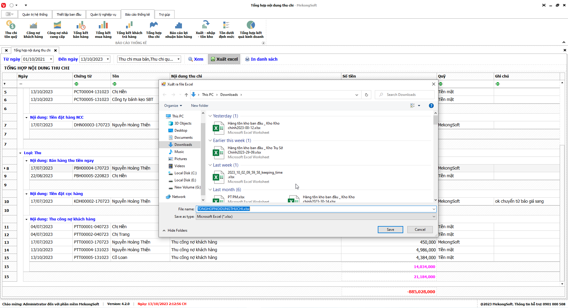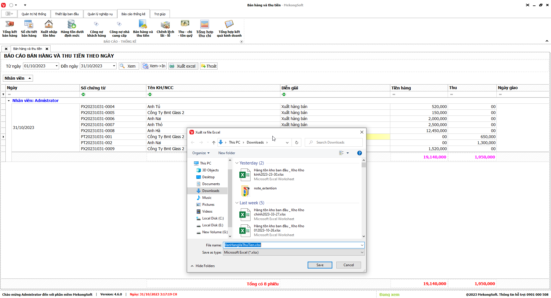 Phần mềm sẽ xuất báo cáo tổng hợp kết quả kinh doanh dưới dạng file excel.
