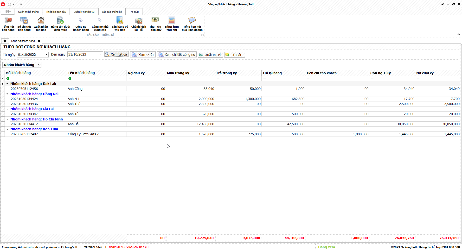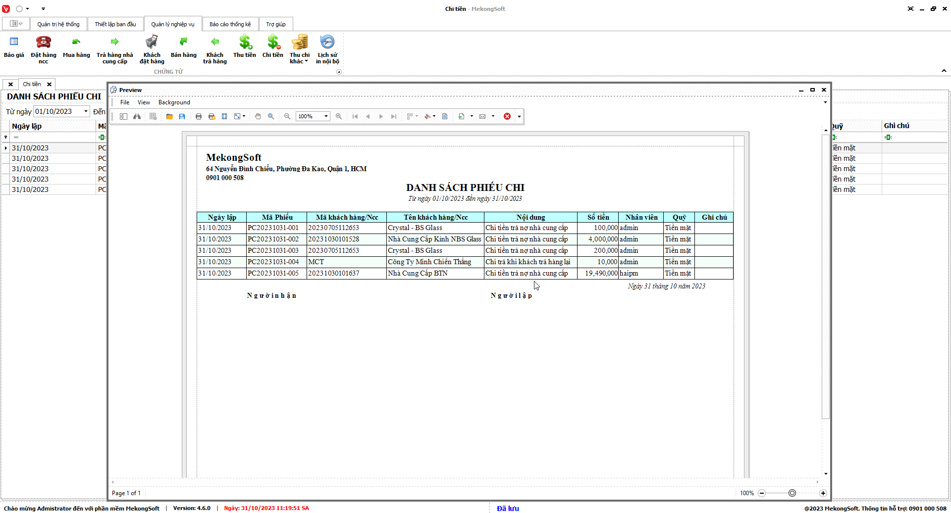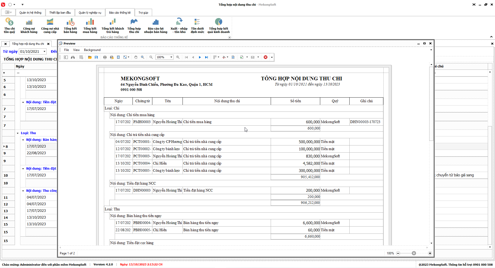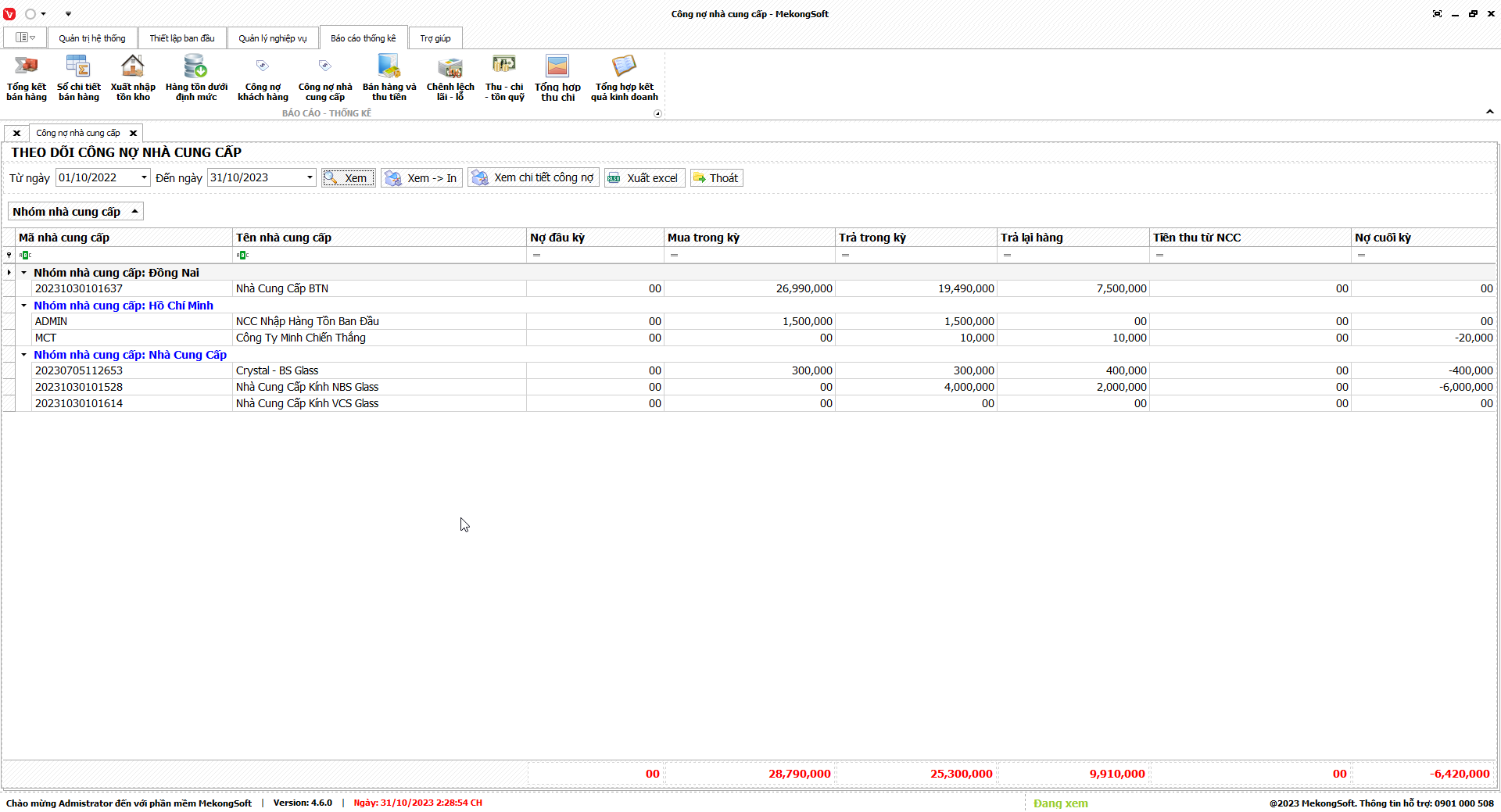 Phần mềm sẽ xuất báo cáo tổng hợp kết quả kinh doanh dưới dạng file excel.