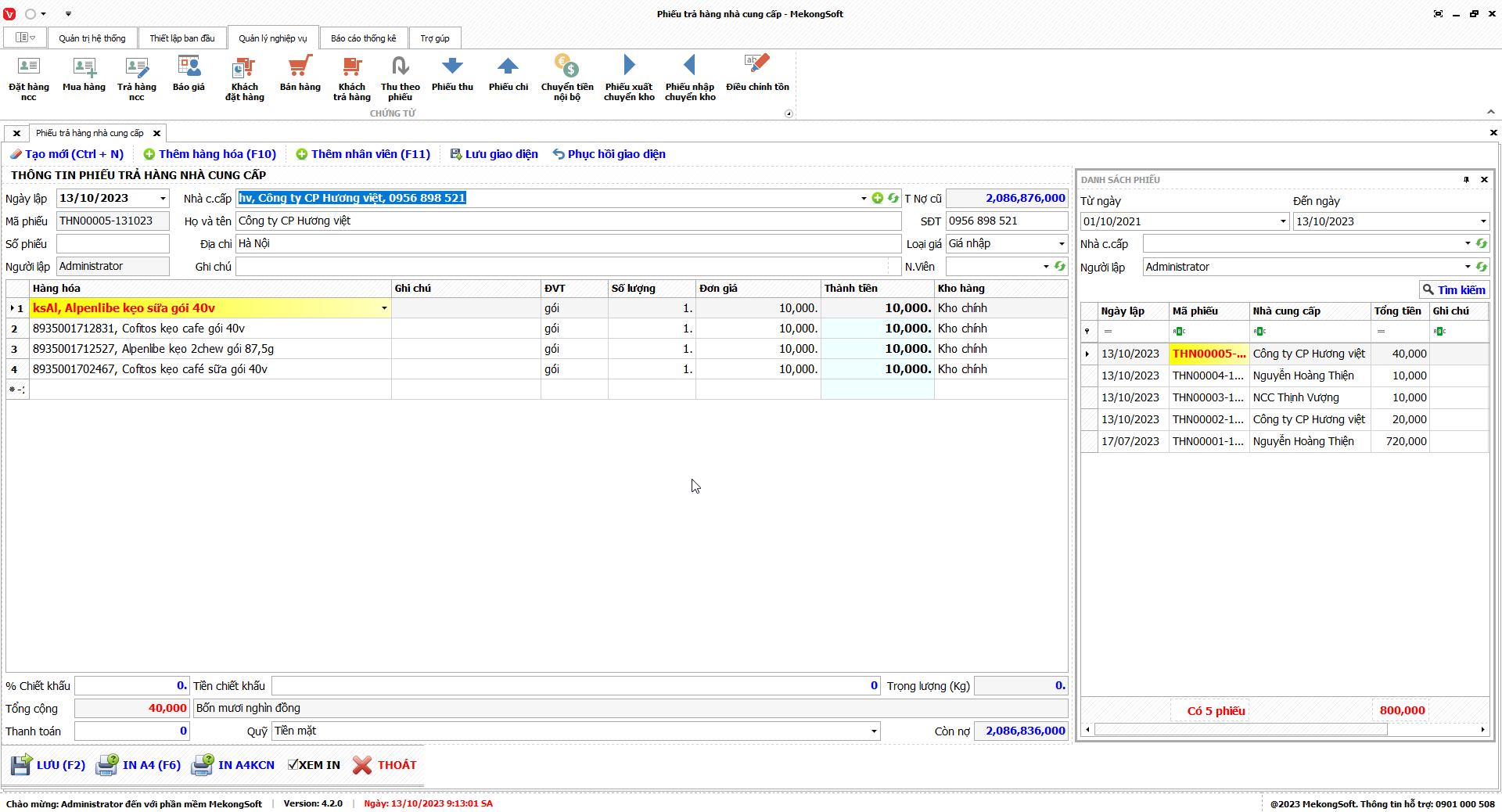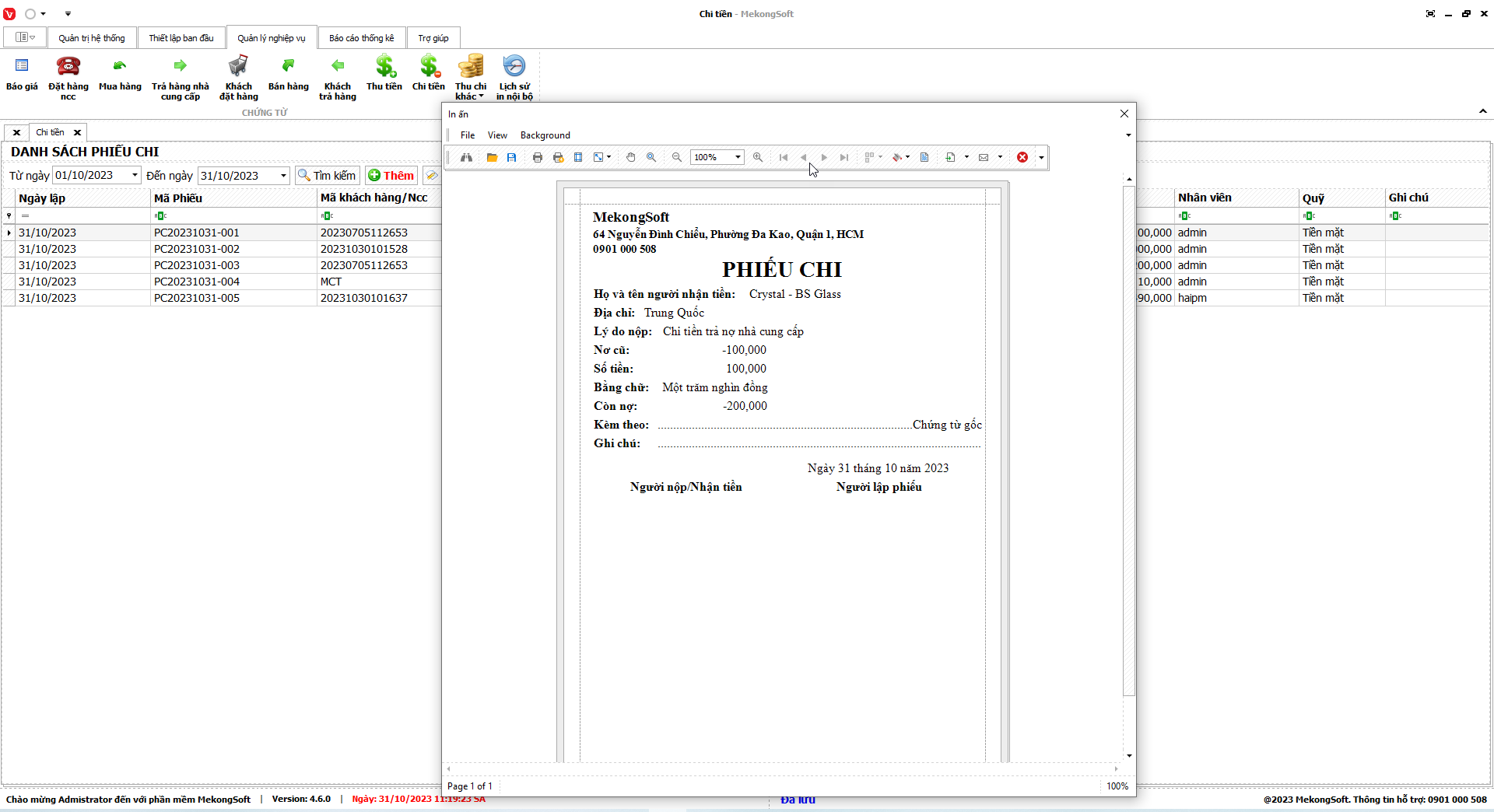 In thống kê xuất nhập tồn
