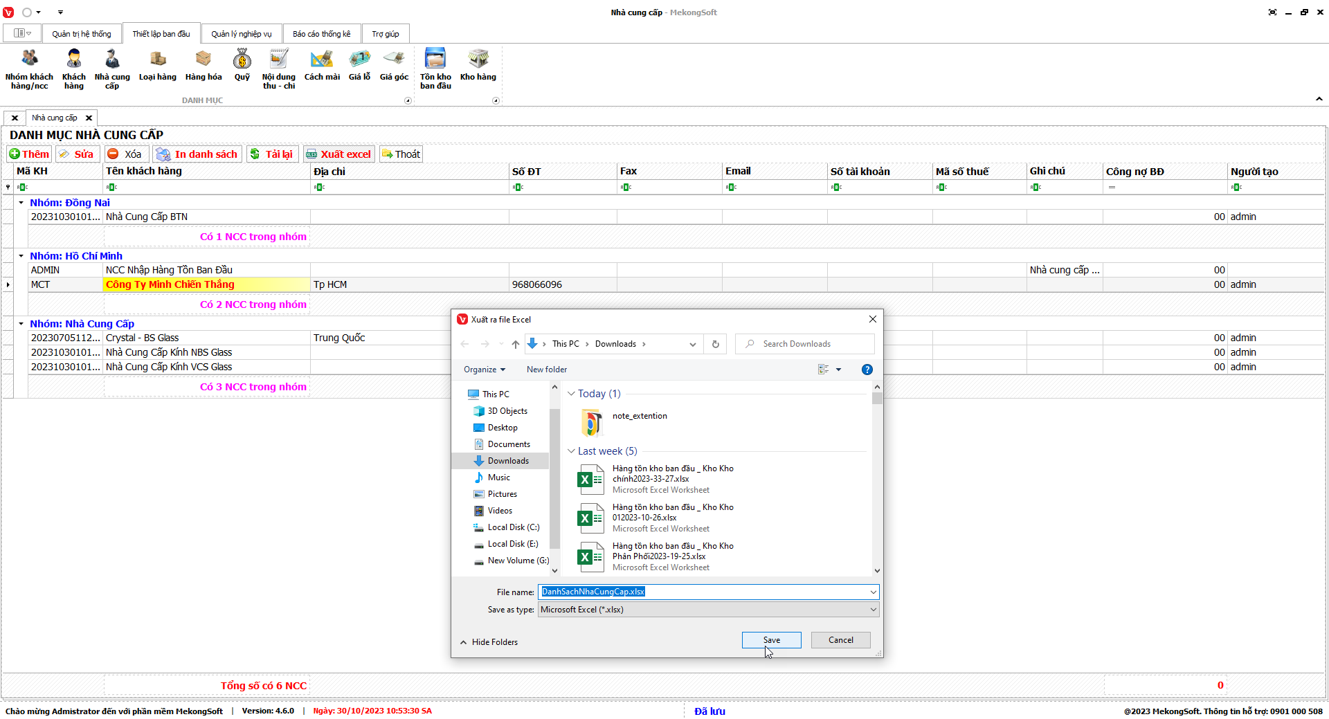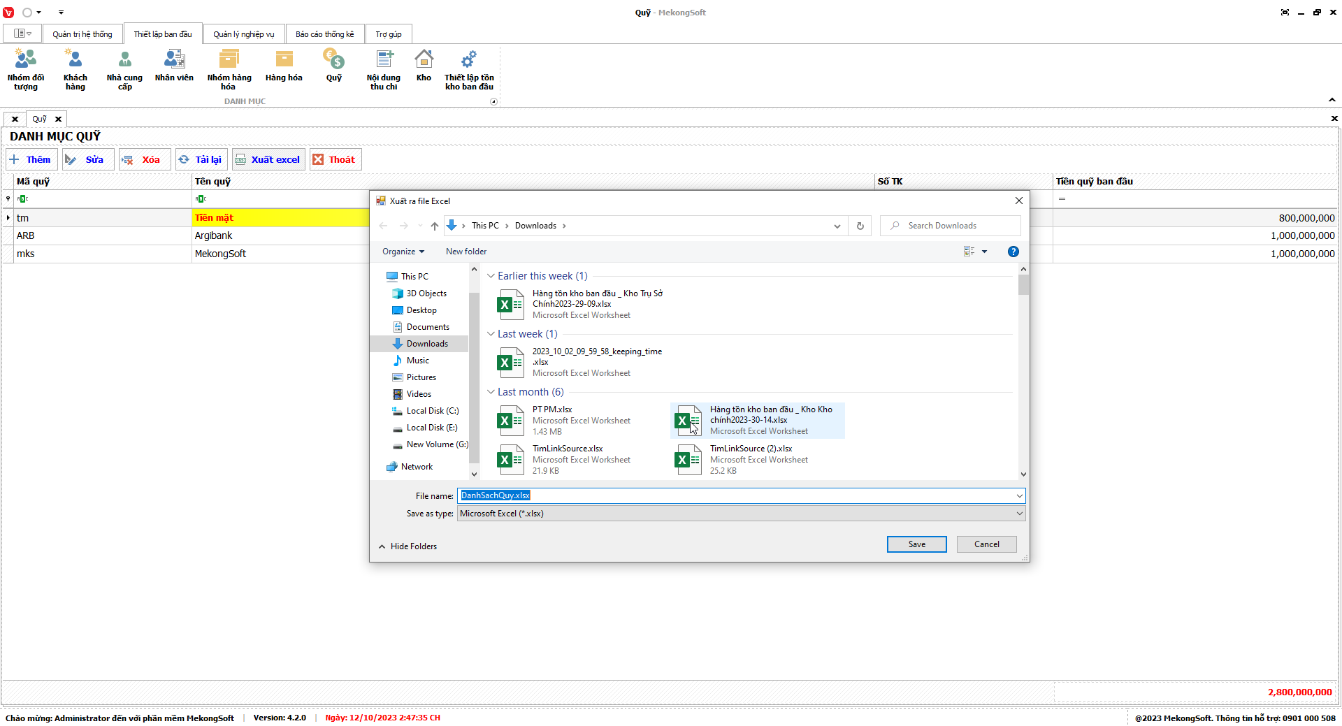 Phần mềm sẽ xuất thống kê hàng hóa tồn dưới định mức dưới dạng file excel.