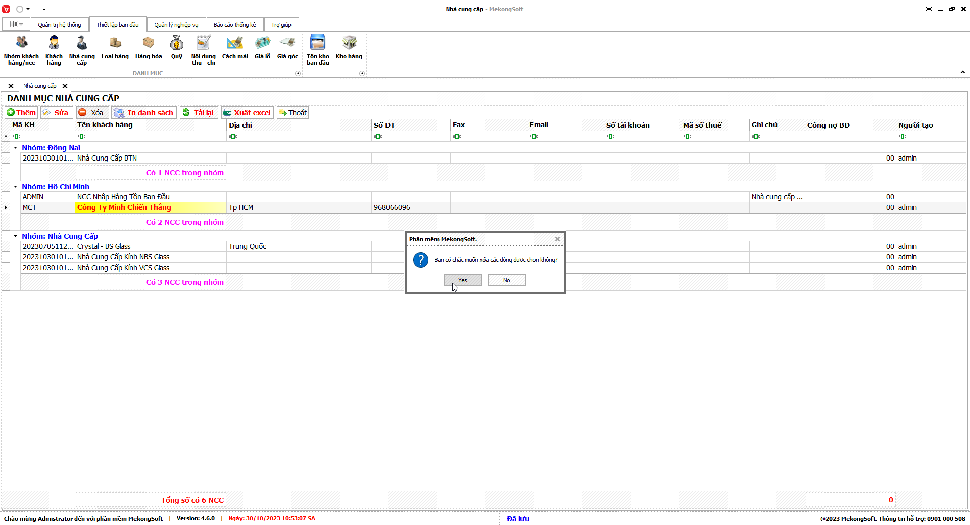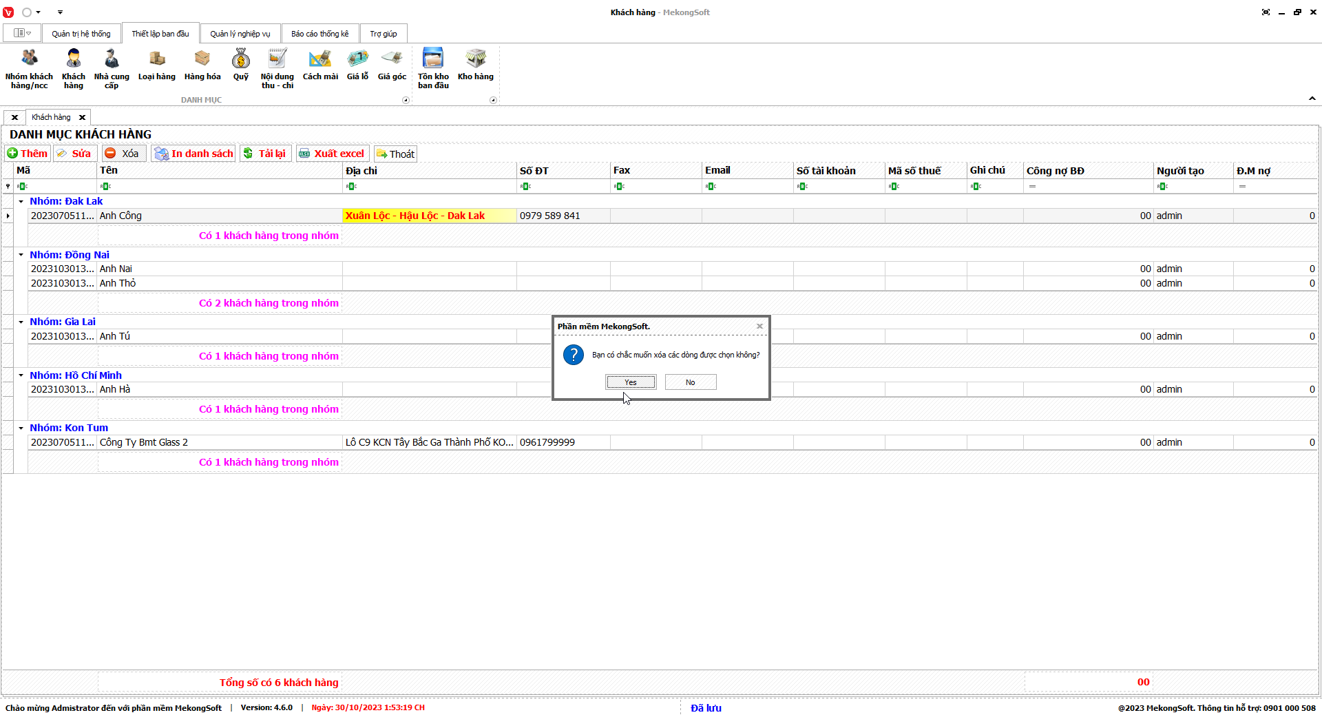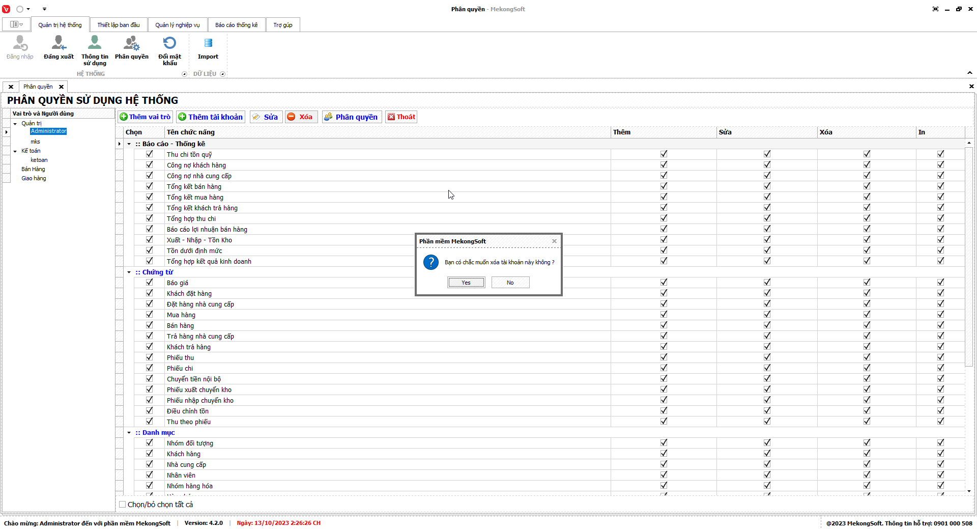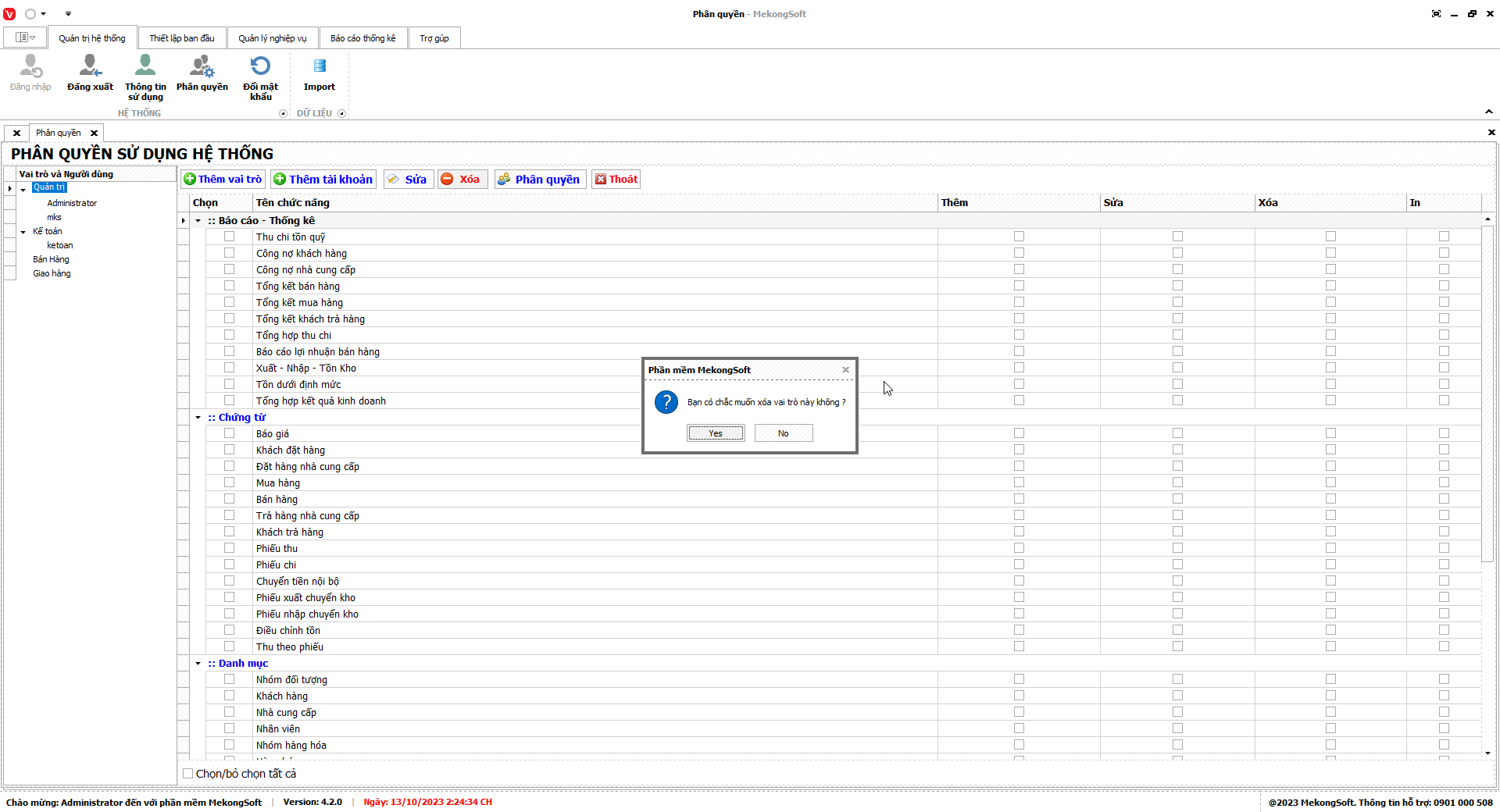 3.      Nhấp vào Yes để xác nhận xóa nhóm quyền