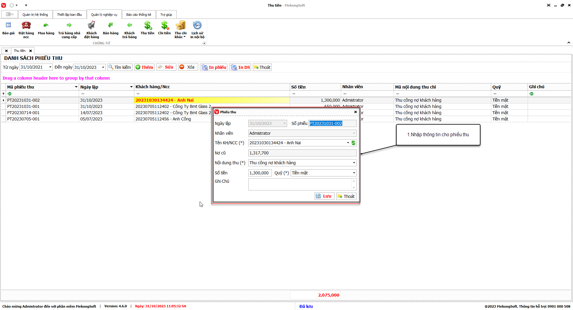 1.      Đăng nhập vào phần mềm.
