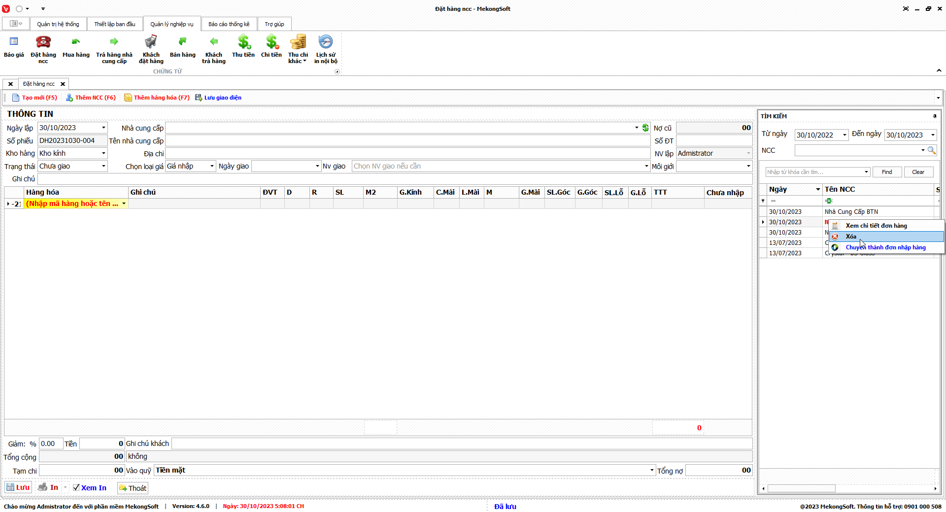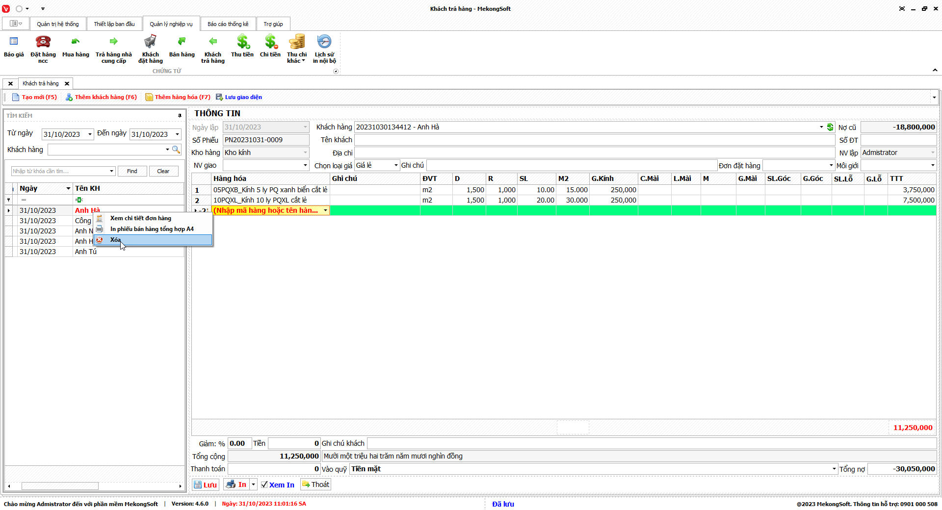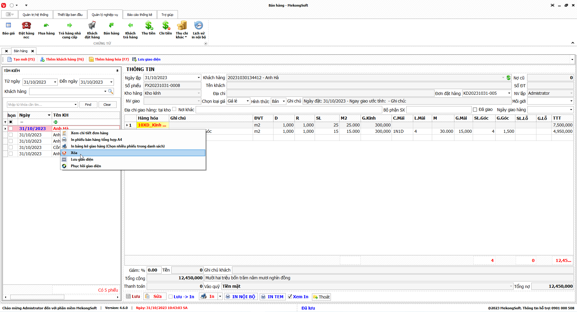 Để xóa nhóm quyền trên phần mềm quản lý kinh doanh kính xây dựng, bạn có thể thực hiện theo các bước sau: