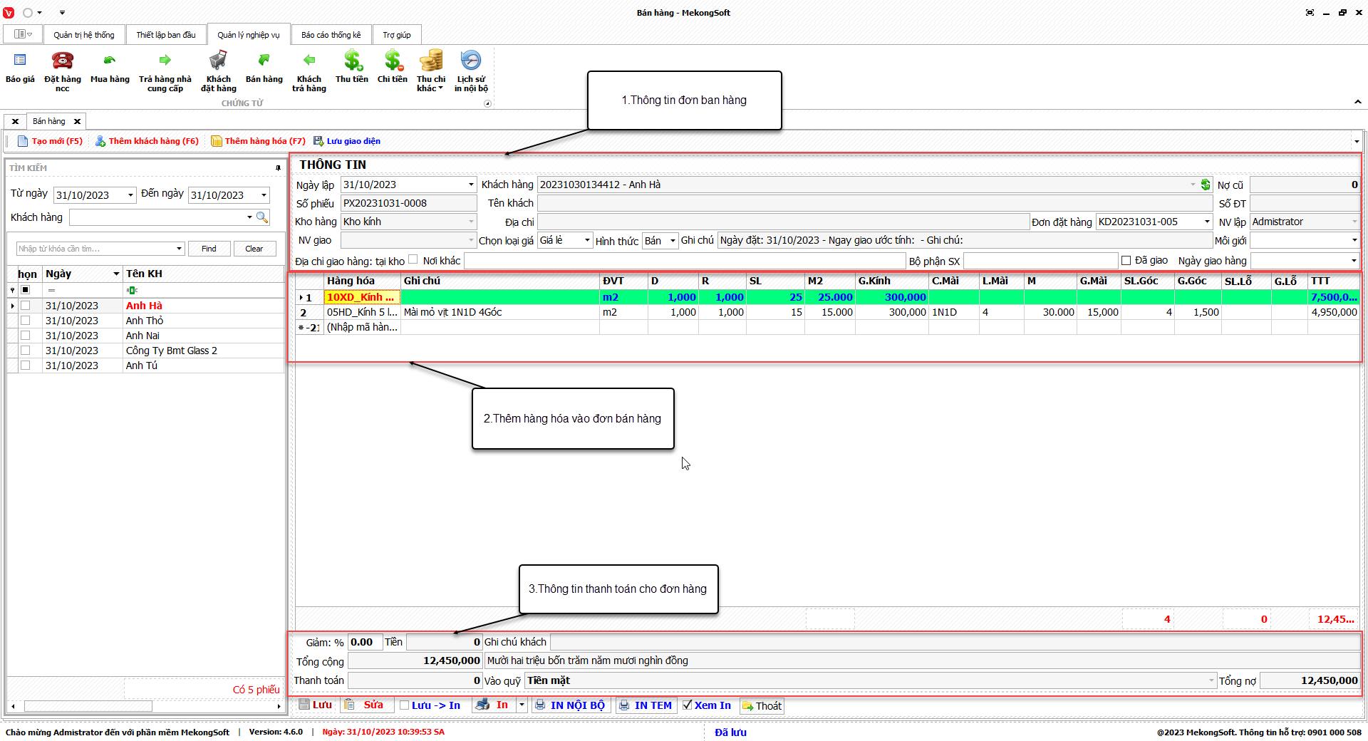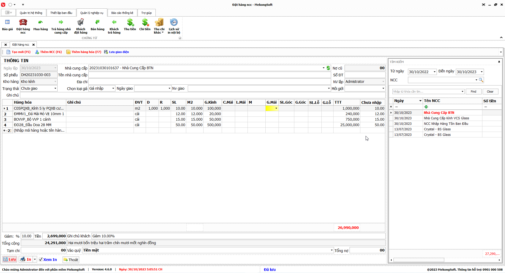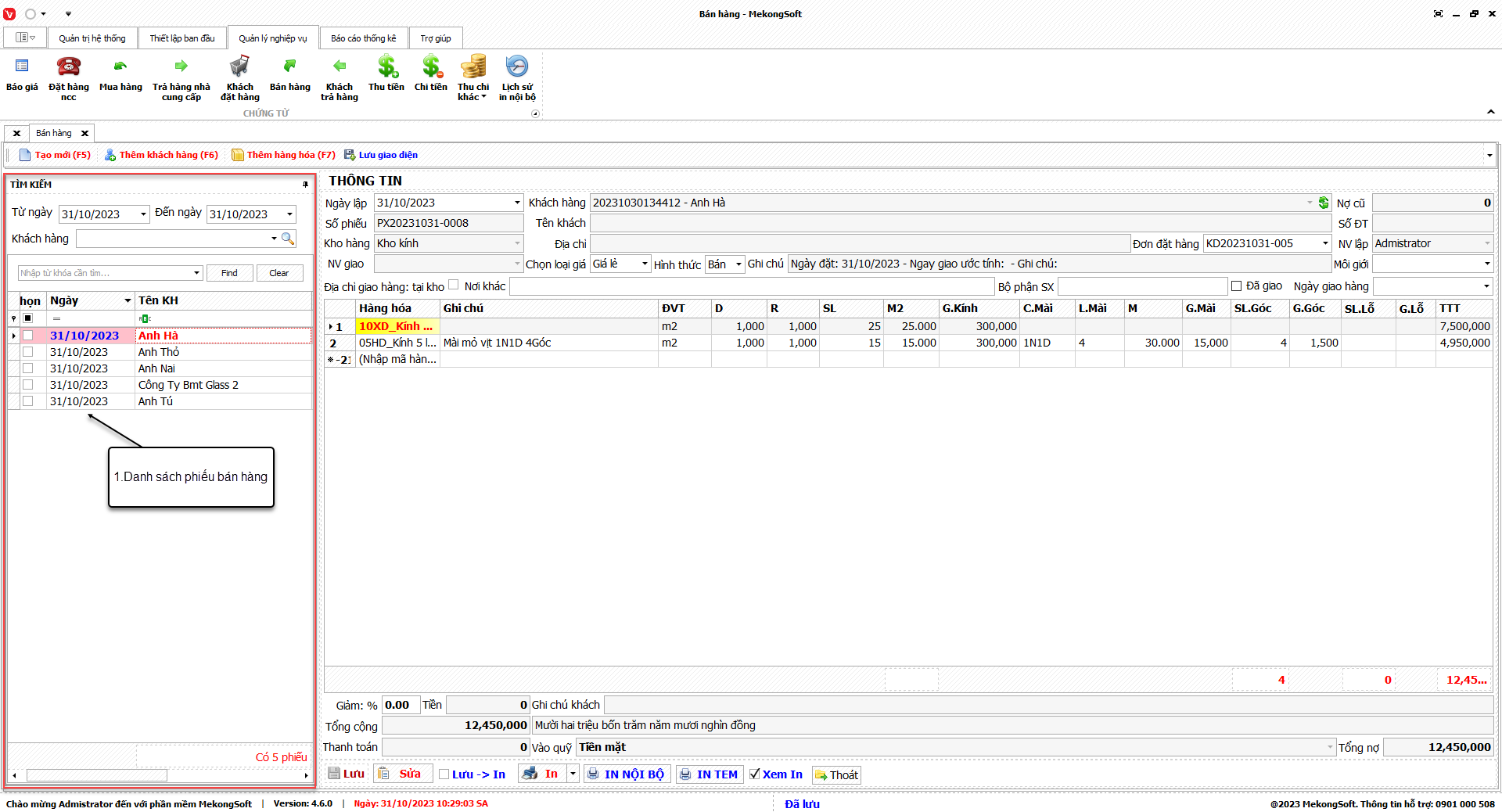Ngoài ra, chức năng này còn có thể kết nối với các phân hệ khác của phần mềm quản lý kinh doanh kính xây dựng để cung cấp các thông tin tổng hợp, giúp người quản lý đưa ra các quyết định kinh doanh chính xác hơn.