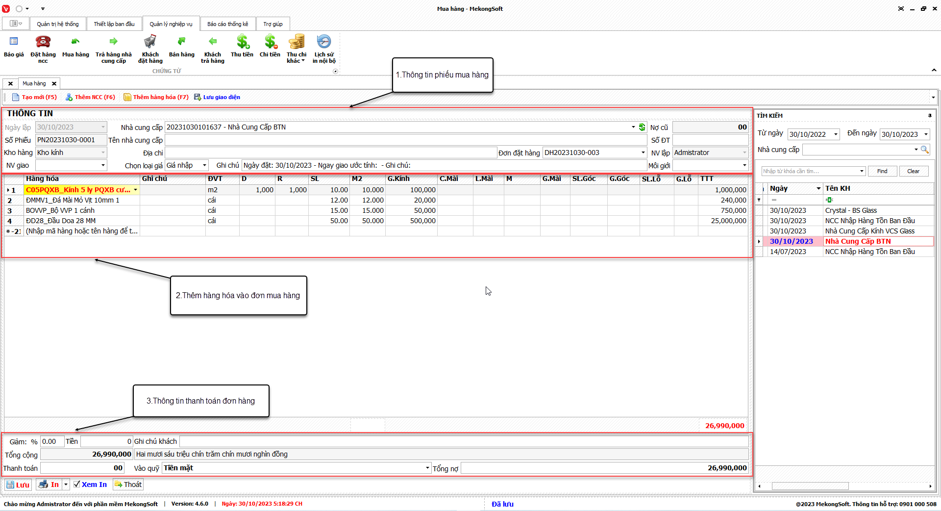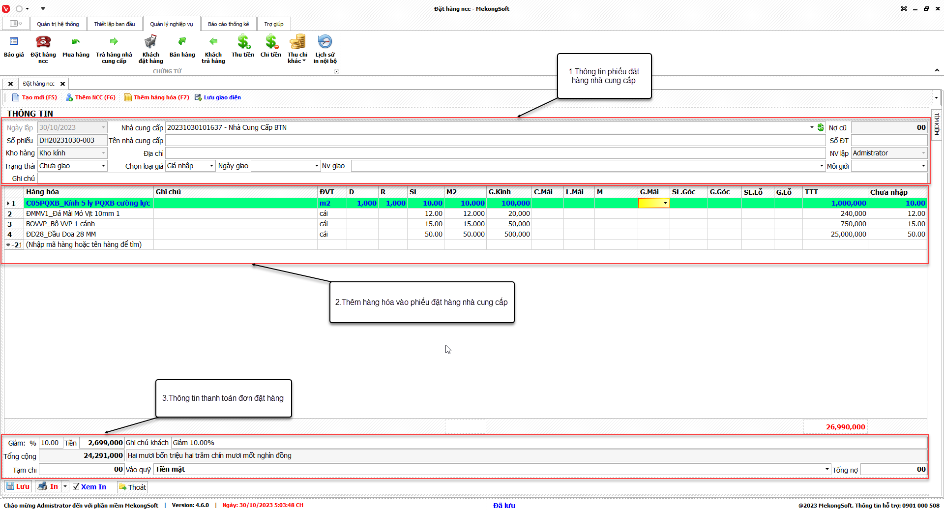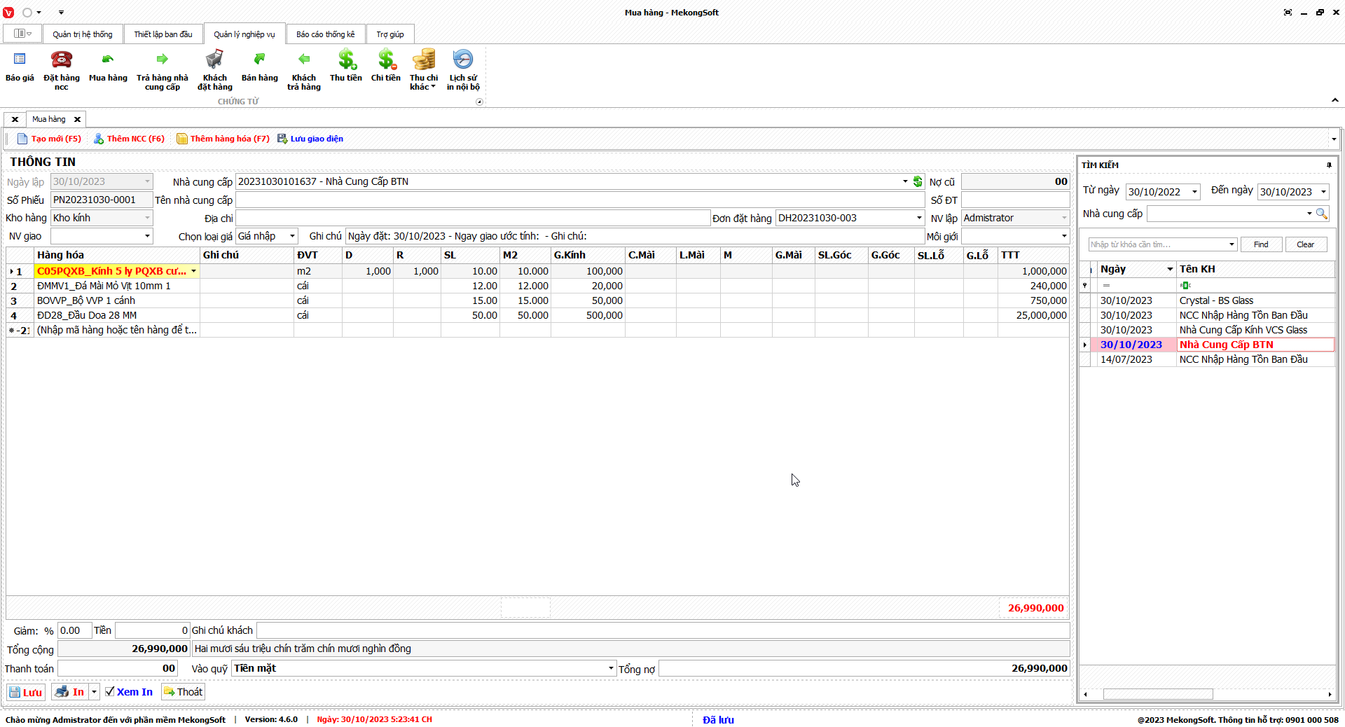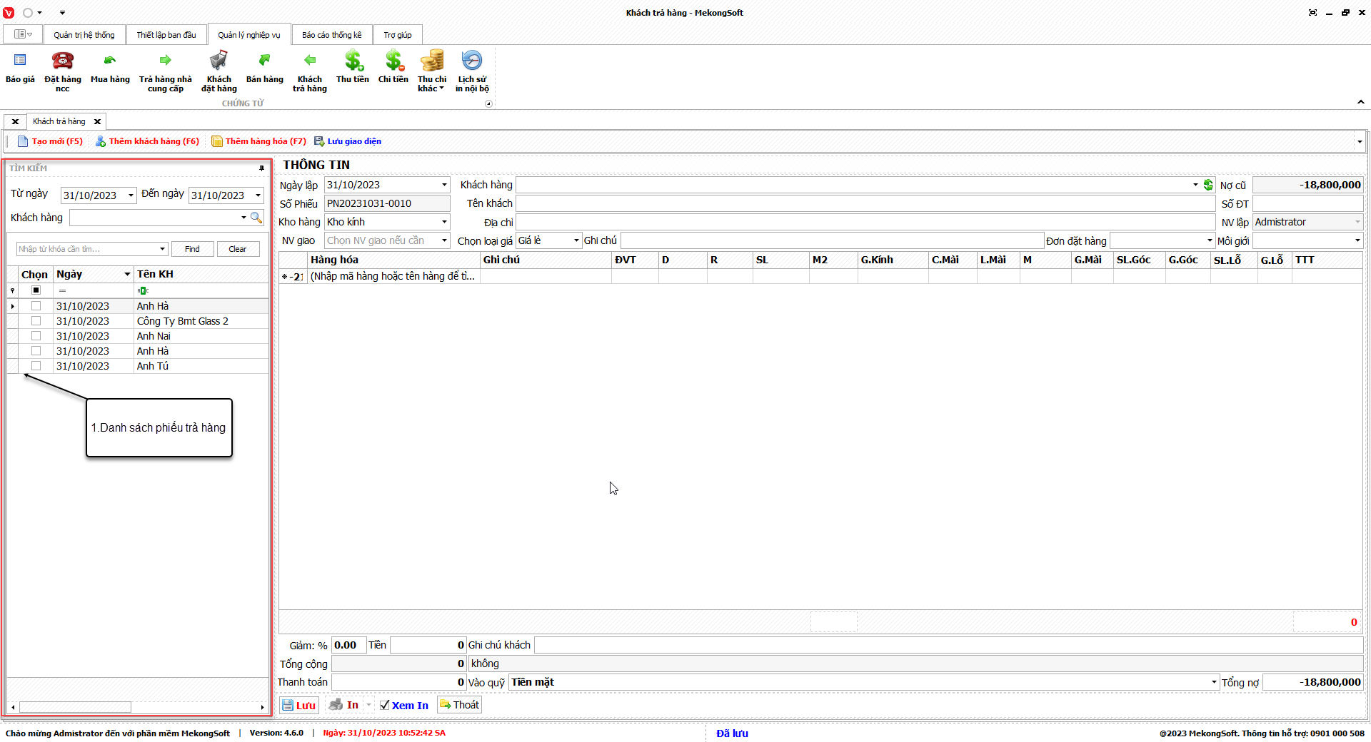 Ngoài ra, chức năng này còn có thể kết nối với các phân hệ khác của phần mềm quản lý kinh doanh kính xây dựng để cung cấp các thông tin tổng hợp, giúp người quản lý đưa ra các quyết định kinh doanh chính xác hơn.