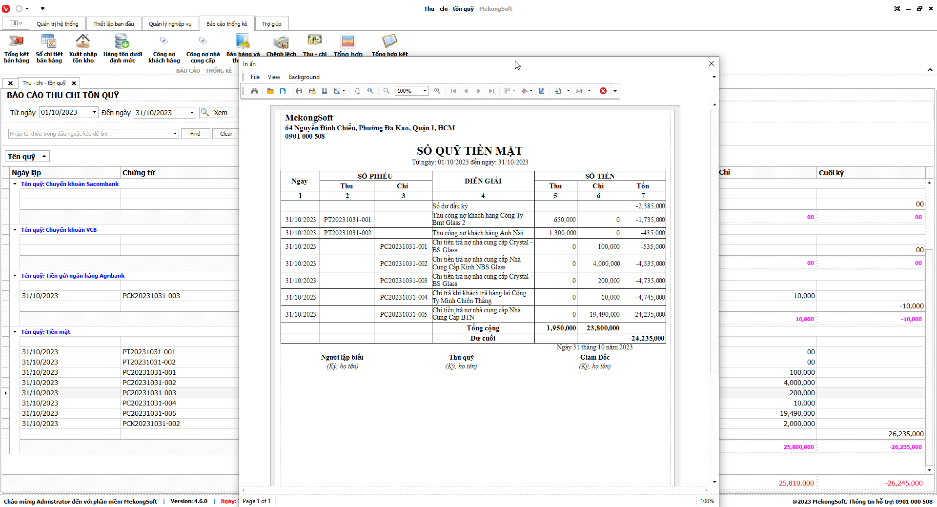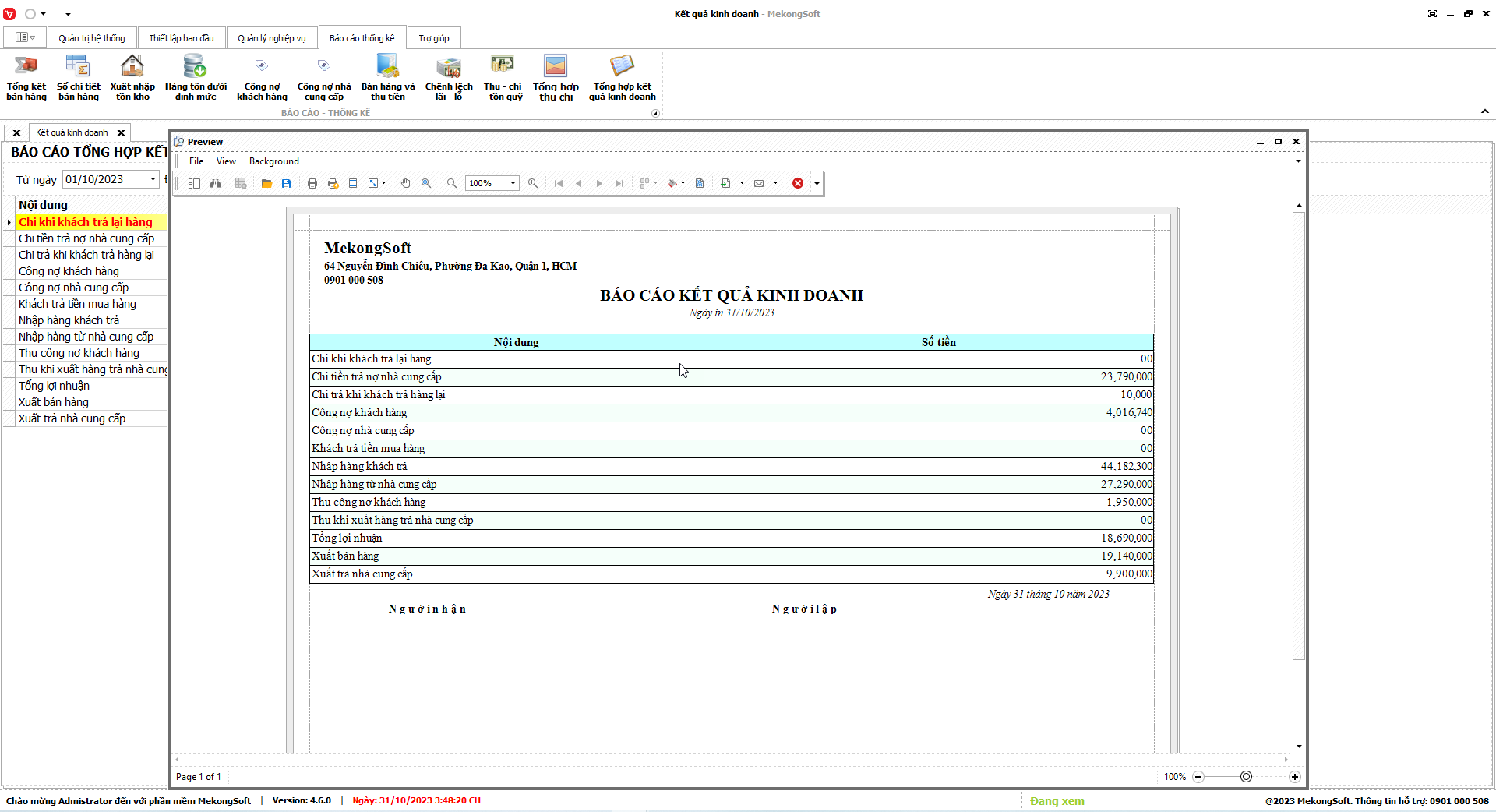 §  In báo cáo tổng hợp kết quả kinh doanh