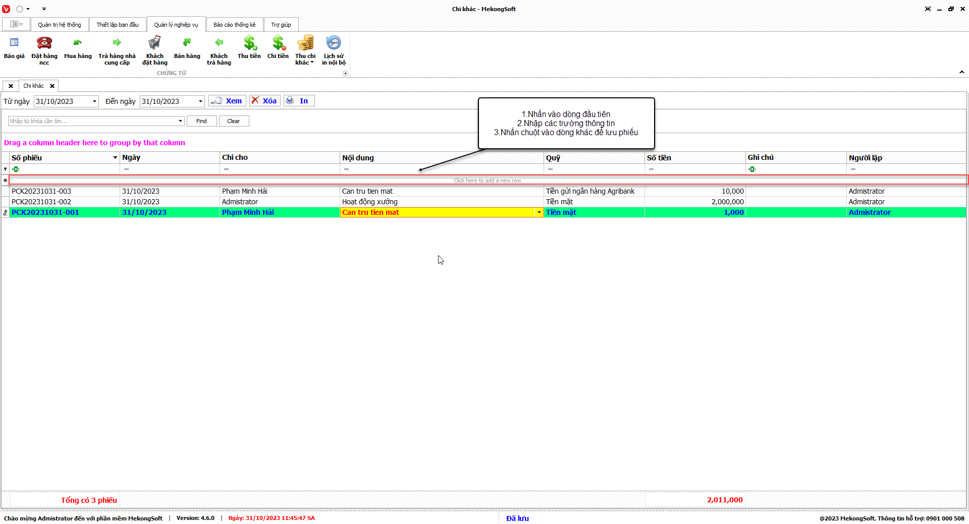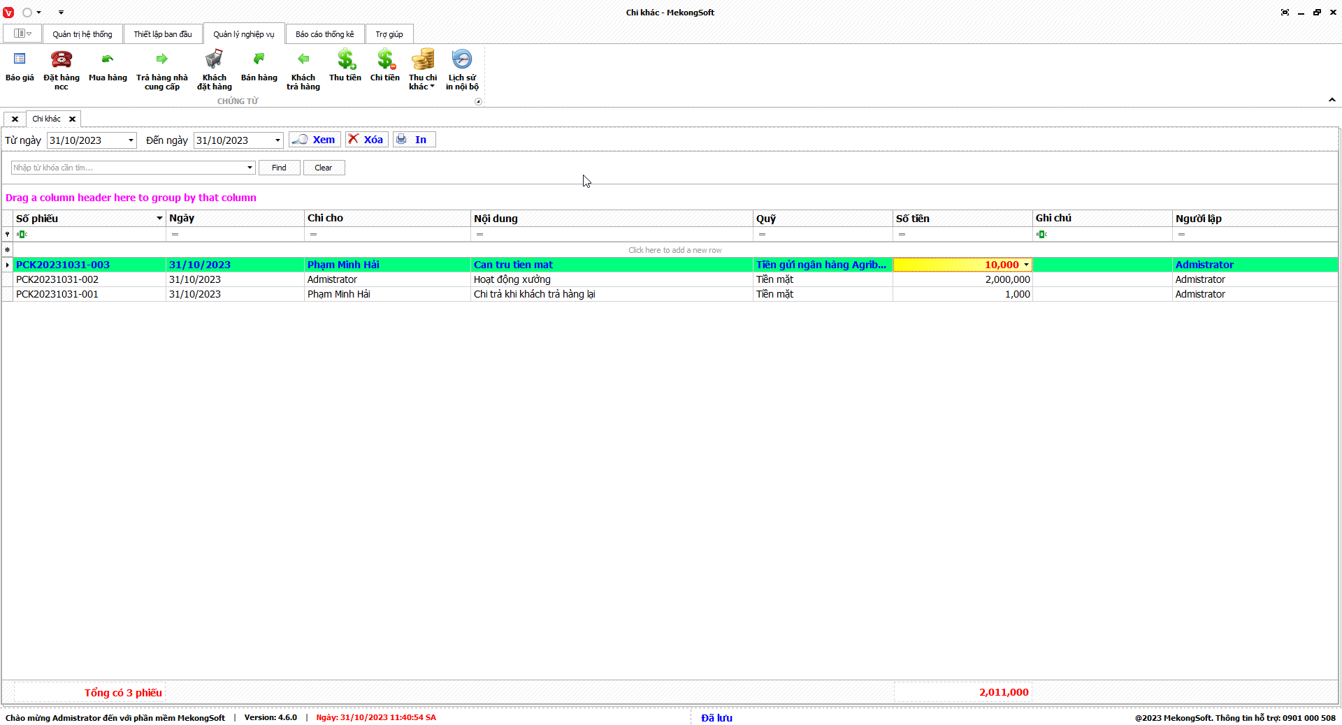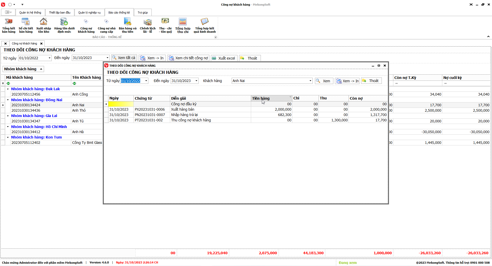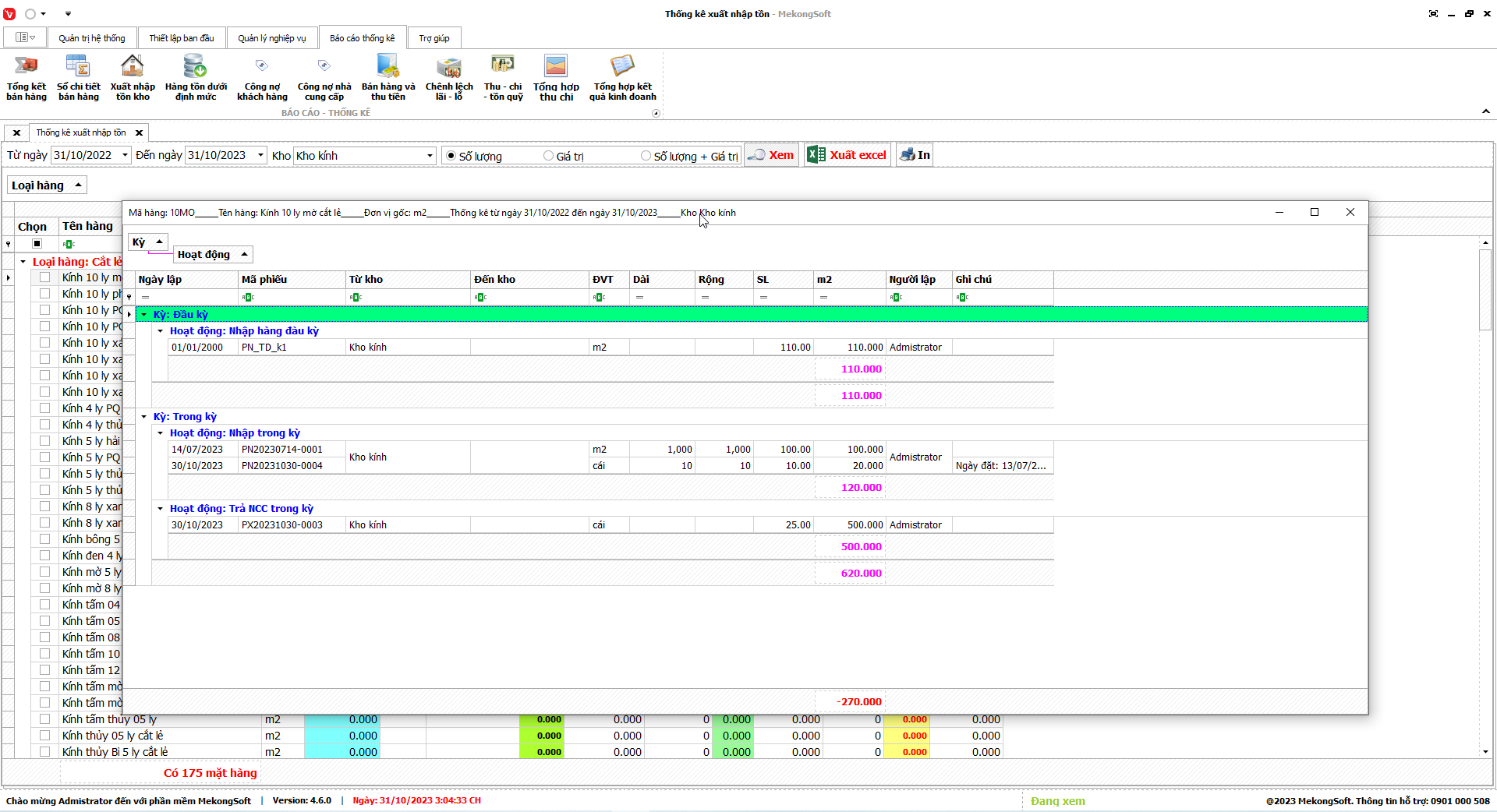 Thao tác này sẽ mở ra chi tiết thống kê xuất nhập tồn
