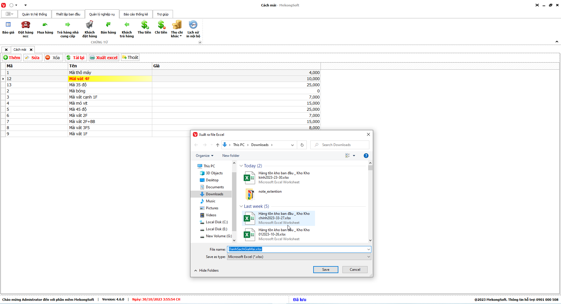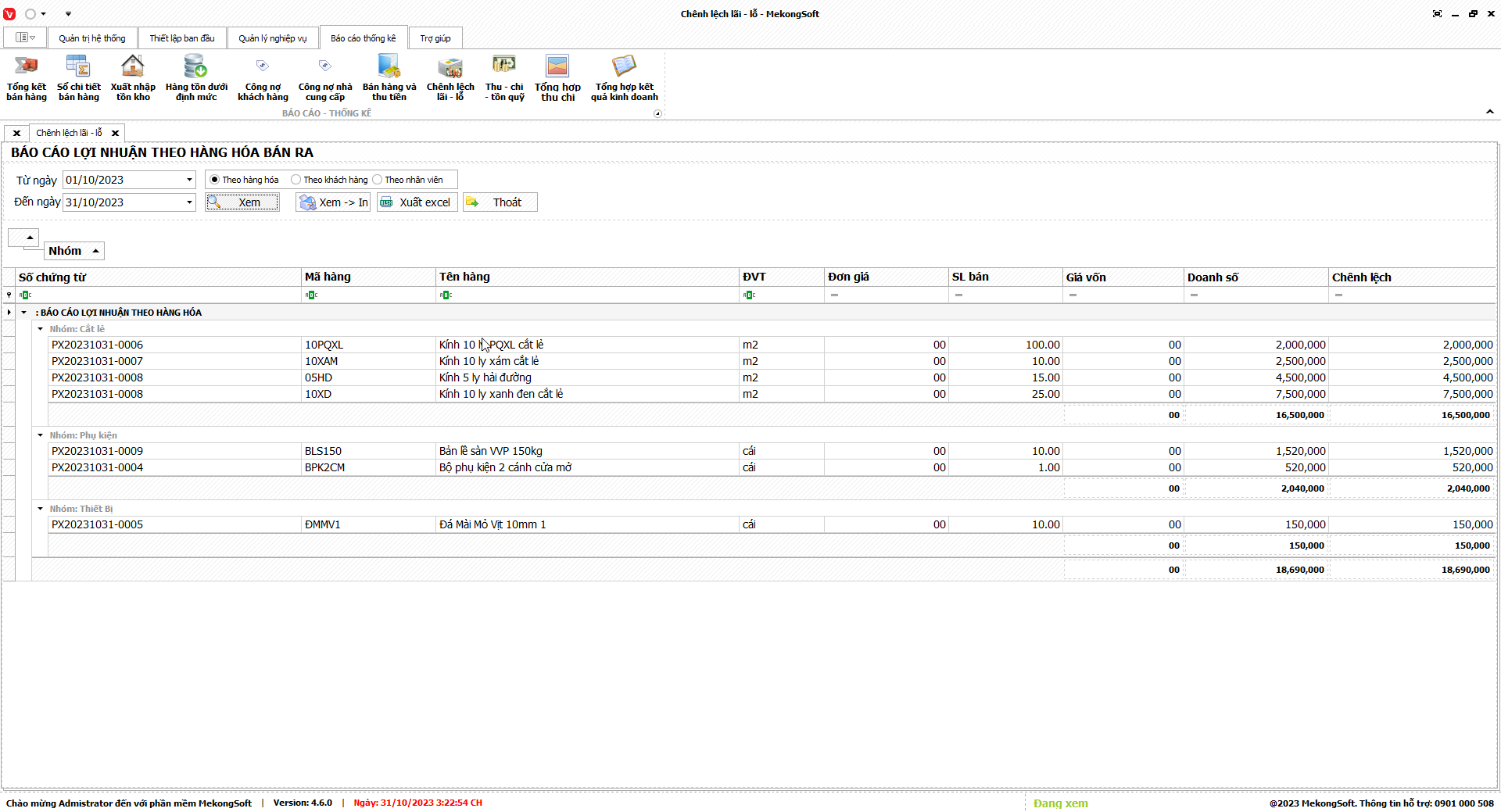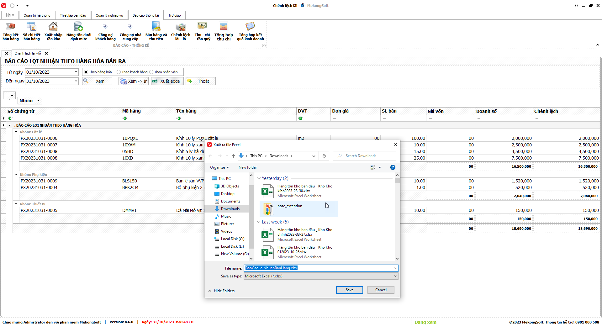 Phần mềm sẽ xuất báo cáo lợi nhuận bán hàng dưới dạng file excel.