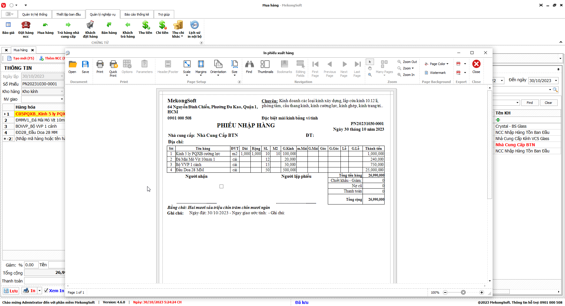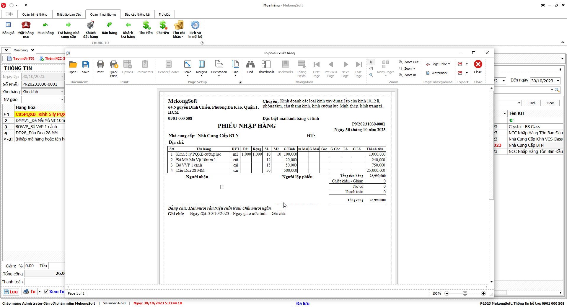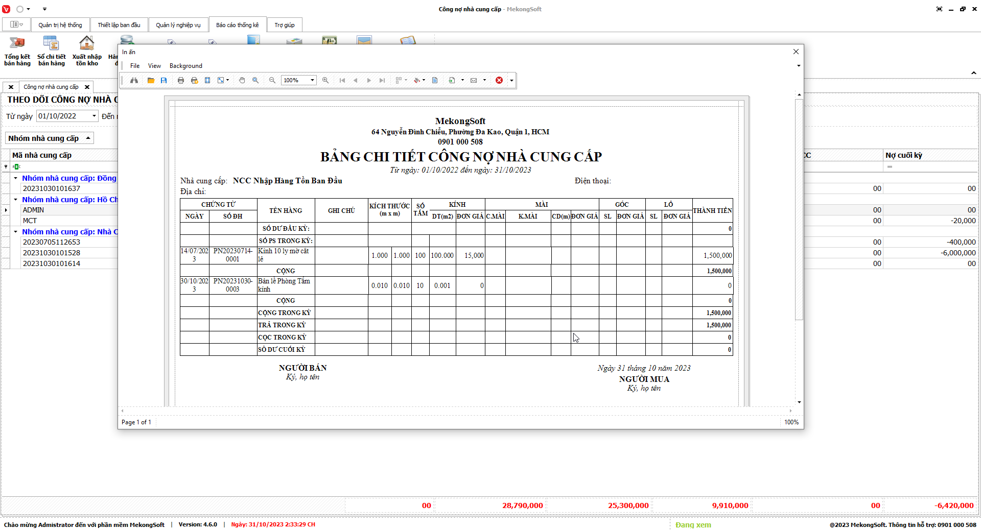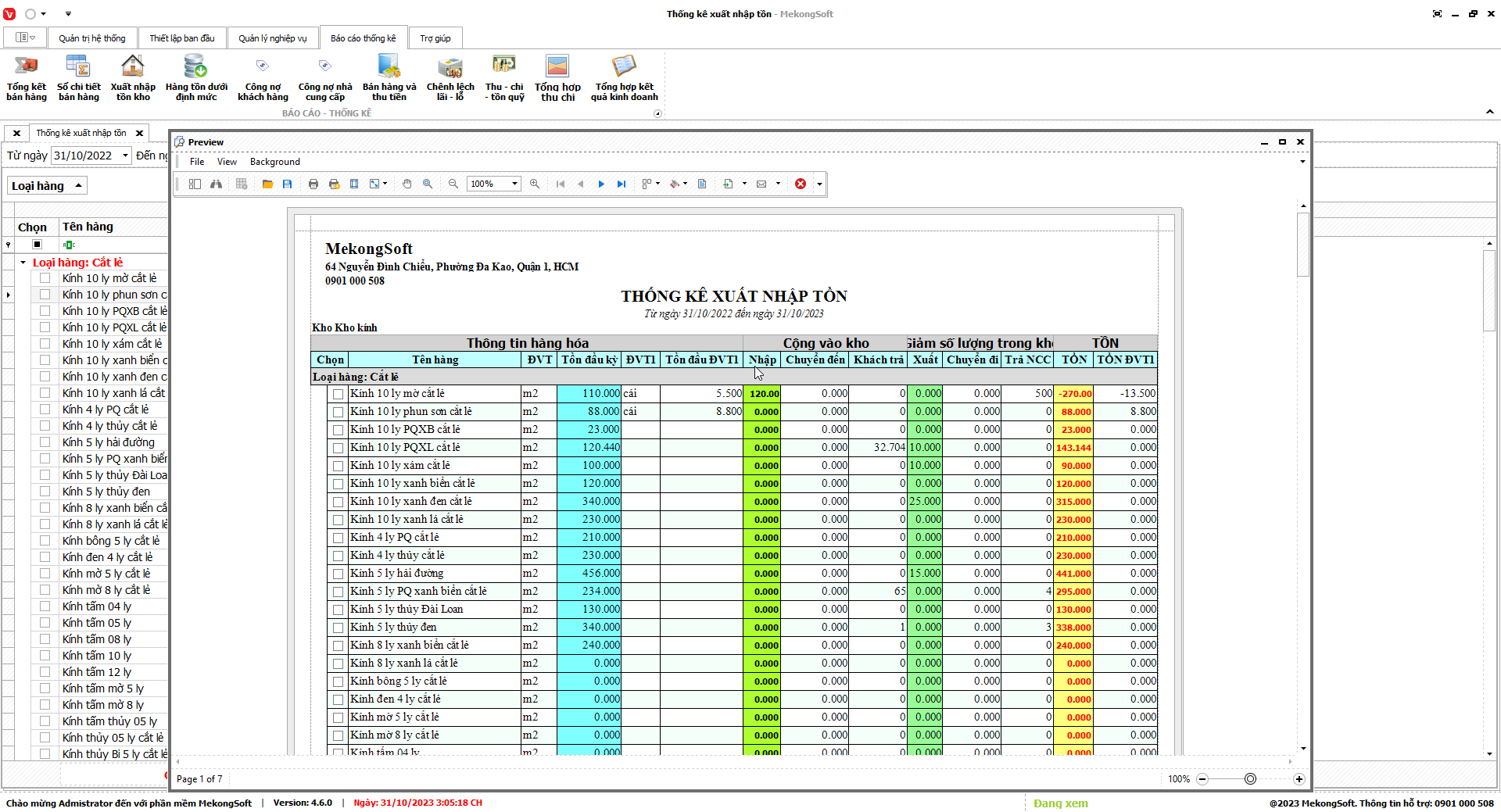 Để in thống kê xuất nhập tồn trên phần mềm quản lý kinh doanh kính xây dựng, bạn có thể thực hiện theo các bước sau: