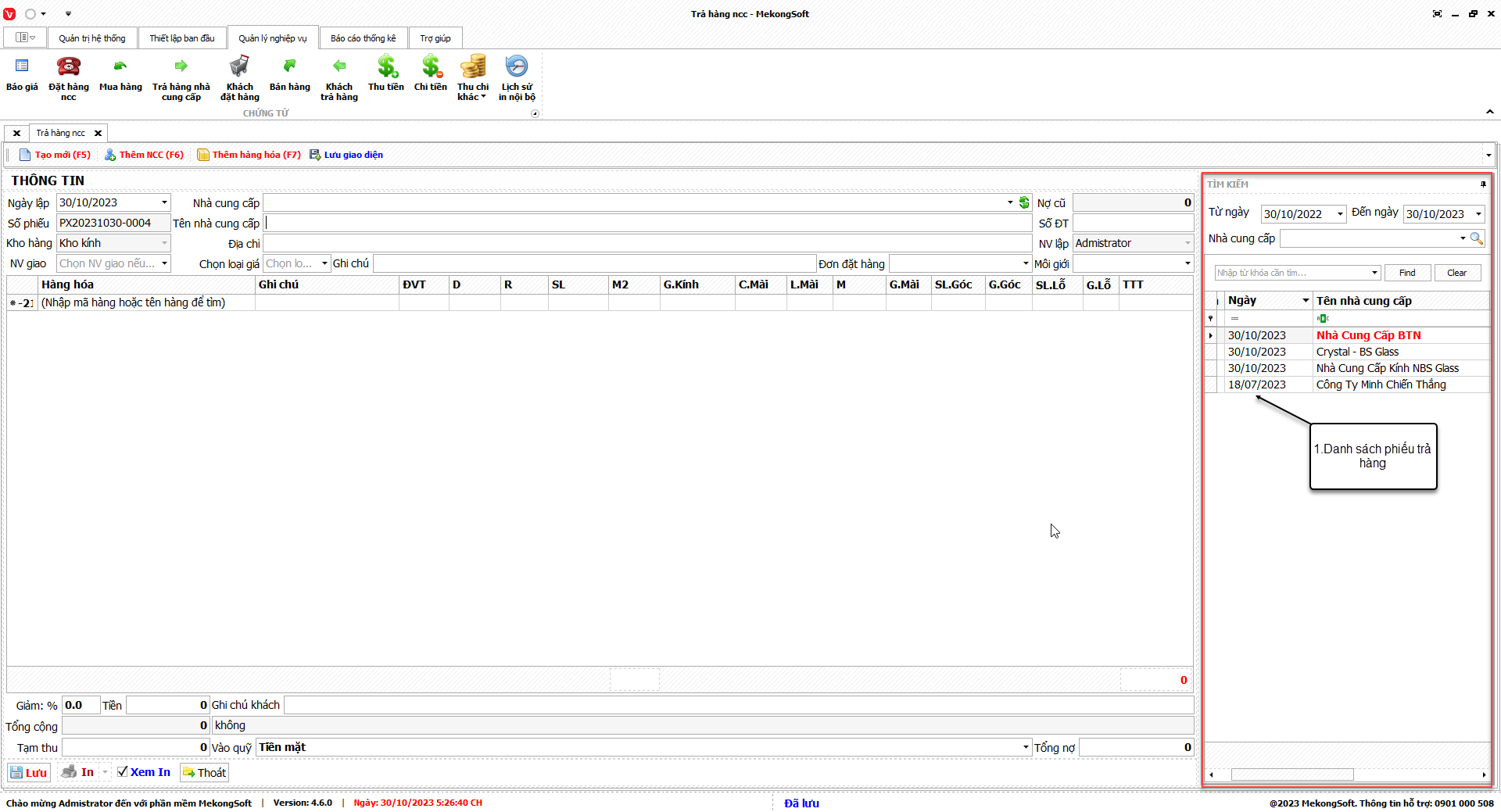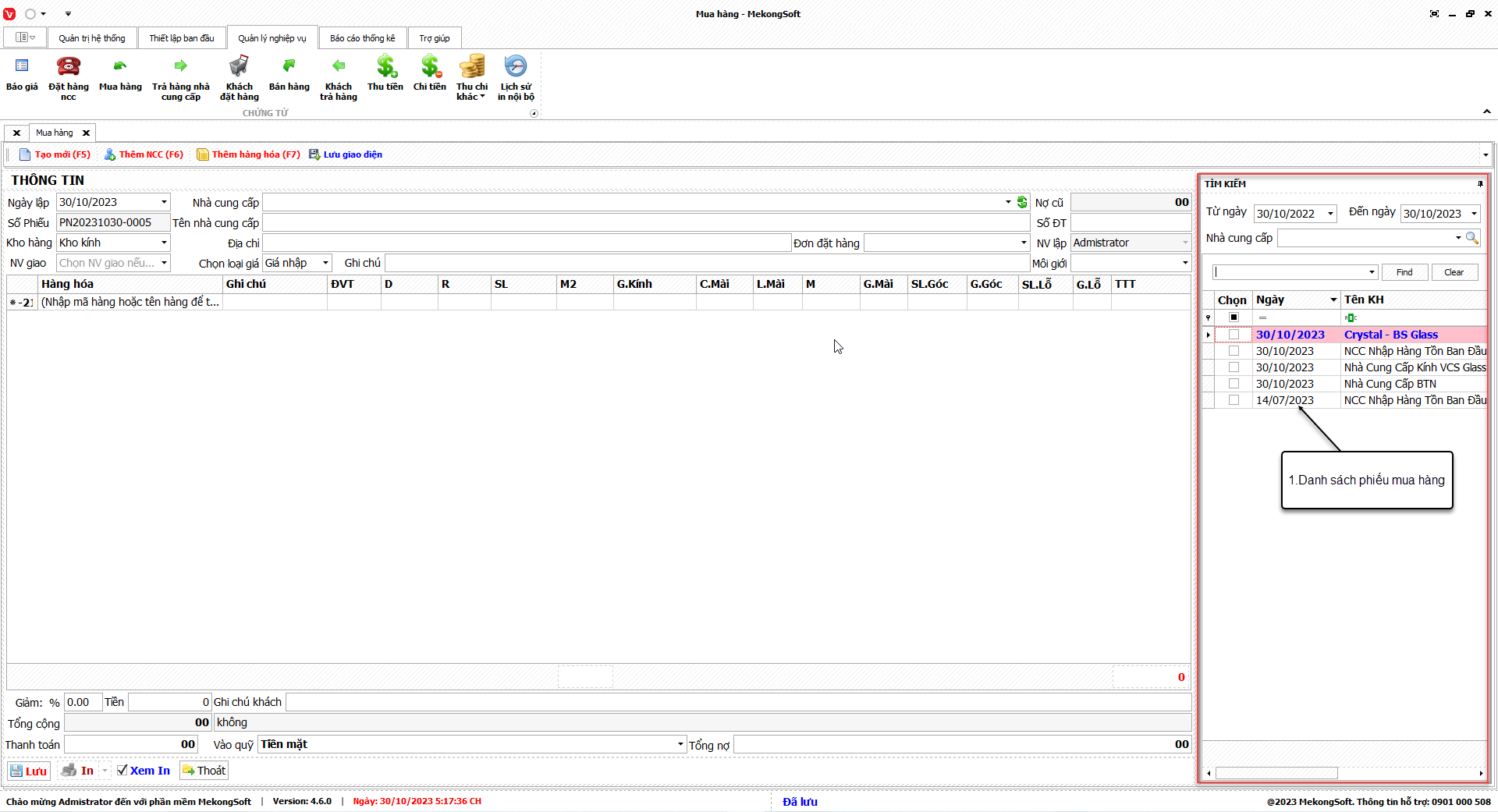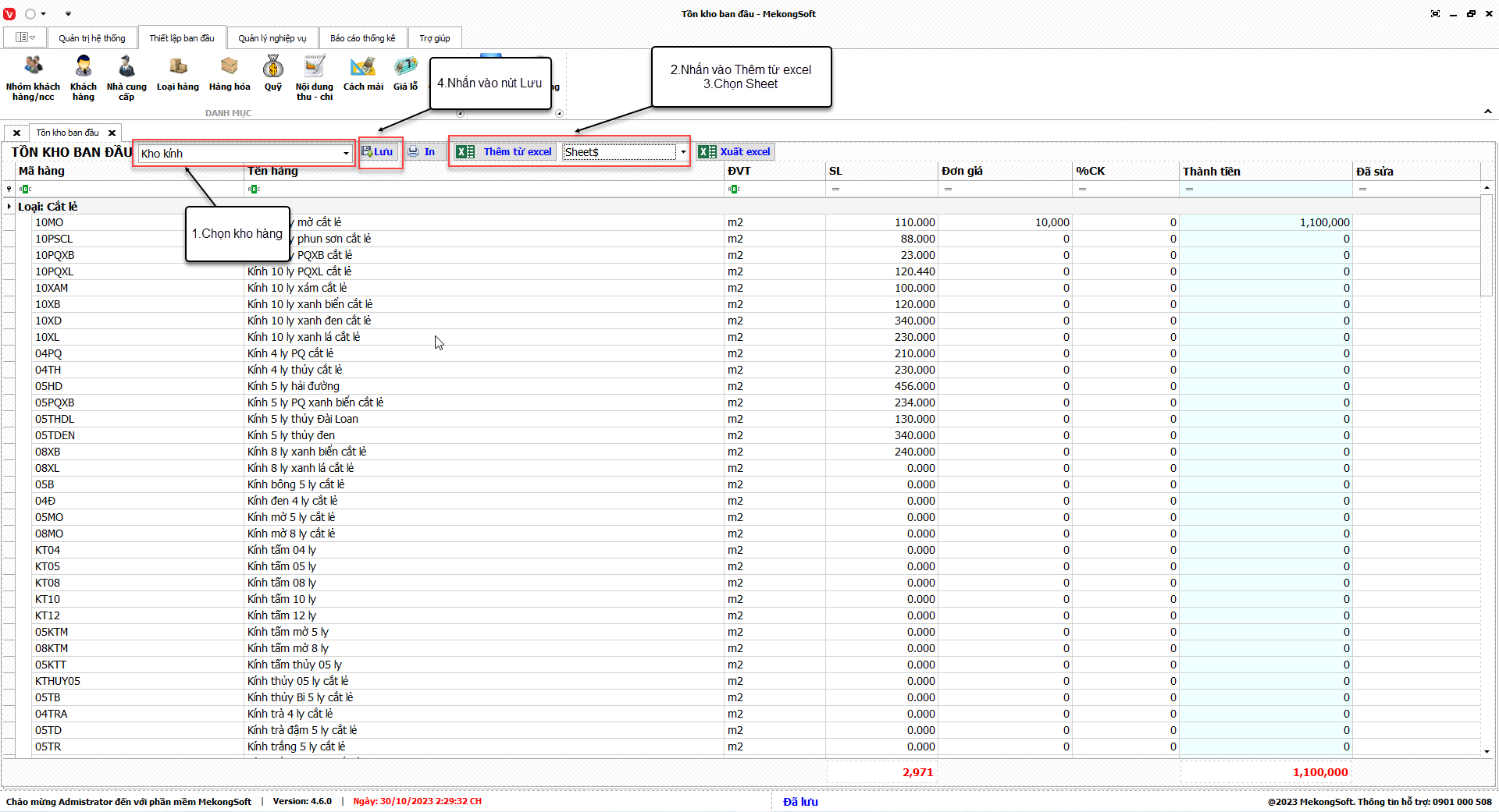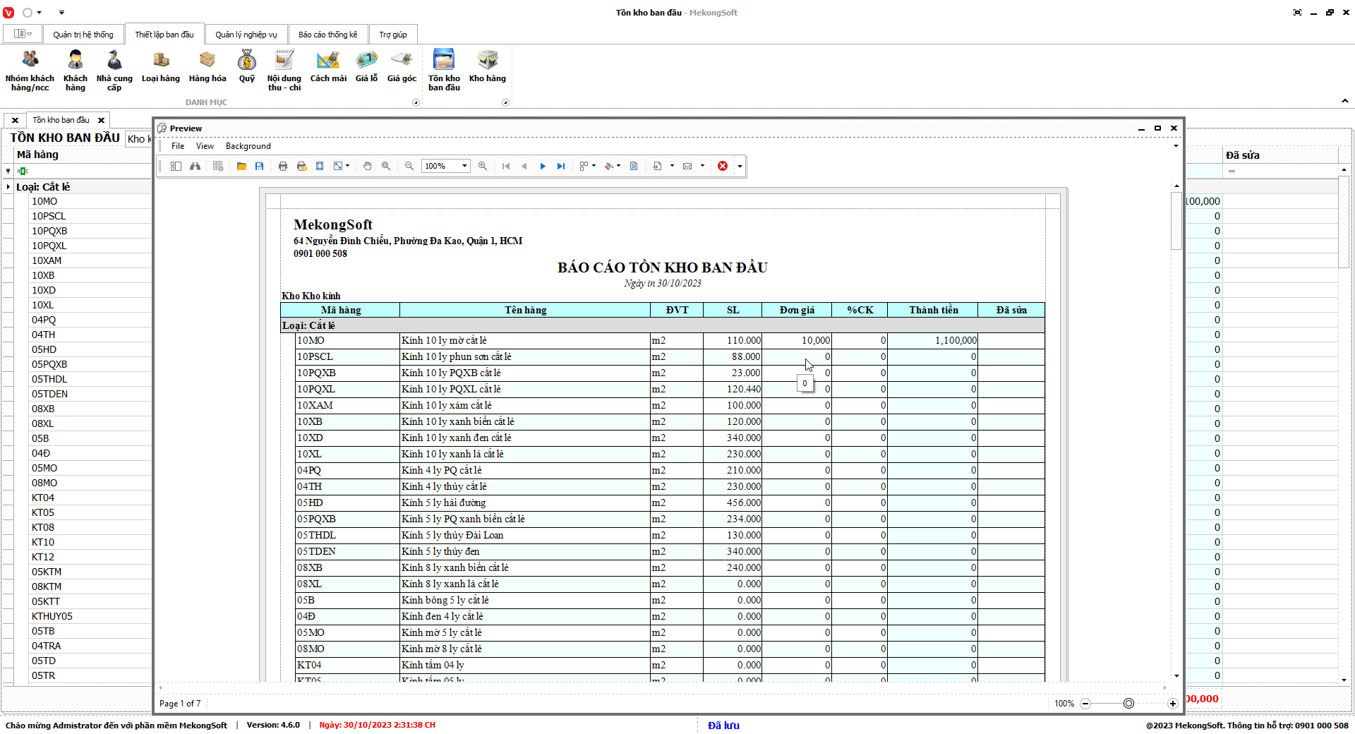 Chức năng thống kê nhập xuất tồn kho của phần mềm quản lý kinh doanh kính xây dựng là một trong những chức năng quan trọng nhất, giúp người quản lý nắm bắt được tình hình hàng tồn kho trong doanh nghiệp.