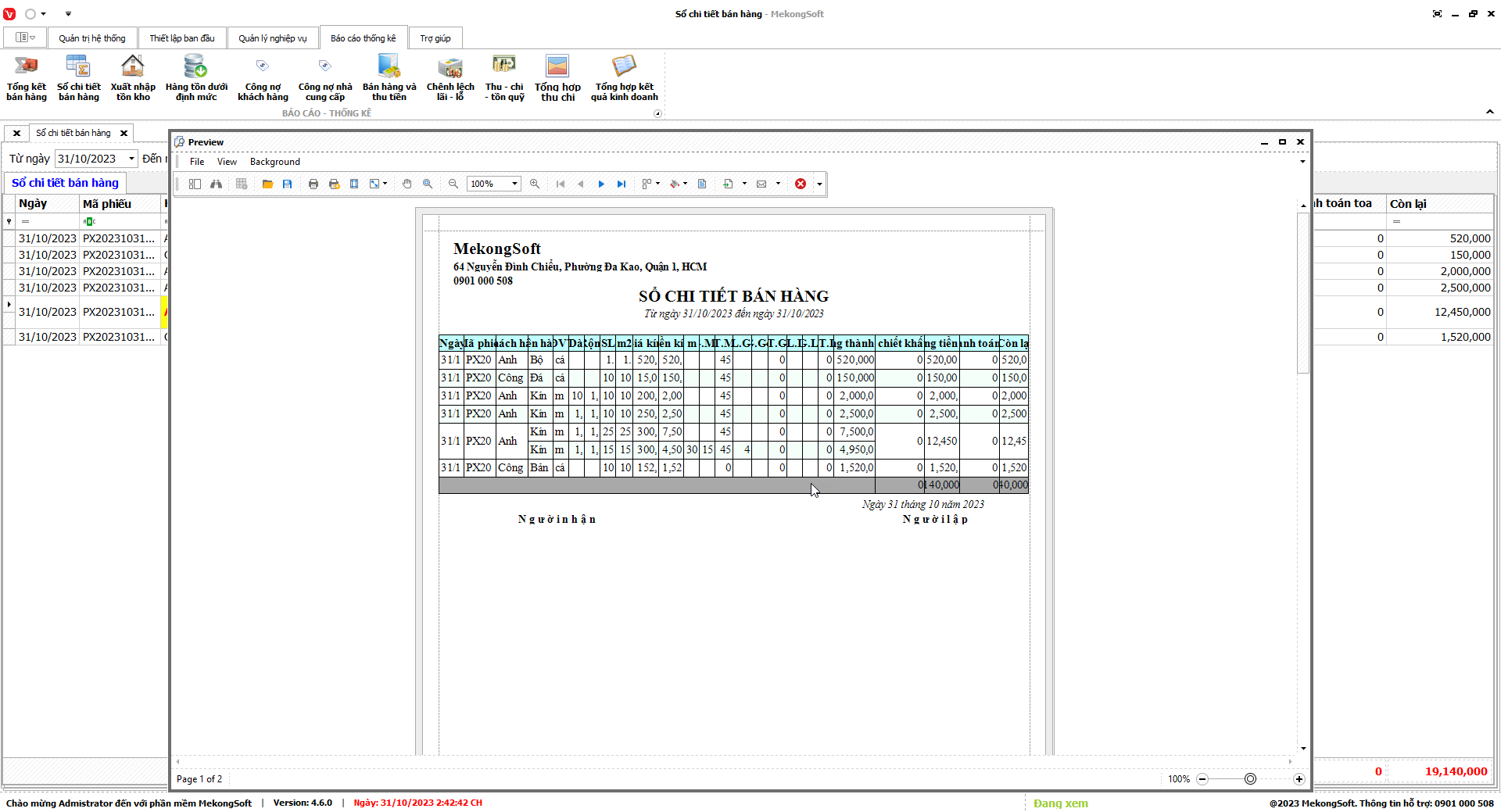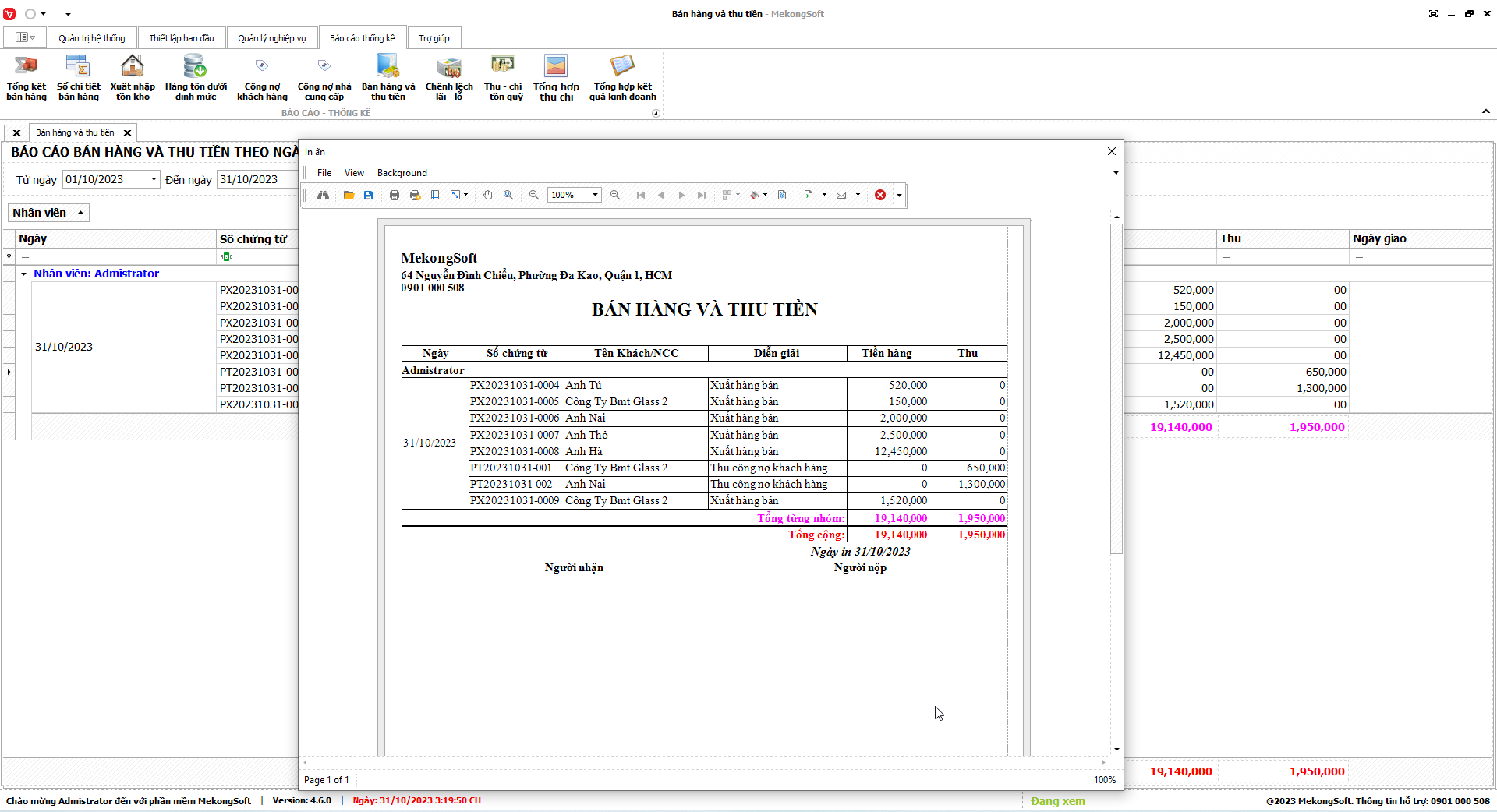 2.      Nhấp vào Print để in thống kê xuất nhập tồn