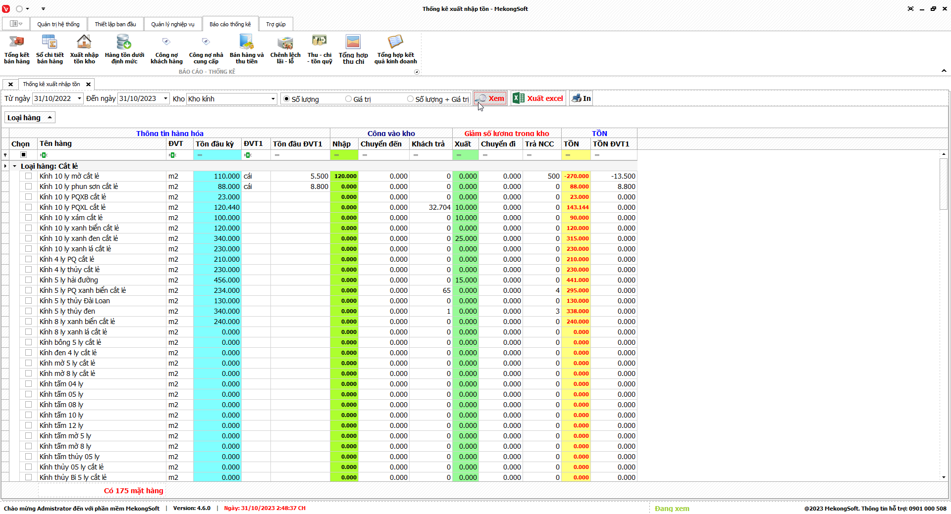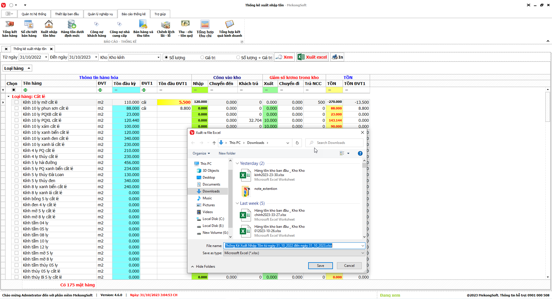 Để xuất excel thống kê xuất nhập tồn trên phần mềm quản lý kinh doanh kính xây dựng, bạn có thể thực hiện theo các bước sau: