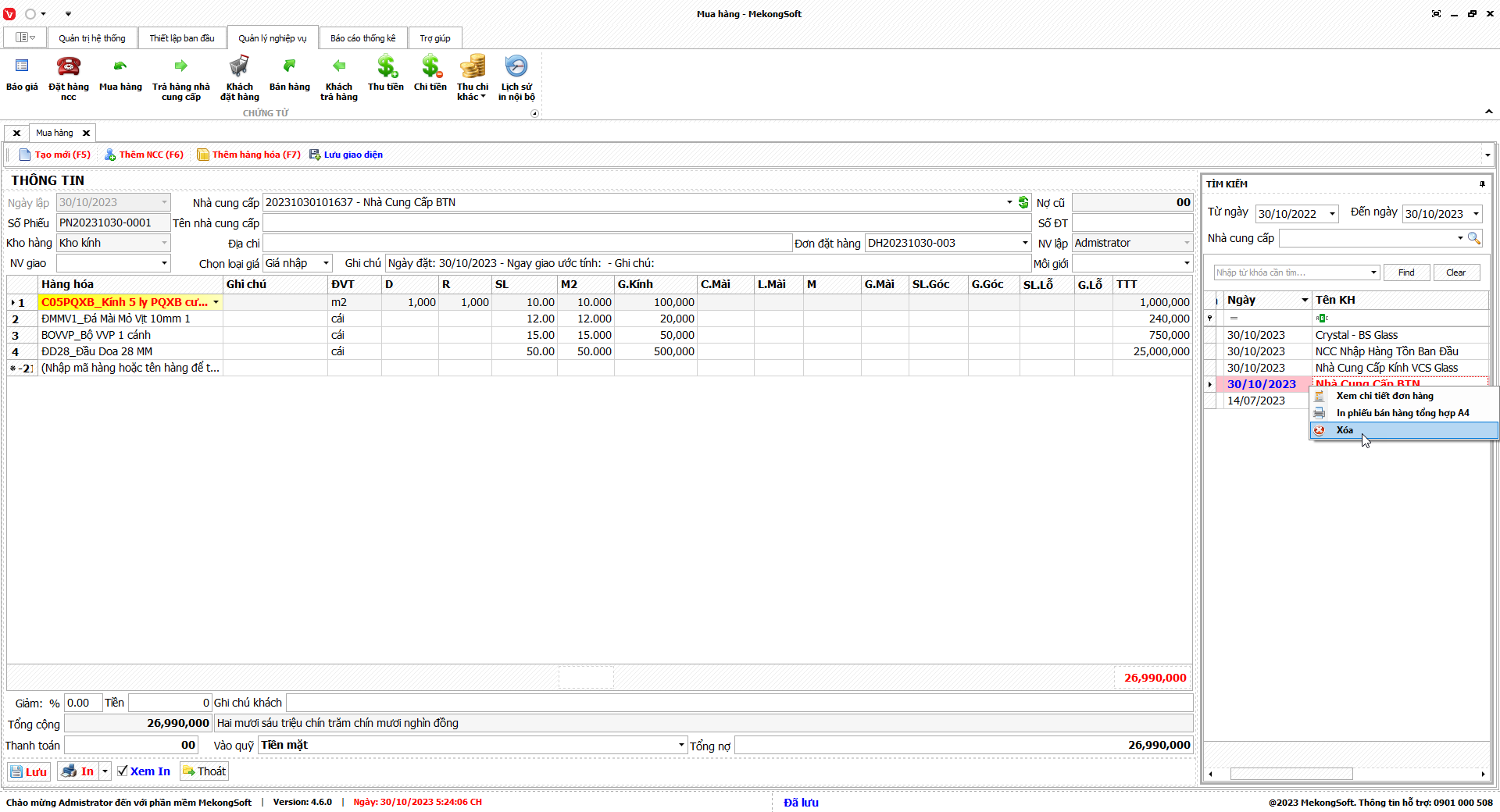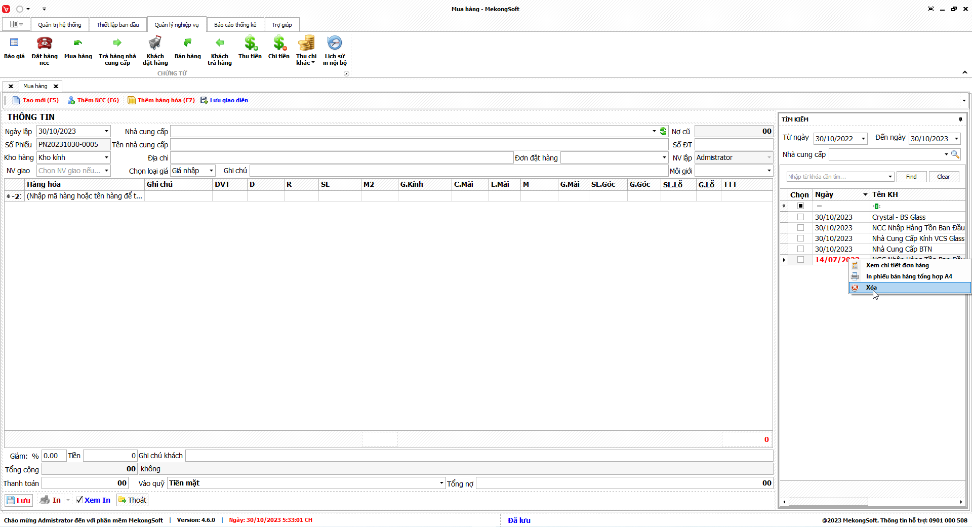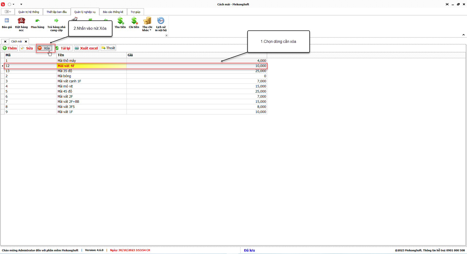 Để xóa người dùng trên phần mềm quản lý kinh doanh kính xây dựng, bạn có thể thực hiện theo các bước sau: