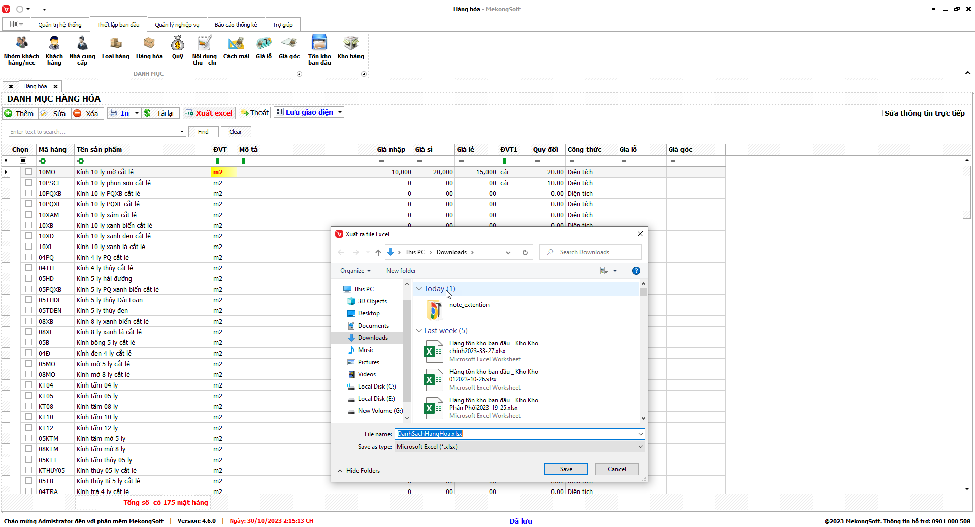Để xuất excel thống kê hàng hóa tồn dưới định mức trên phần mềm quản lý kinh doanh kính xây dựng, bạn có thể thực hiện theo các bước sau: