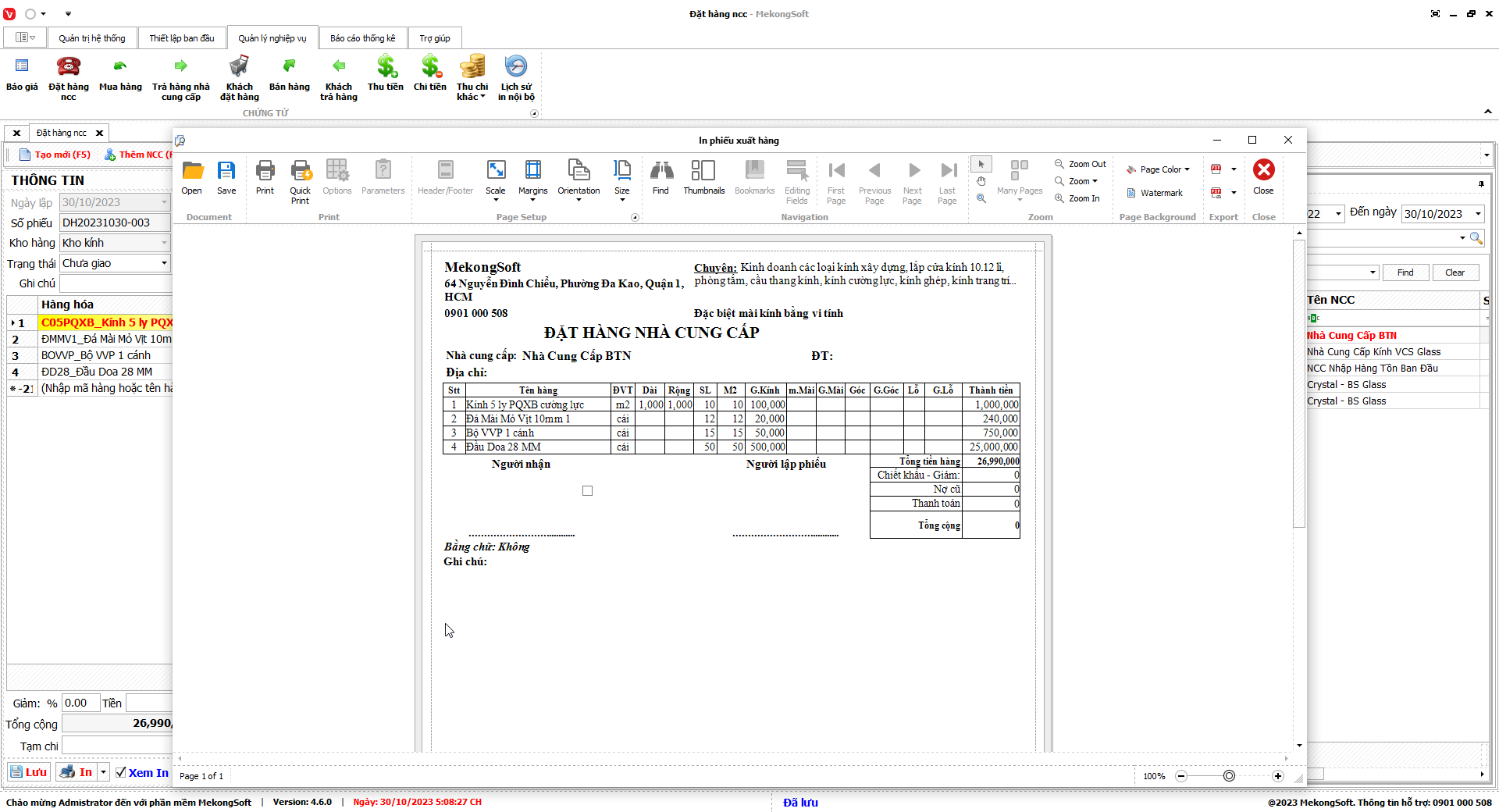Để in báo cáo tổng hợp kết quả kinh doanh trên phần mềm quản lý kinh doanh kính xây dựng, bạn có thể thực hiện theo các bước sau: