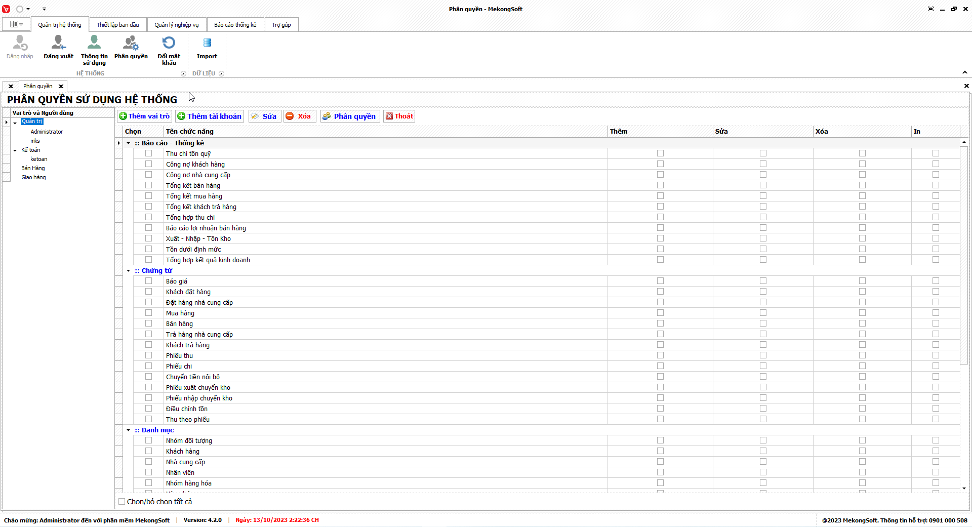 -      Chỉ xóa các nhóm quyền không còn sử dụng.