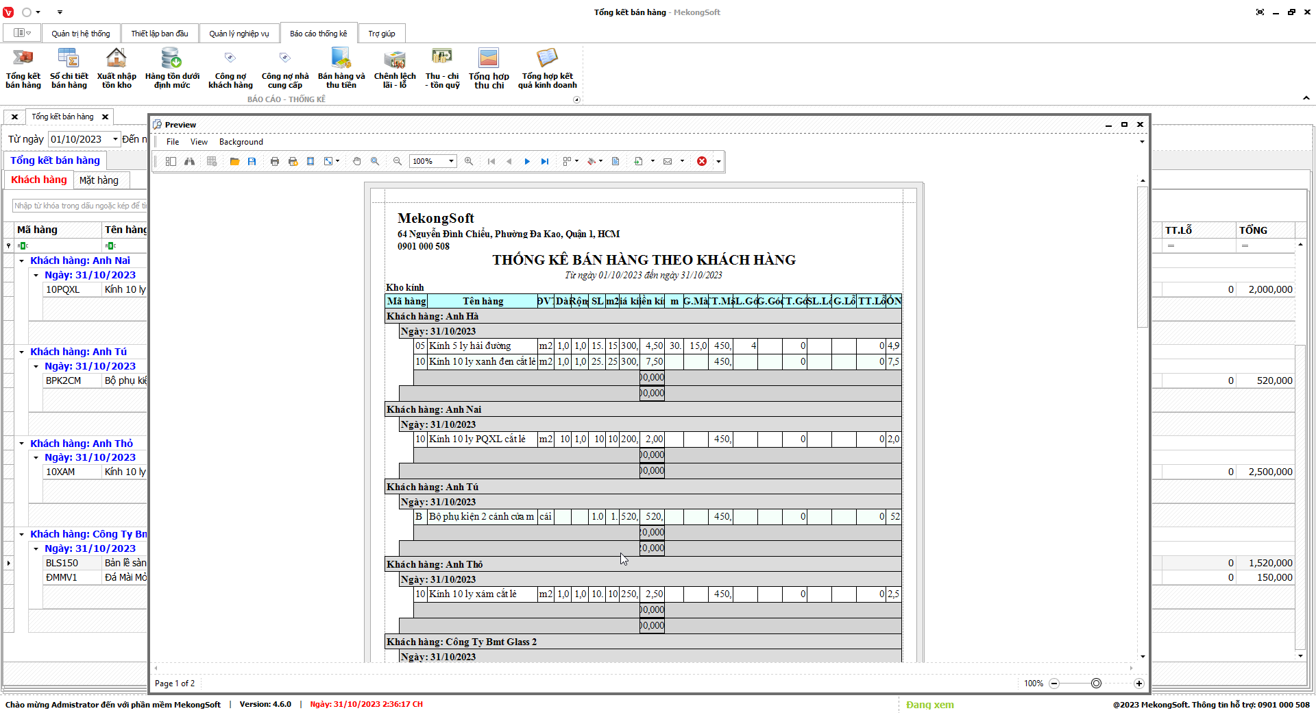 Chức năng tổng hợp kết quả kinh doanh là một tính năng quan trọng của phần mềm quản lý kinh doanh kính xây dựng, giúp doanh nghiệp theo dõi và đánh giá tình hình kinh doanh một cách tổng quan.