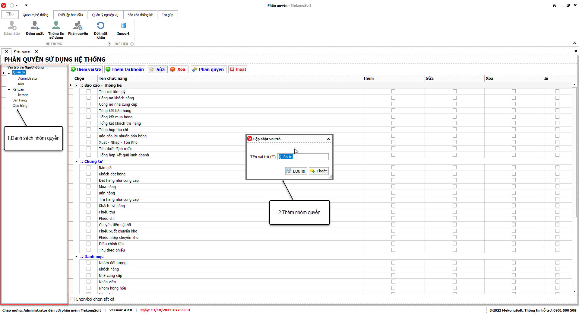 Tại màn hình Danh sách nhóm quyền
