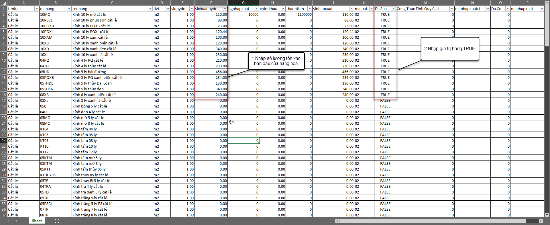 -      Loại hàng: Tên của nhóm hàng hóa