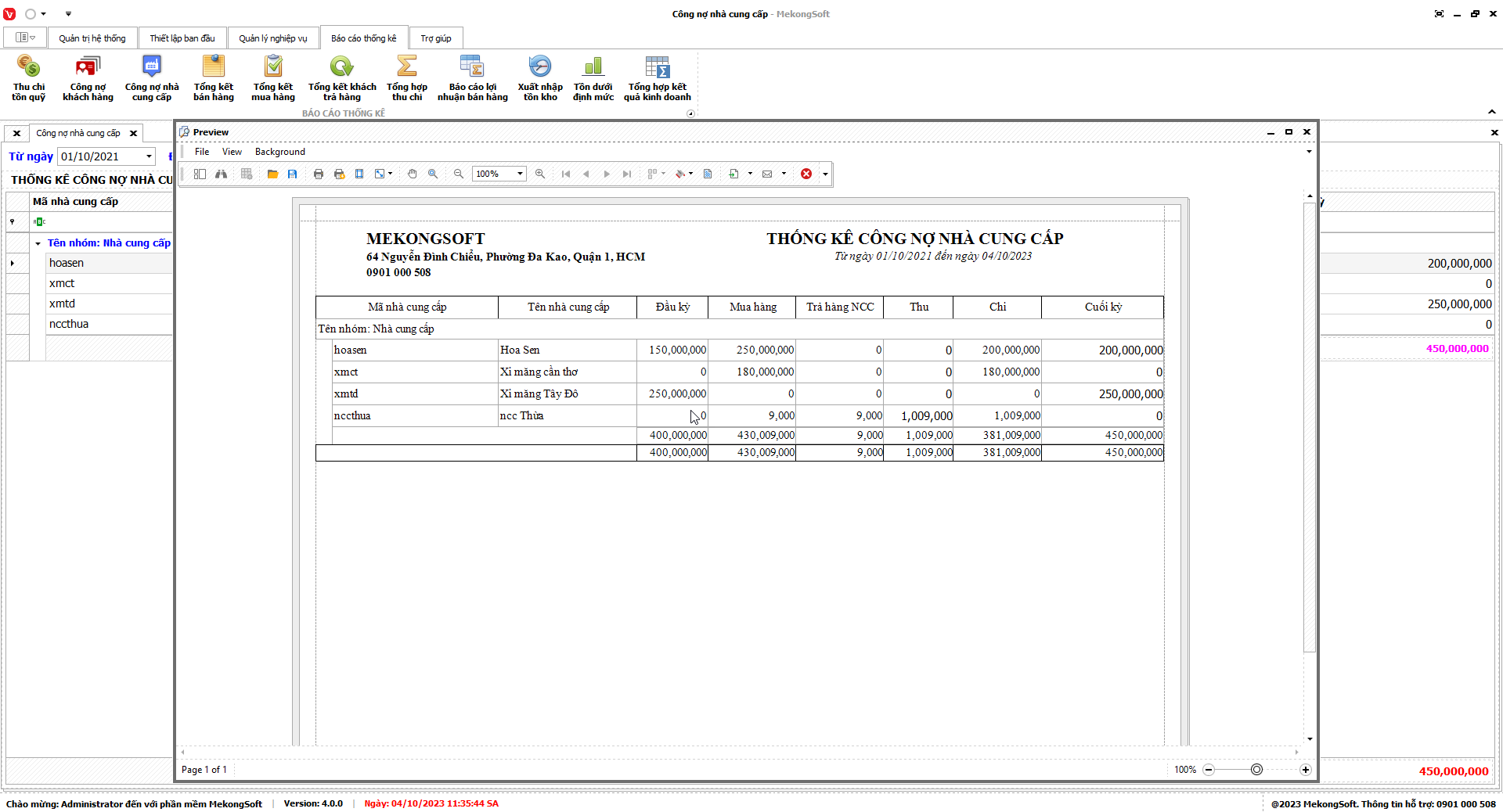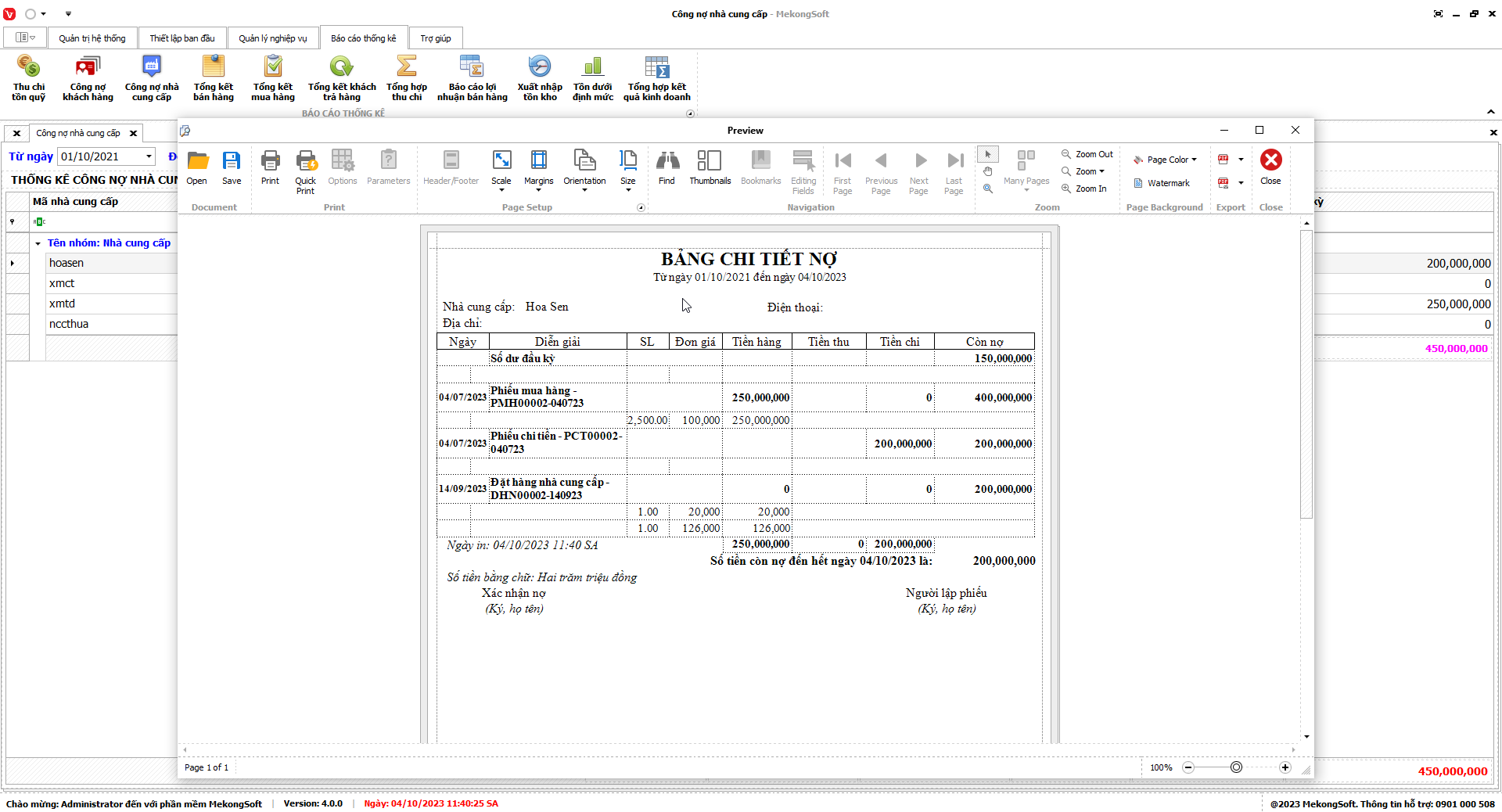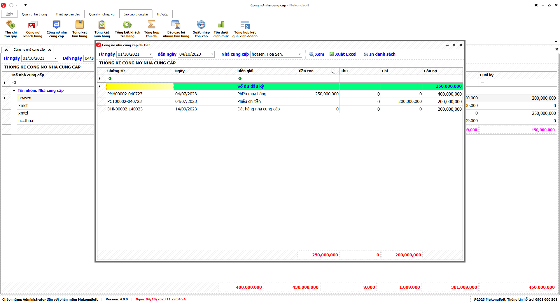7.3. Báo cáo công nợ nhà cung cấp