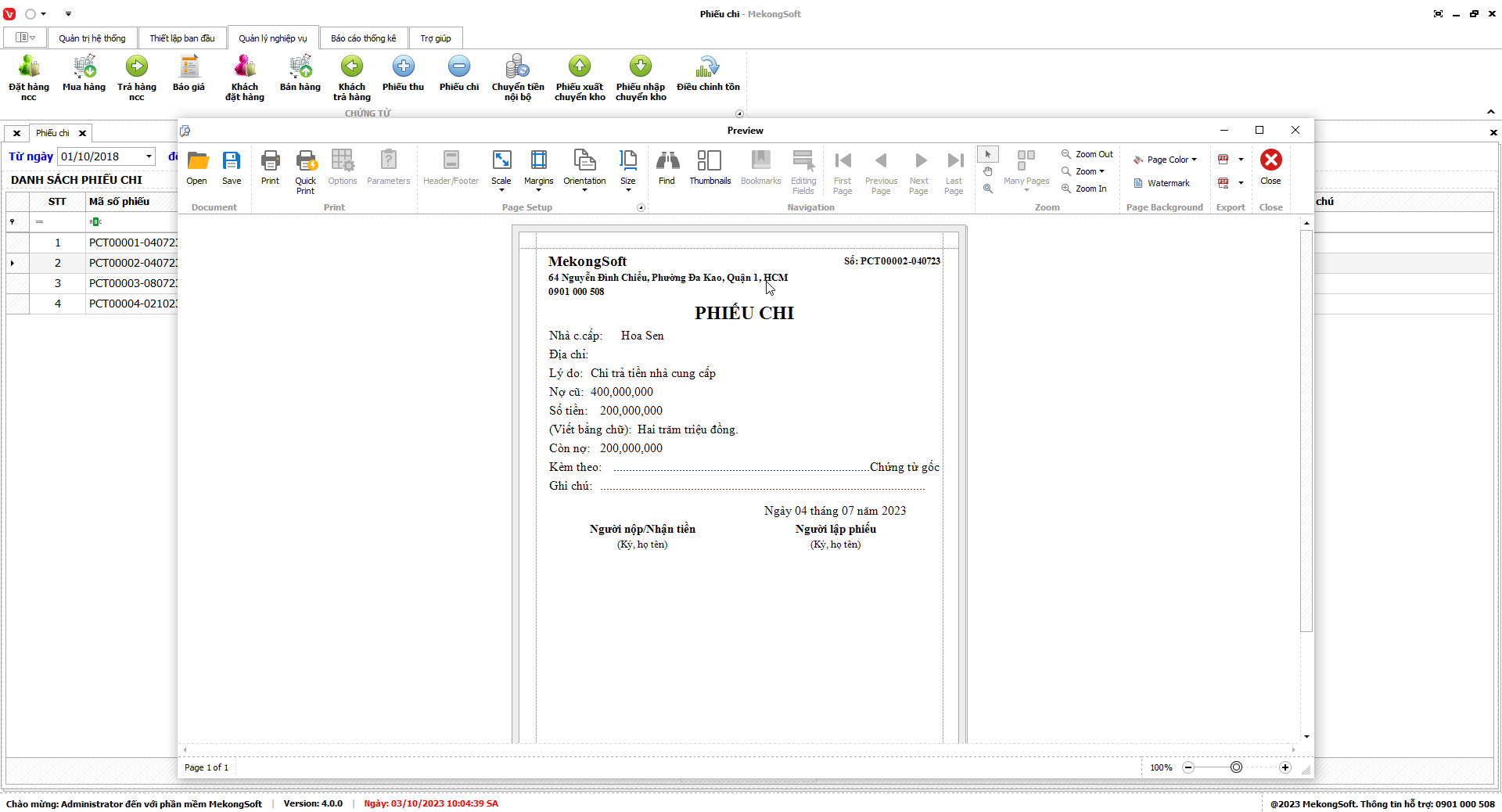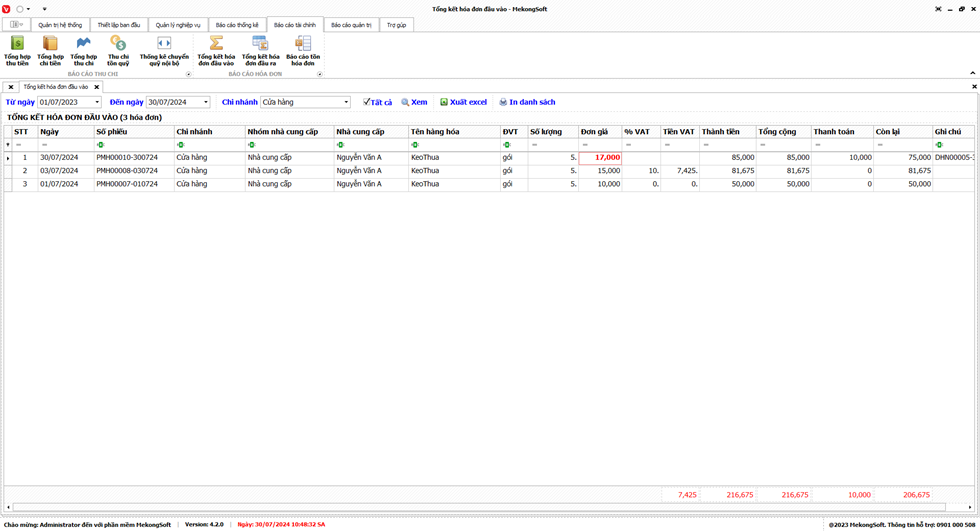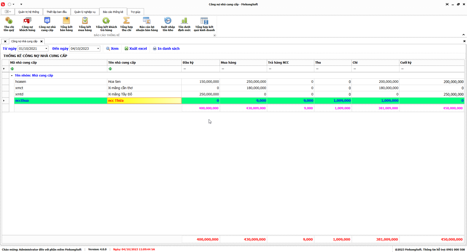 7.3. Báo cáo công nợ nhà cung cấp